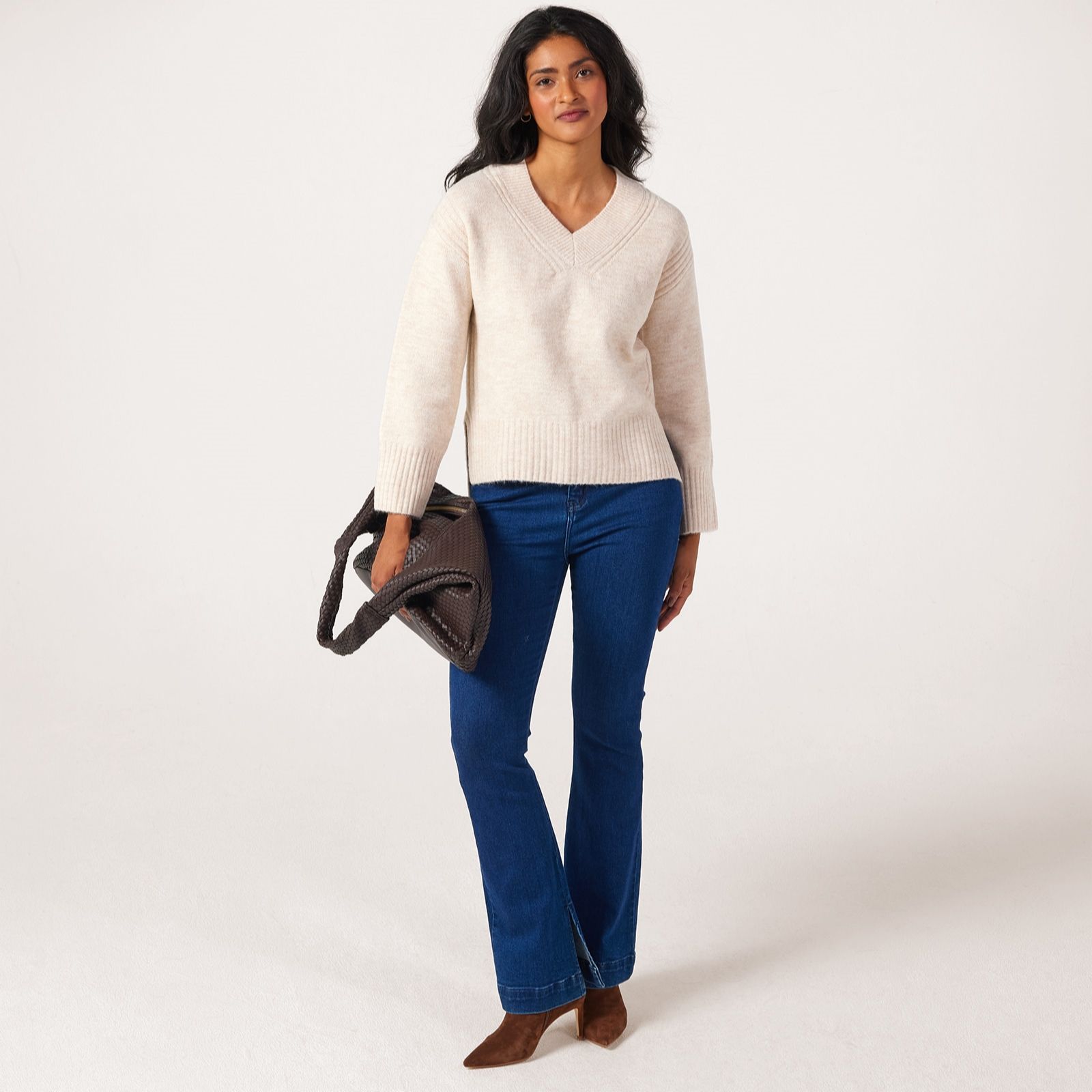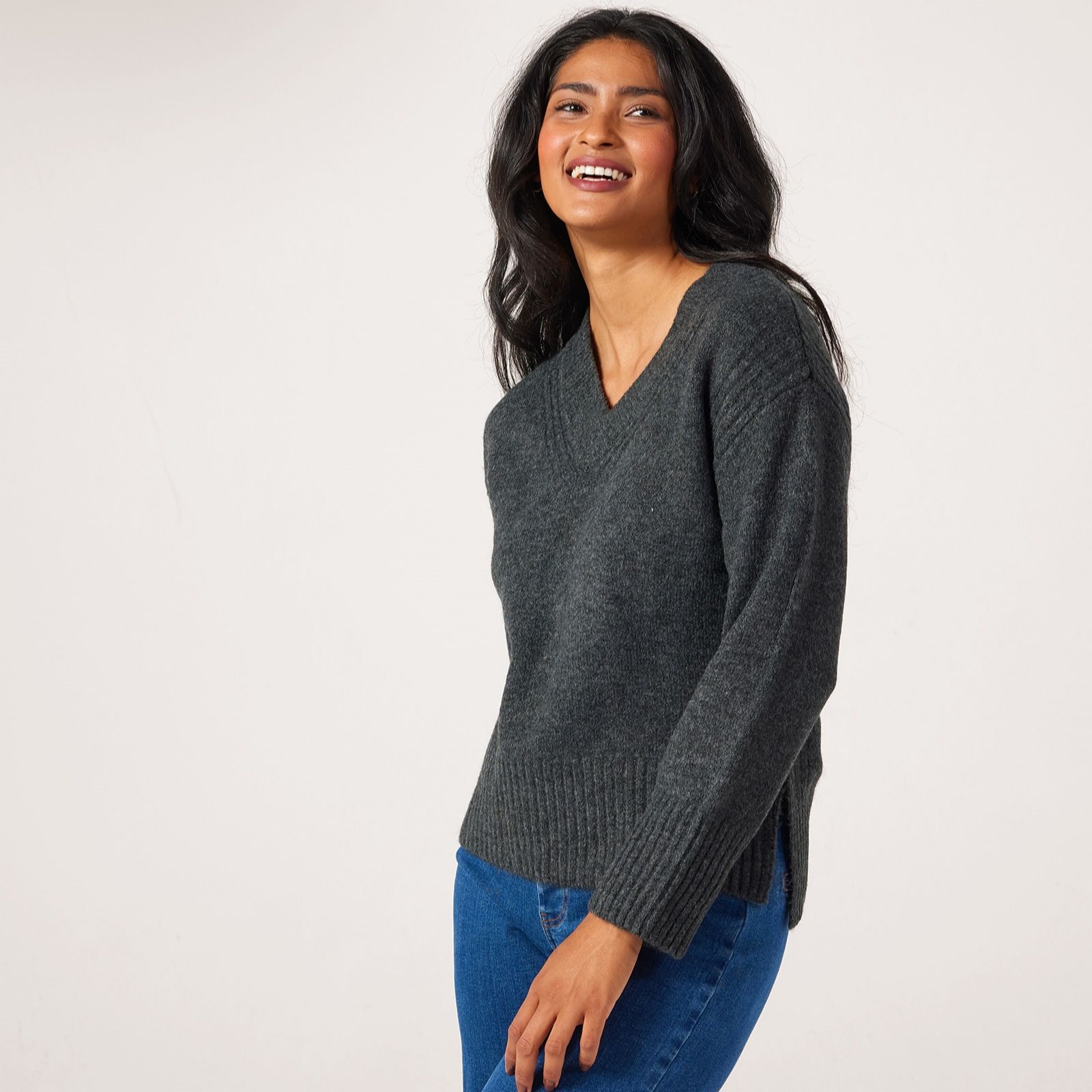 Slip into comfort with the Denim & Co. Essentials V neck jumper, designed to offer a timeless silhouette with a flattering neckline and long sleeves. Whether youre layering it for a smart office look or dressing it down for relaxed weekends, this versatile jumper will become a go-to favourite. Try pairing it with tailored trousers or your favourite jeans for effortless style every day.