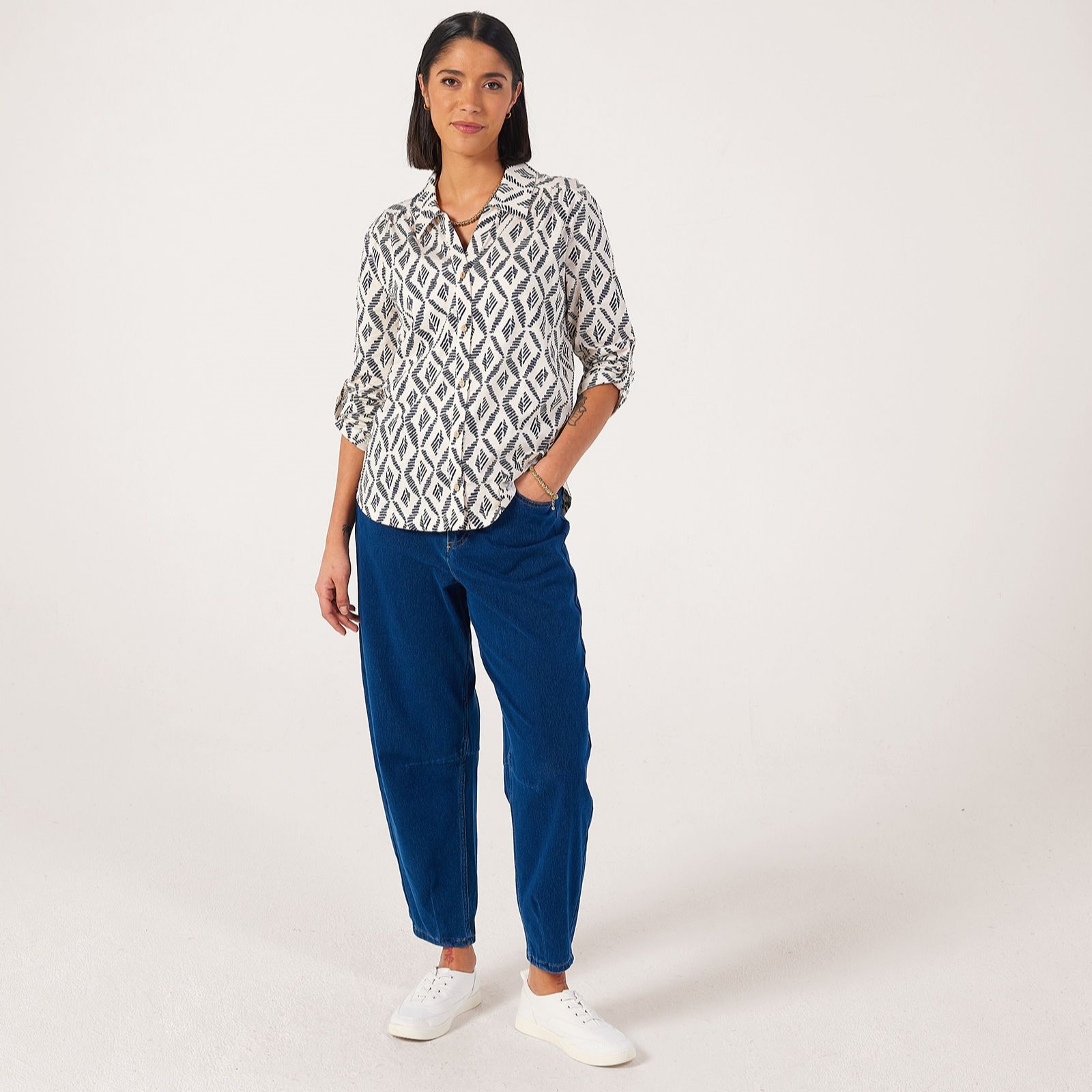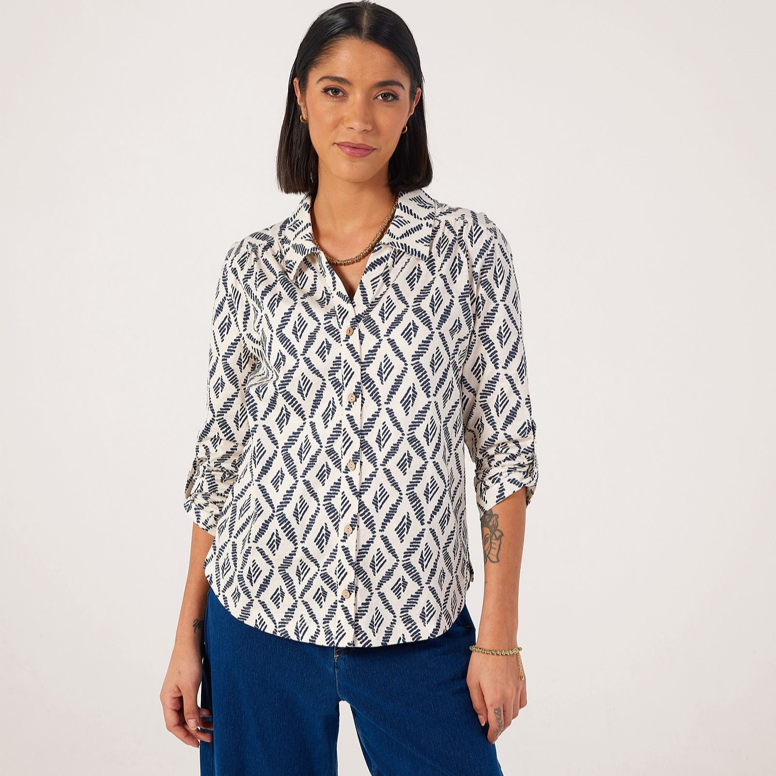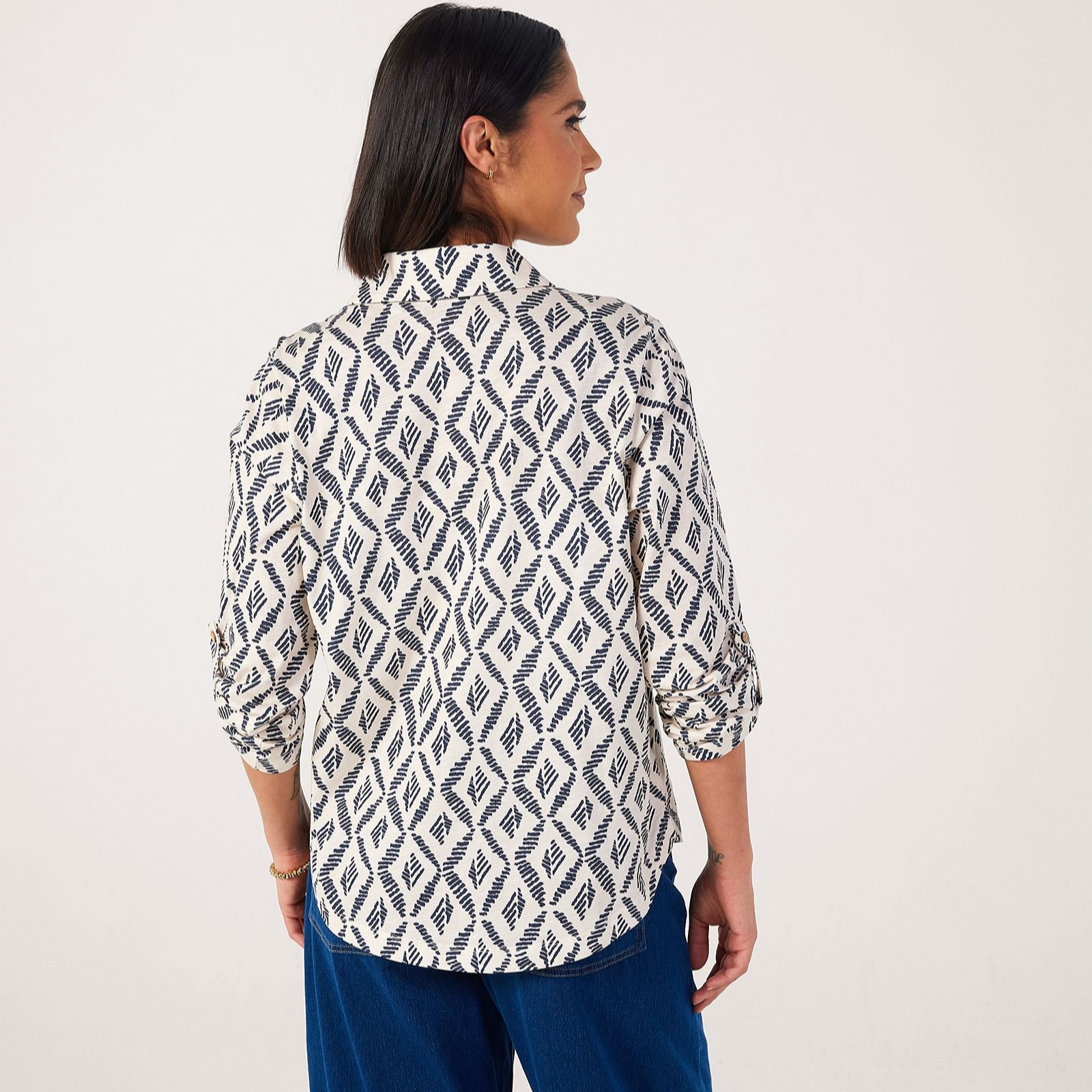 Effortlessly blending comfort and style, this jersey cotton slub printed shirt from Denim & Co. brings a laid-back charm to your wardrobe. Its semi-relaxed fit and soft texture make it perfect for everyday wear, whether you're heading out for lunch or enjoying a relaxed weekend at home. Pair it with tailored trousers or your favourite jeans for an easy, polished look.