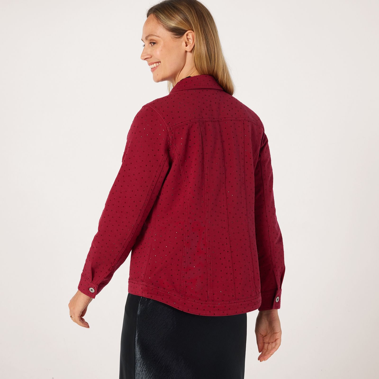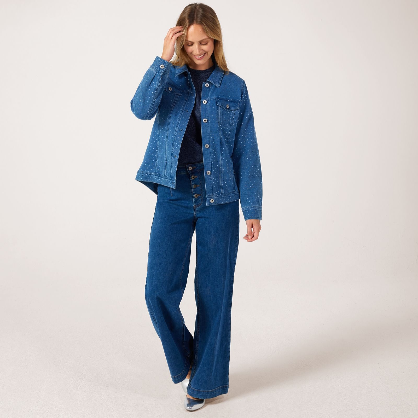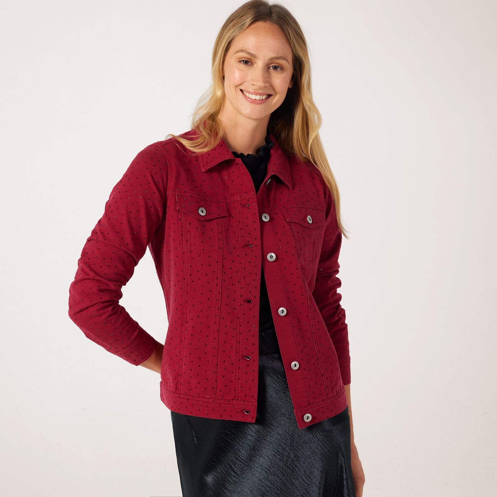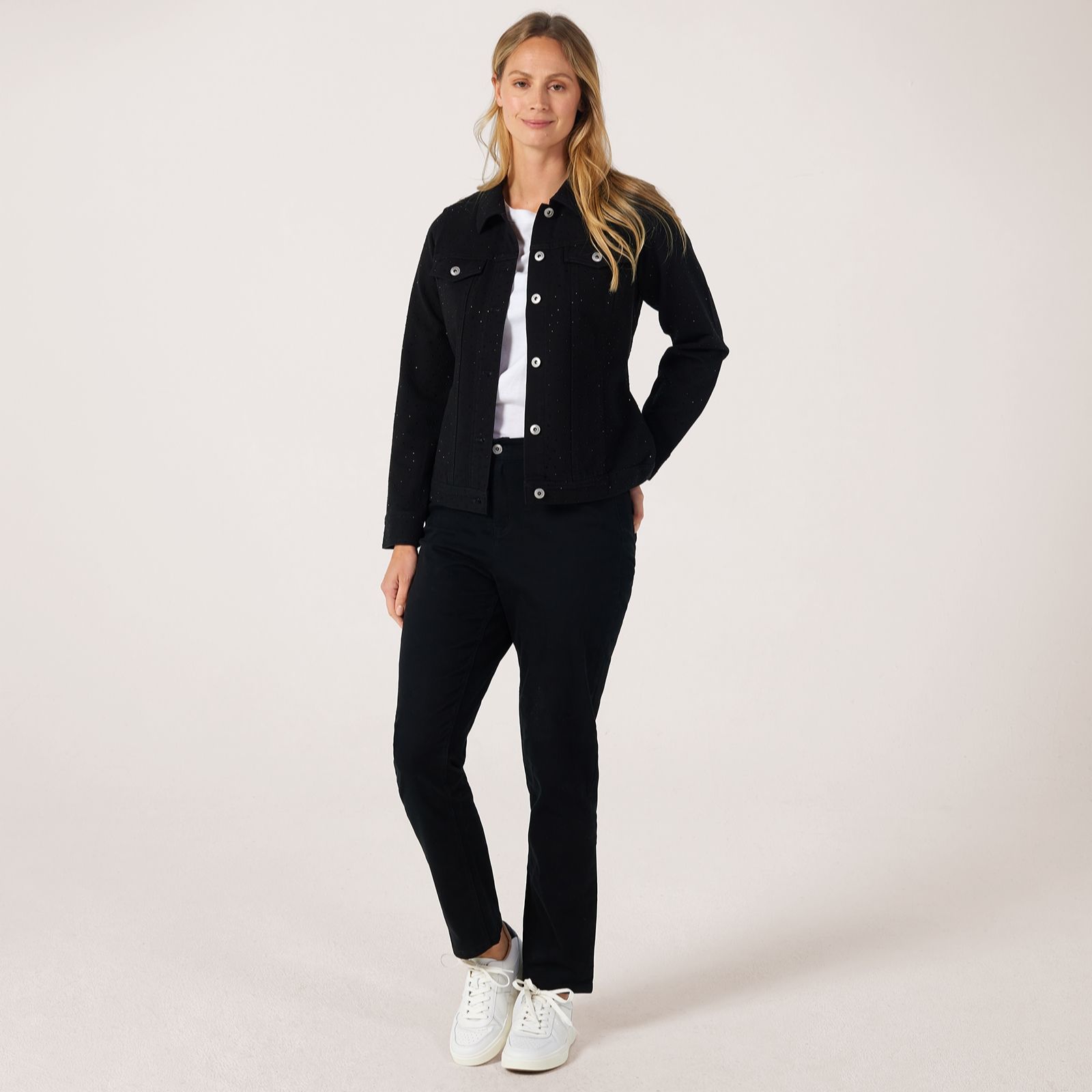 Shimmer through the seasons with the limited edition diamante denim jacket from Denim & Co., where sparkling embellishments add a glamorous twist to a classic silhouette. Perfect for evenings out, weekend parties or casual days when you want to shine, this beautiful jacket brings effortless style to any look. Try layering it over a simple tee and tailored trousers for instant day-to-night appeal.