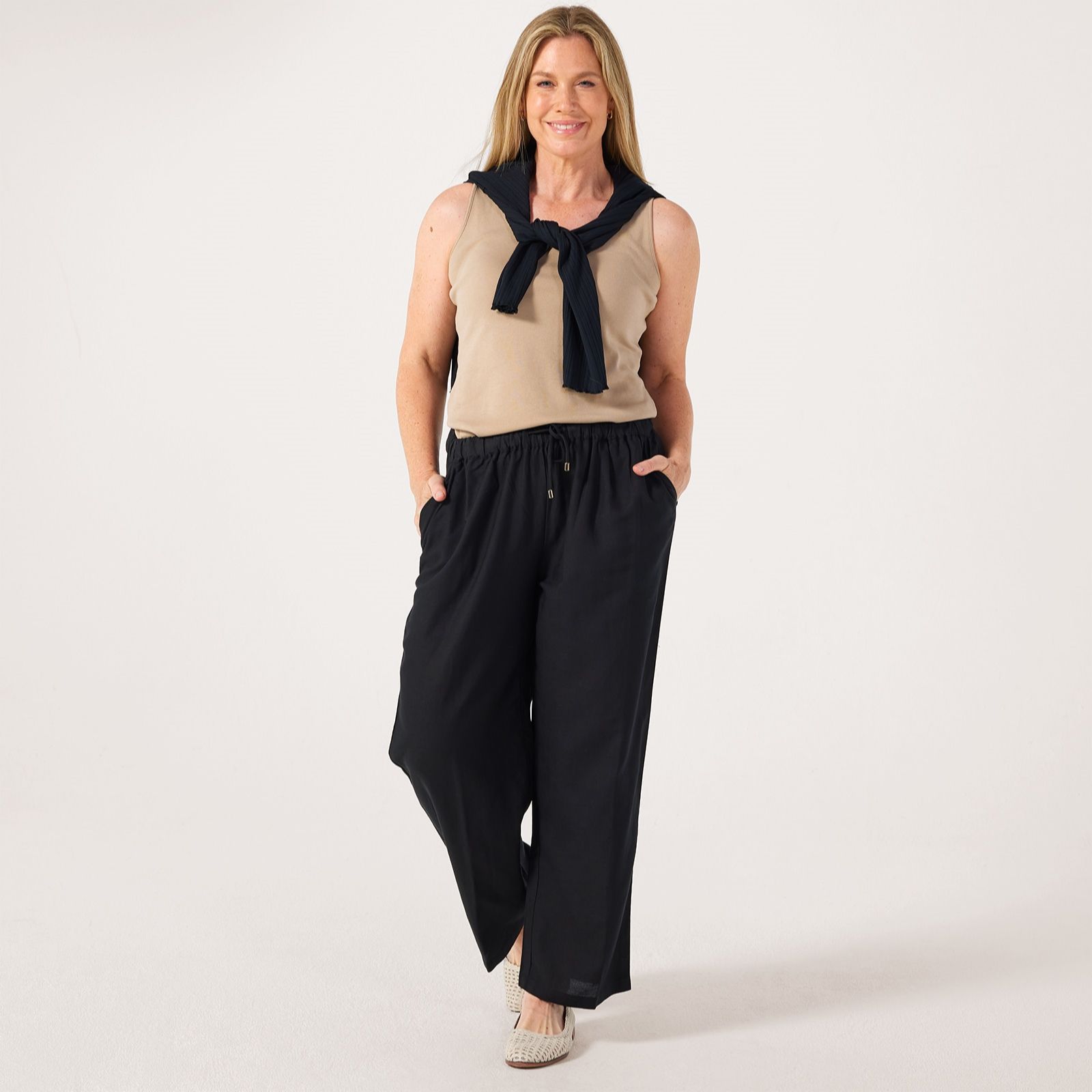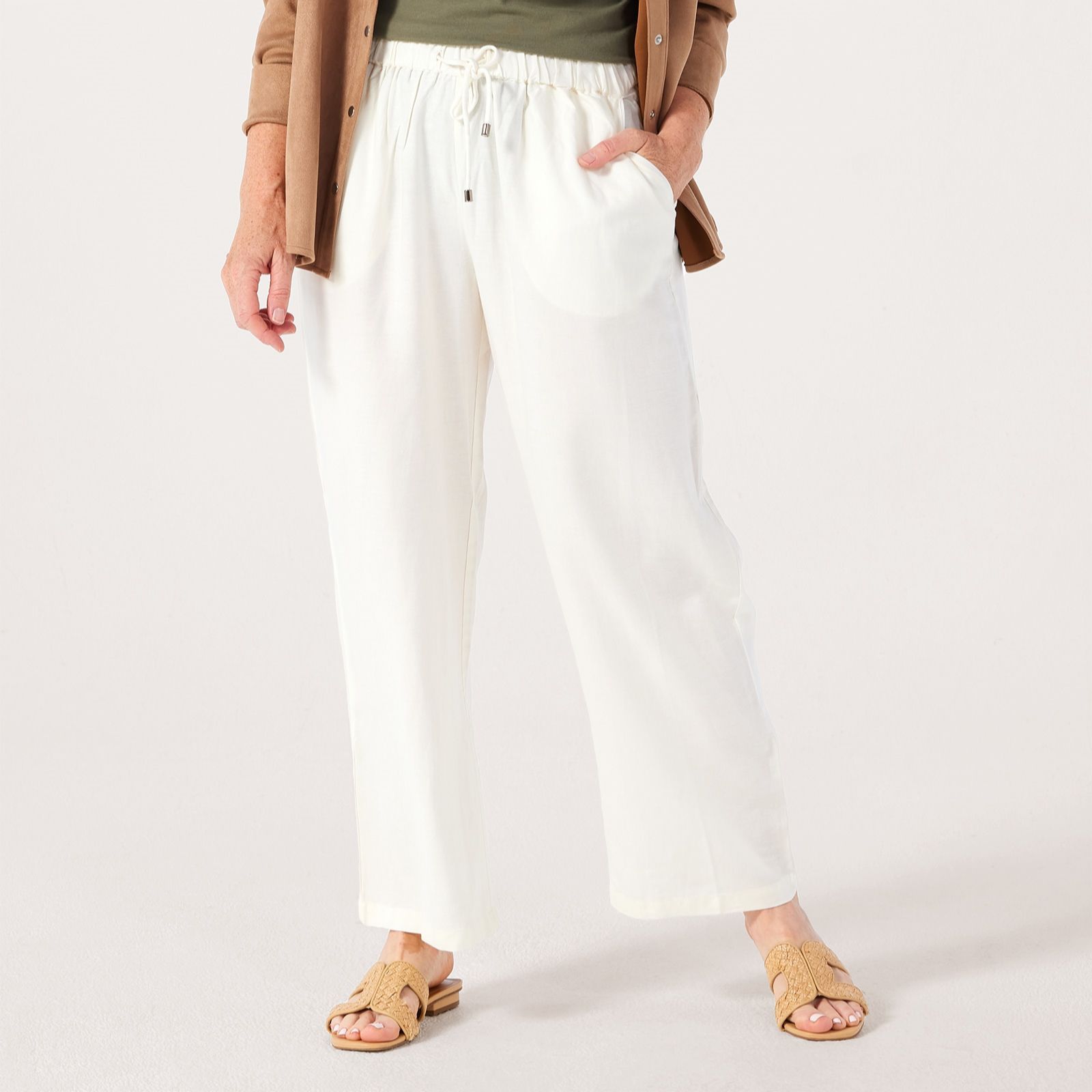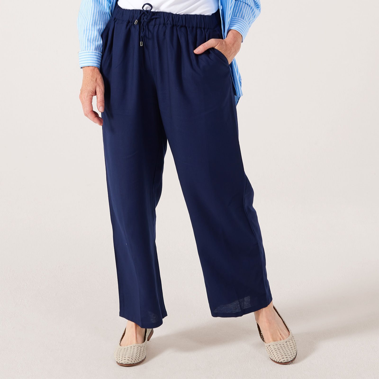 Discover the perfect blend of comfort and style with these Denim & Co linen blend wide leg trousers. In a petite fit, they are designed with stylish wide legs and a convenient drawstring waist, offering an effortlessly chic and comfortable look for any occasion. Pair them with a tucked-in blouse and heels or a T-shirt and trainers for a gorgeous final look.