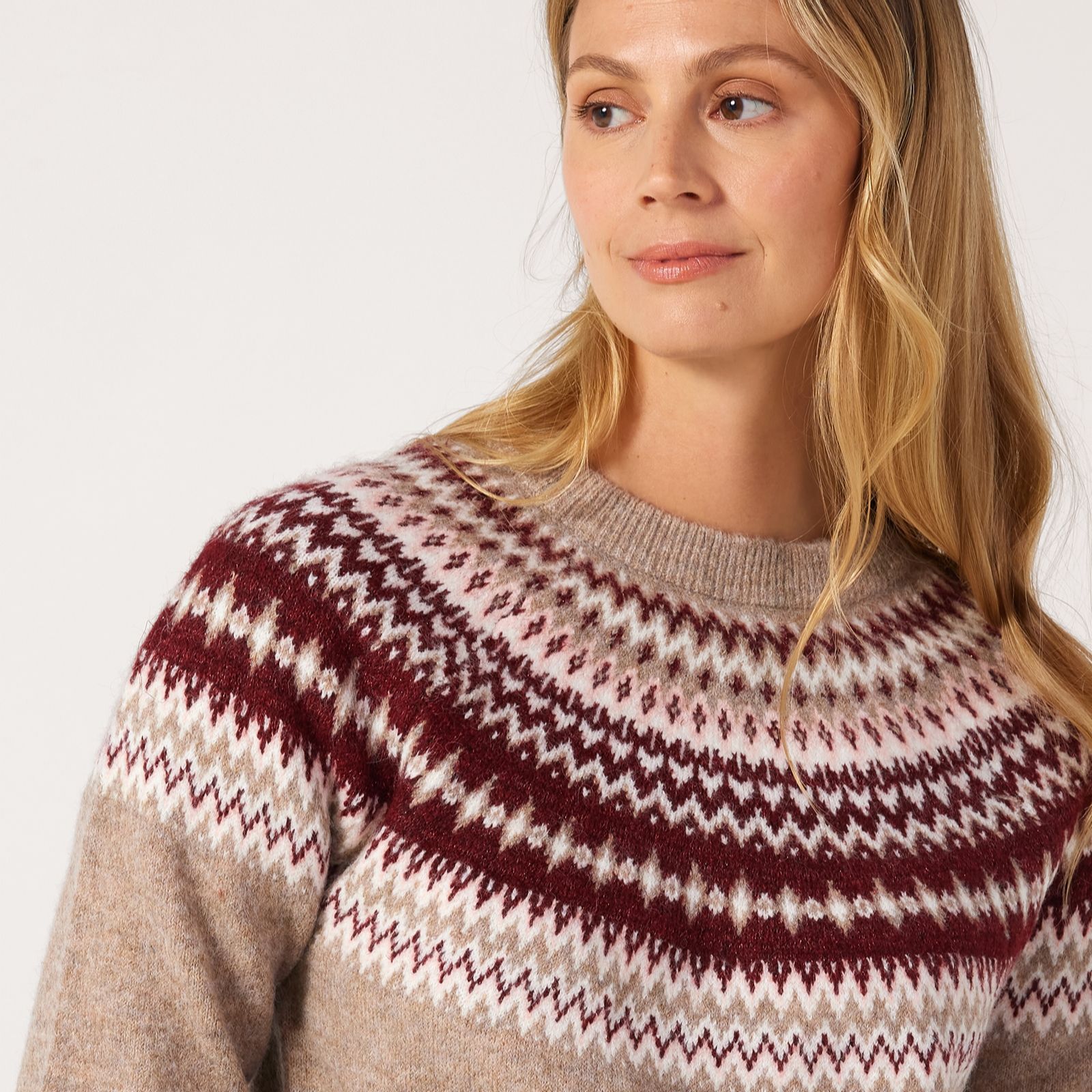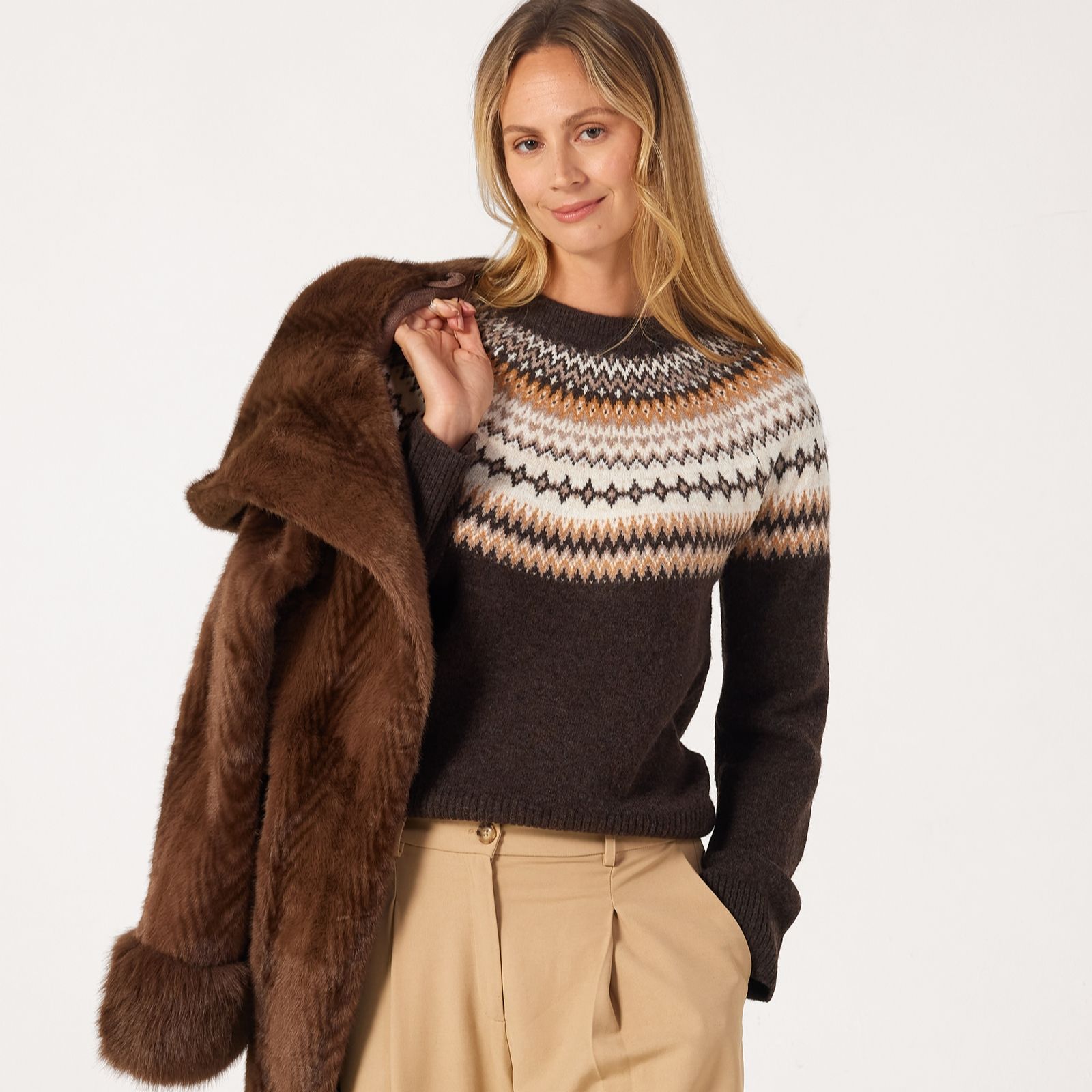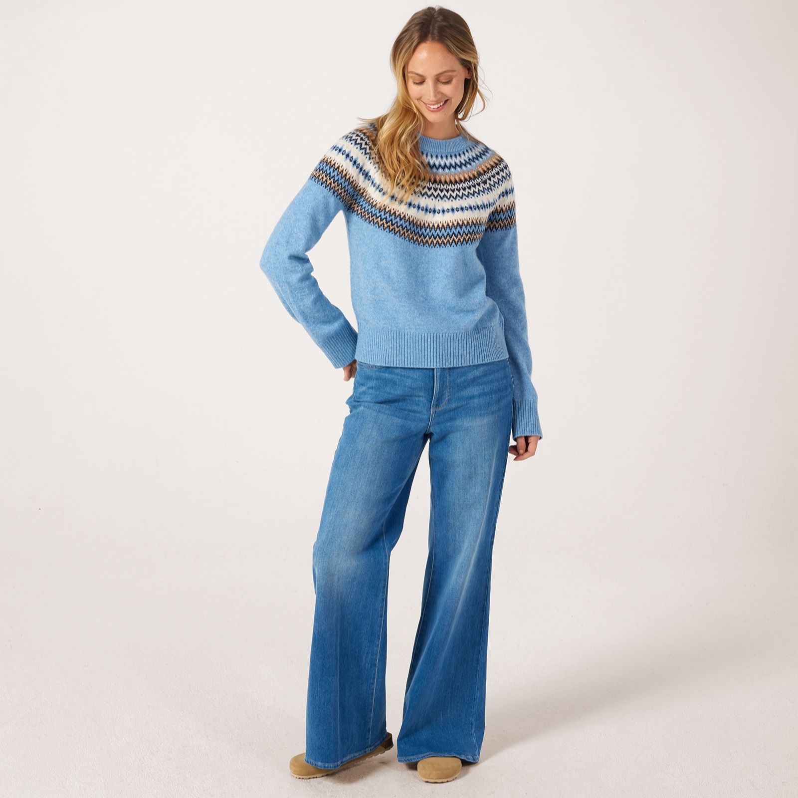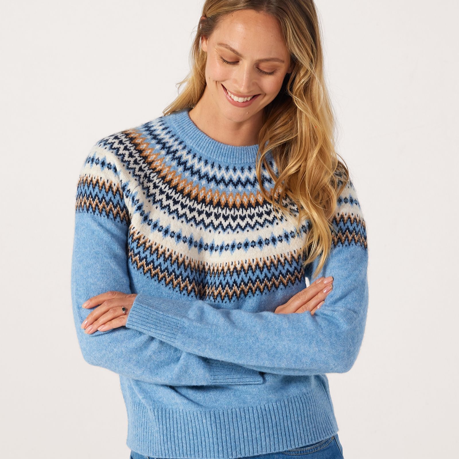 Embrace the cold season with this charming Lurex Fair Isle jumper from Denim & Co., where classic winter style meets a touch of sparkle. The timeless Fair Isle pattern across the chest adds a cosy, heritage feel, while the hint of Lurex metallic thread brings a subtle shimmer perfect for festive gatherings or casual weekends. Pair it with jeans and ankle boots for a relaxed daytime look or layer over a collared shirt for a chic twist.