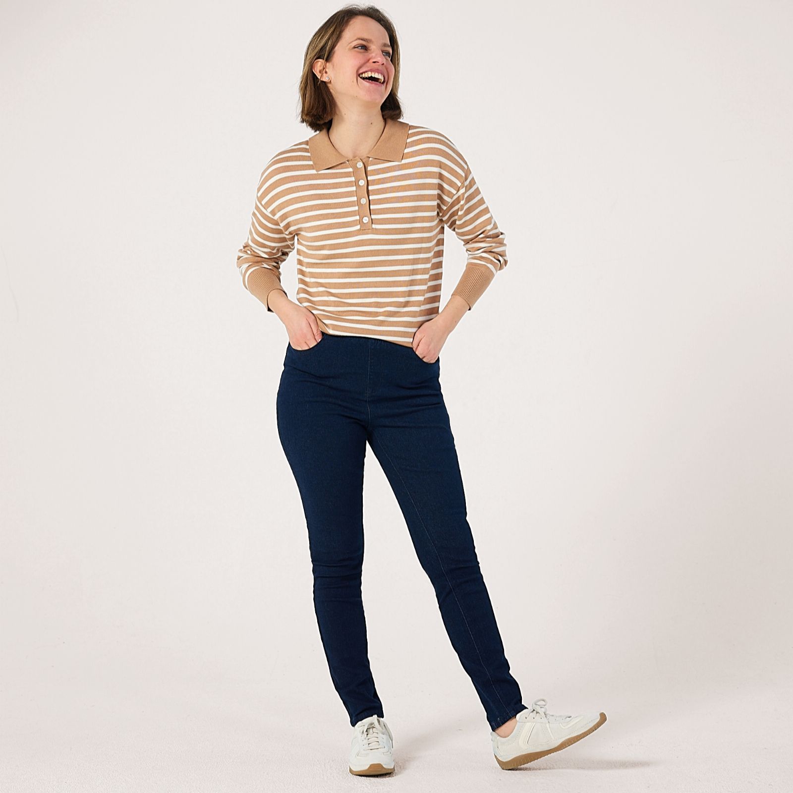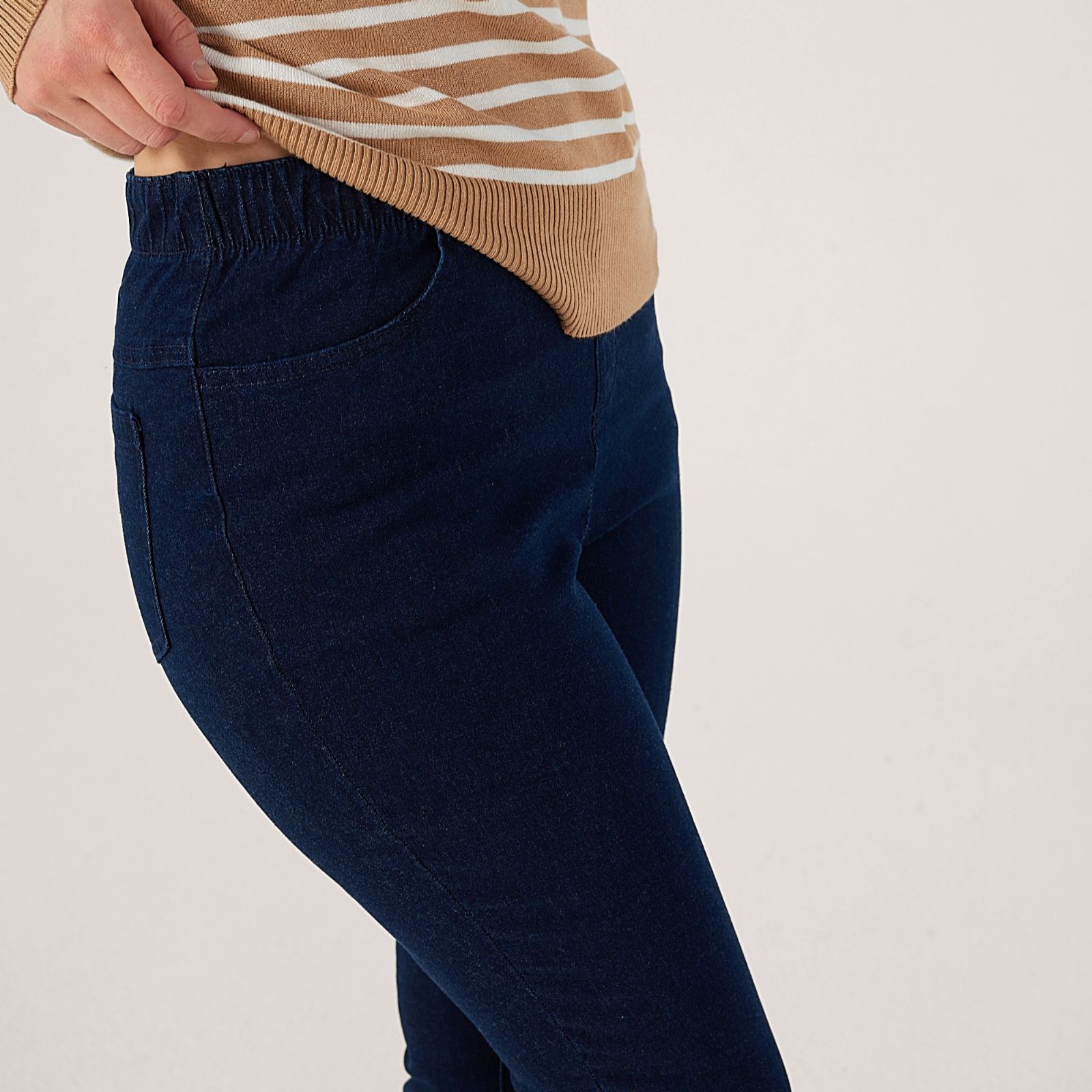Step into comfort and style with these petite pull-on denim jeggings from Denim & Co., crafted to flatter your silhouette with a streamlined fit. Their classic look makes them a go-to for everything from relaxed brunches to casual evenings out. For a chic everyday outfit, pair these versatile jeggings with a crisp white shirt and your favourite trainers.