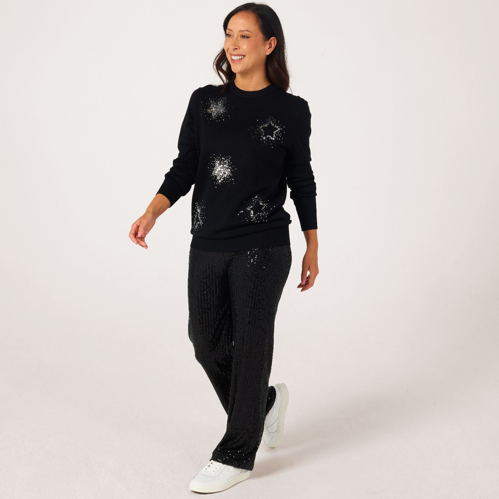 Bring a touch of sparkle to your everyday style with the sequin motif jumper from Denim & Co. The knitted design showcases a striking sequin pattern on the front, adding a playful twist to a classic silhouette. Perfect for relaxed weekends, festive gatherings or casual evenings out, it offers effortless style with a hint of glamour. Pair it with jeans and ankle boots for a chic, laid-back look.
