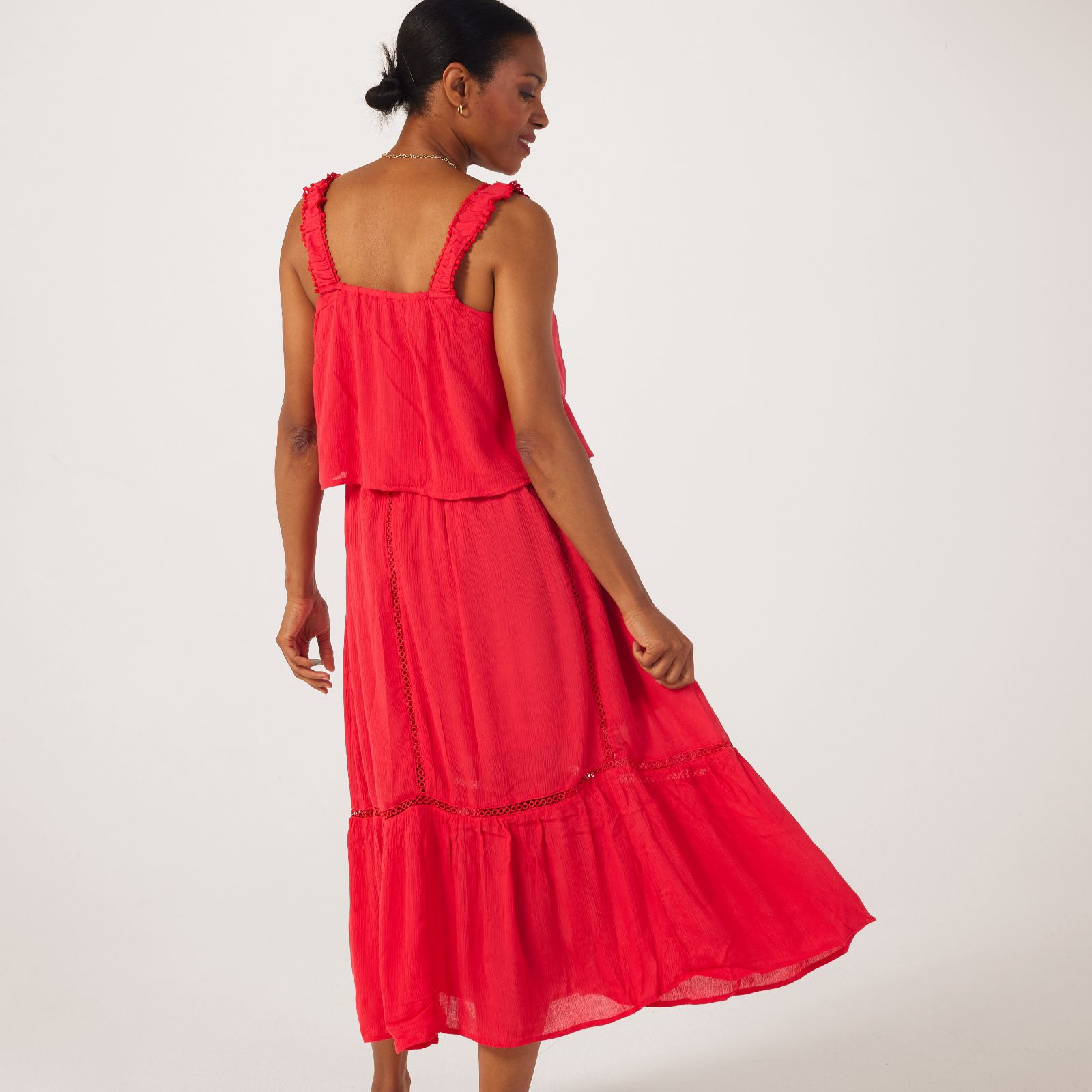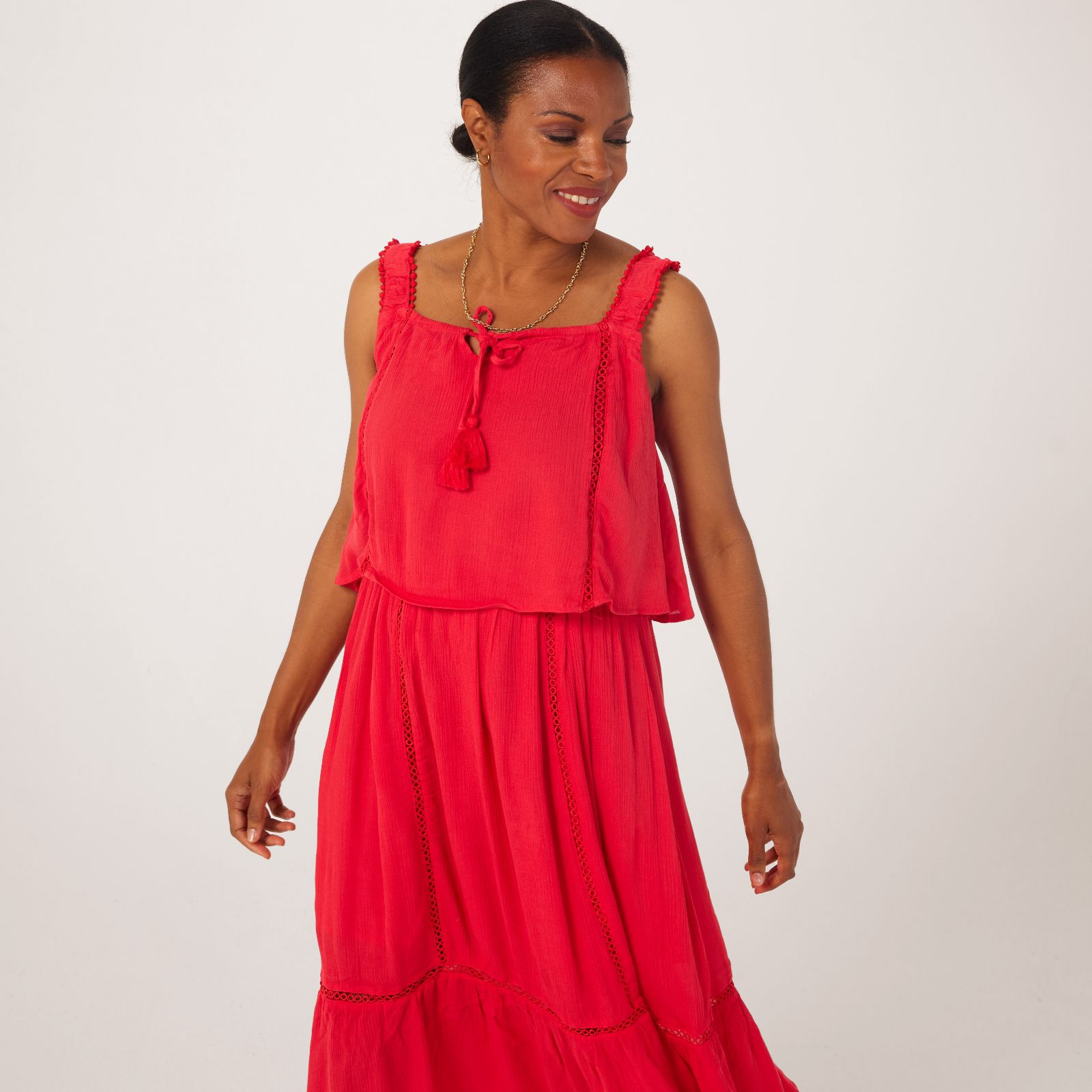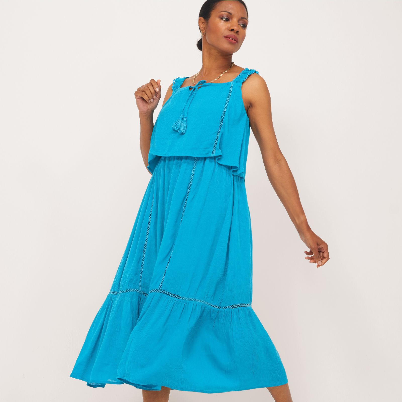 Make space in your wardrobe for this gorgeous summer dress from Denim & Co, featuring a charming toggle drawstring on the neck that adds a playful touch to your look. Perfect for picnics in the park or beachside strolls, this dress is your go-to for both casual and semi-formal occasions. Pair it with strappy sandals and a sun hat for an ensemble that speaks of sunny days.