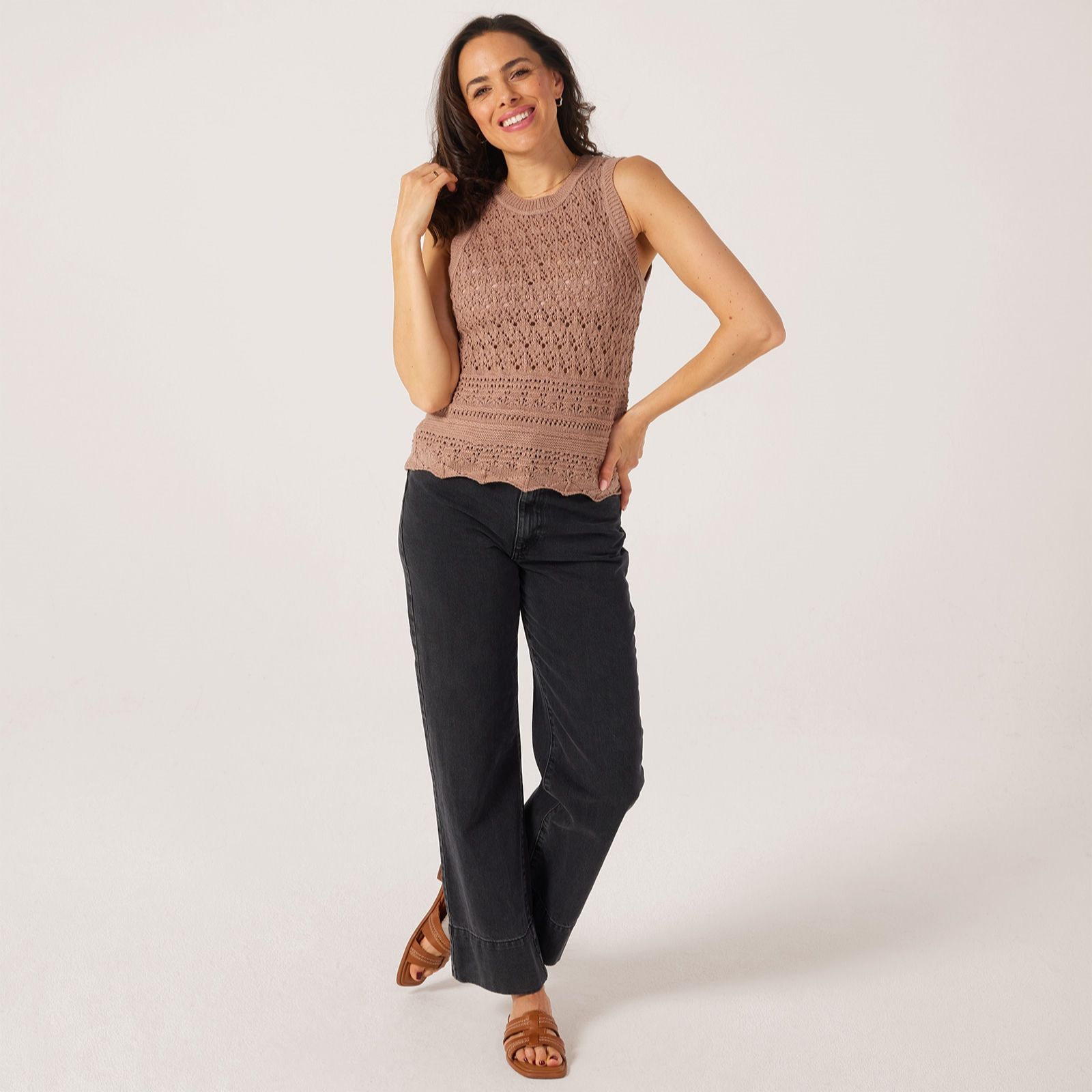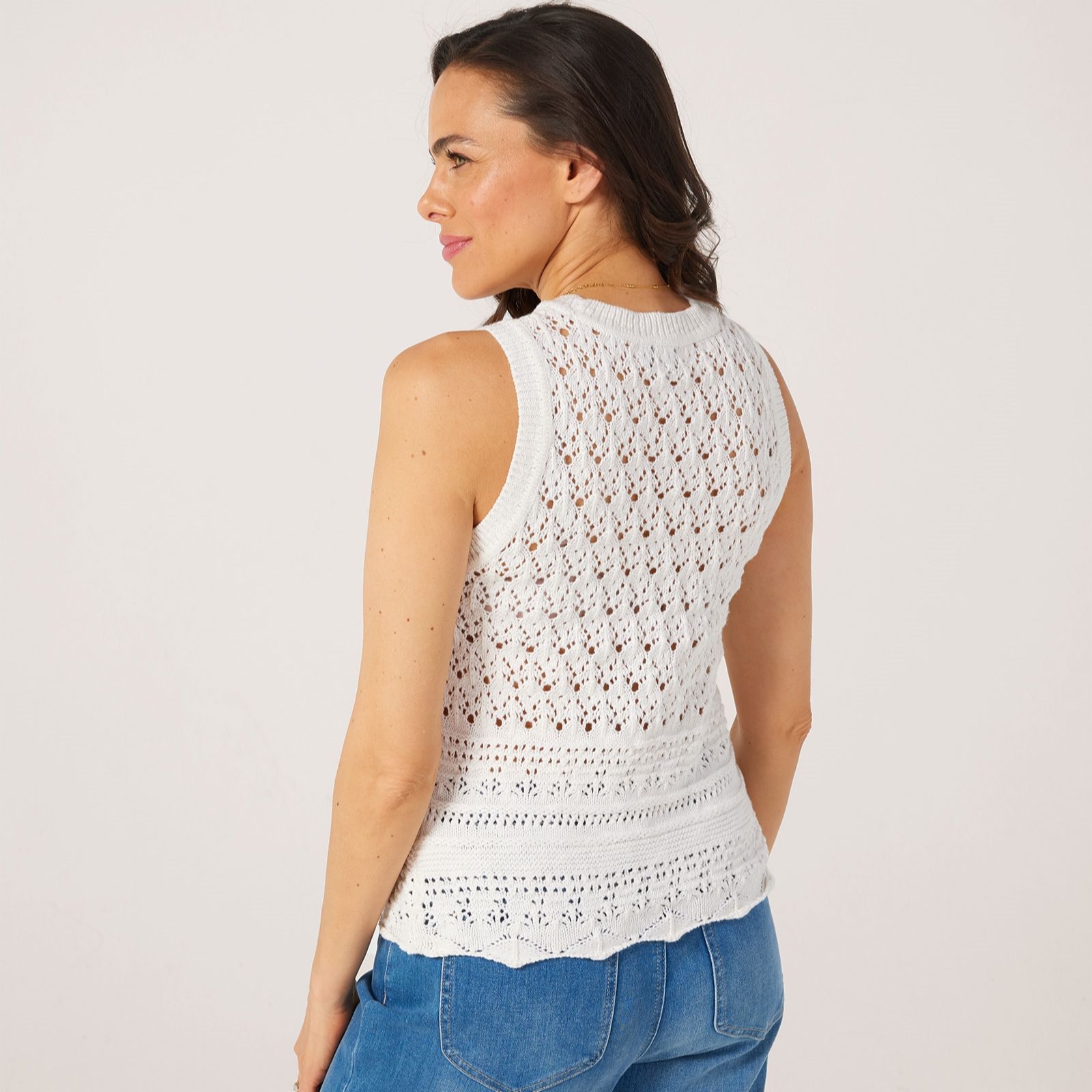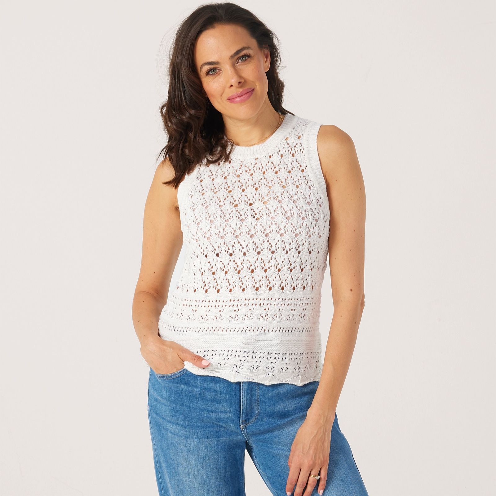 Discover effortless layering with this stylish textured knitted vest from Denim & Co. Crafted with a classic sleeveless design, it offers a timeless appeal that pairs effortlessly with both casual and smart outfits. Perfect for layering, this vest adds a touch of sophistication to your ensemble, whether you're heading to the office or enjoying a weekend outing. Try it over a crisp shirt or a lightweight blouse for a chic, polished look.