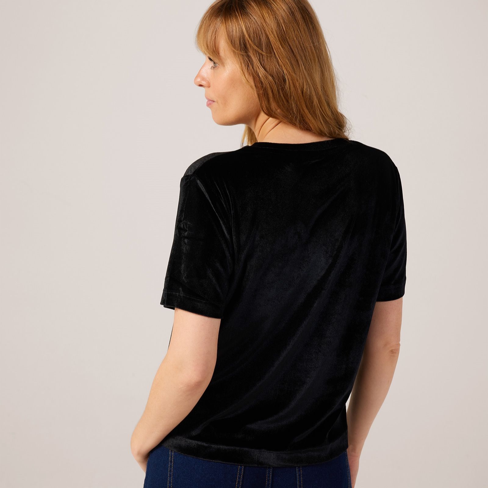 Indulge in luxurious comfort with the Denim & Co. velvet T-shirt, a sumptuous addition to your wardrobe. This plush piece boasts a soft, velvety texture that feels heavenly against your skin, making it a perfect choice for both casual outings and cosy nights in. The relaxed fit and classic crew neckline offer effortless style, while the touch of elastane ensures a flattering fit. Pair it with your favourite jeans for a chic, laid-back look or dress it up with a statement necklace for a touch of glamour.