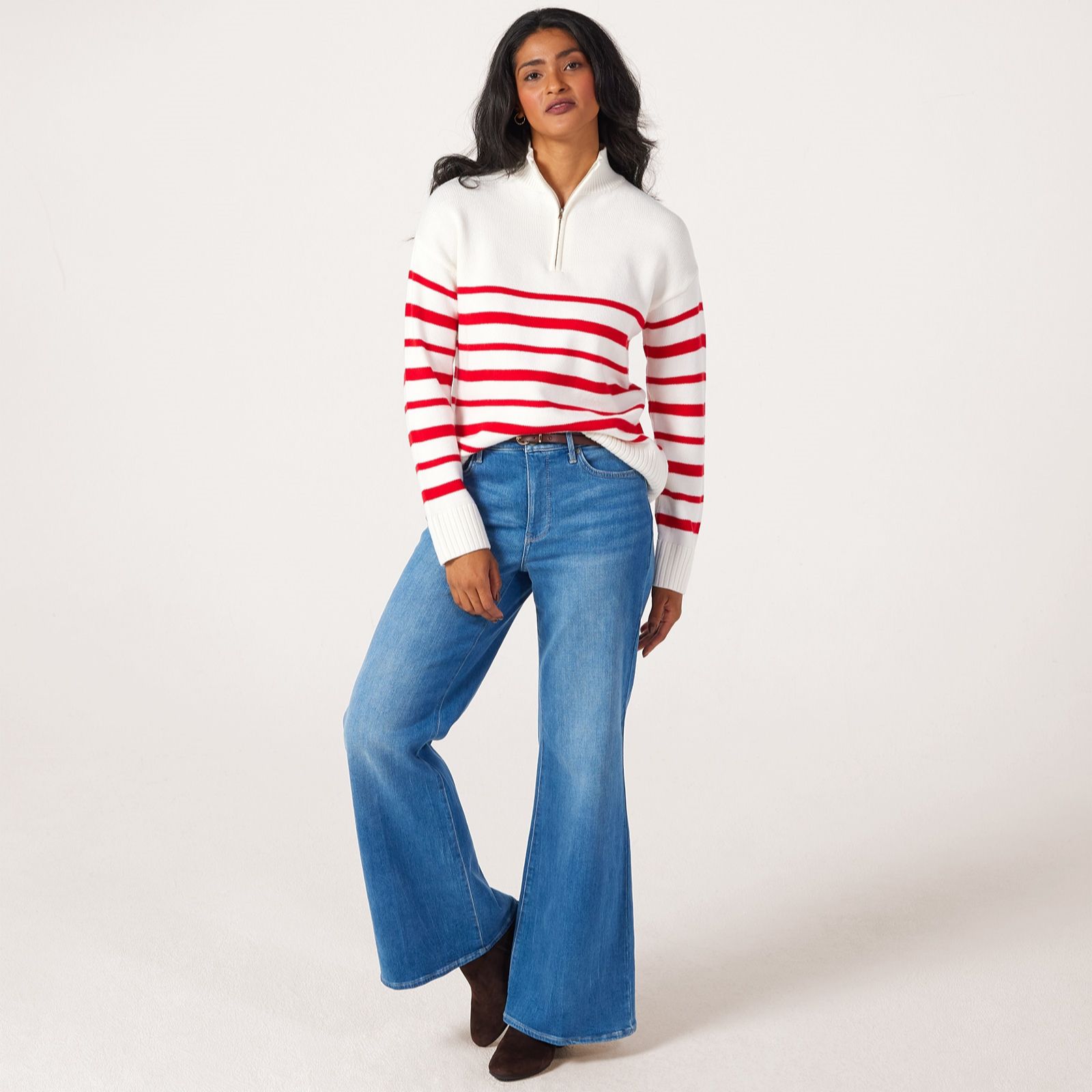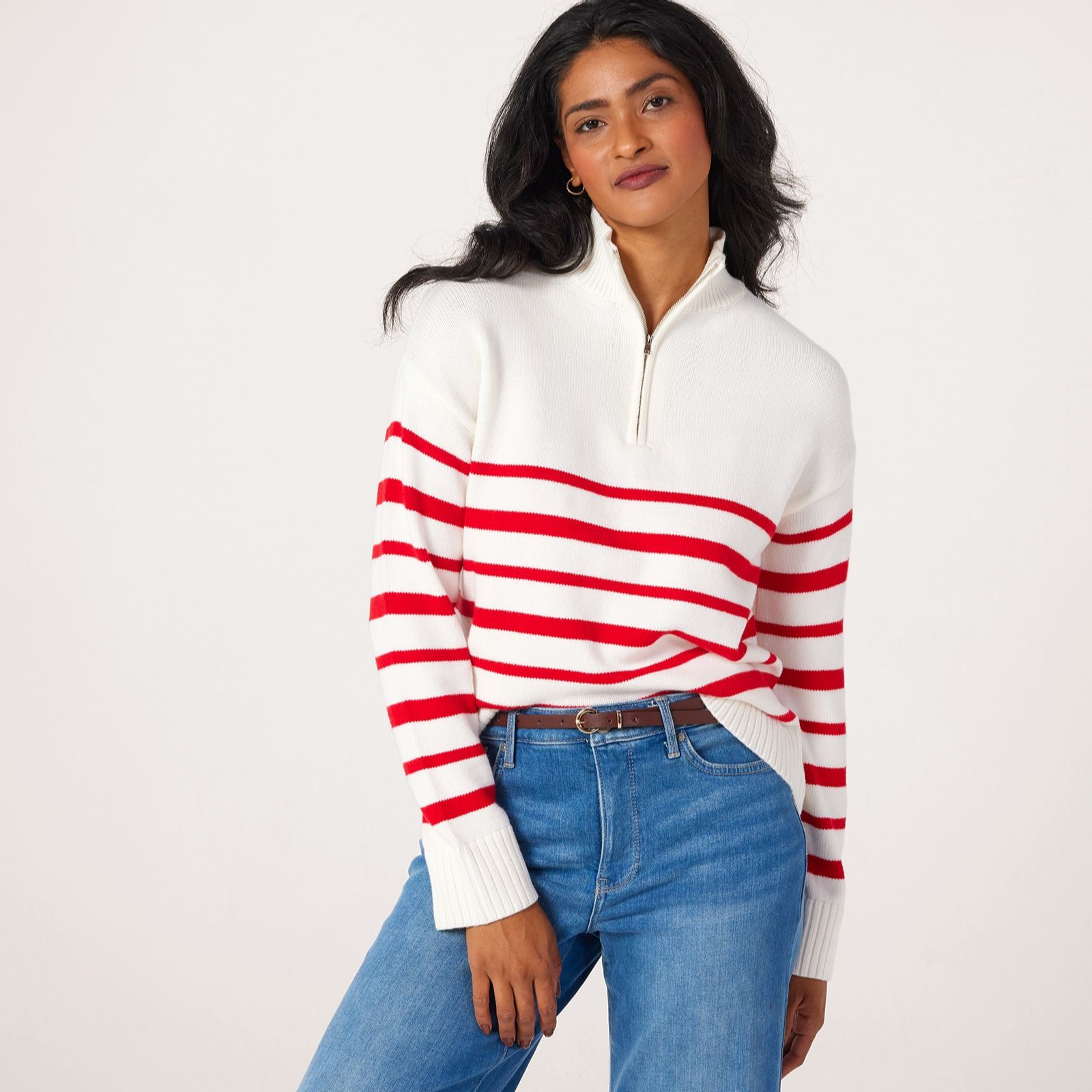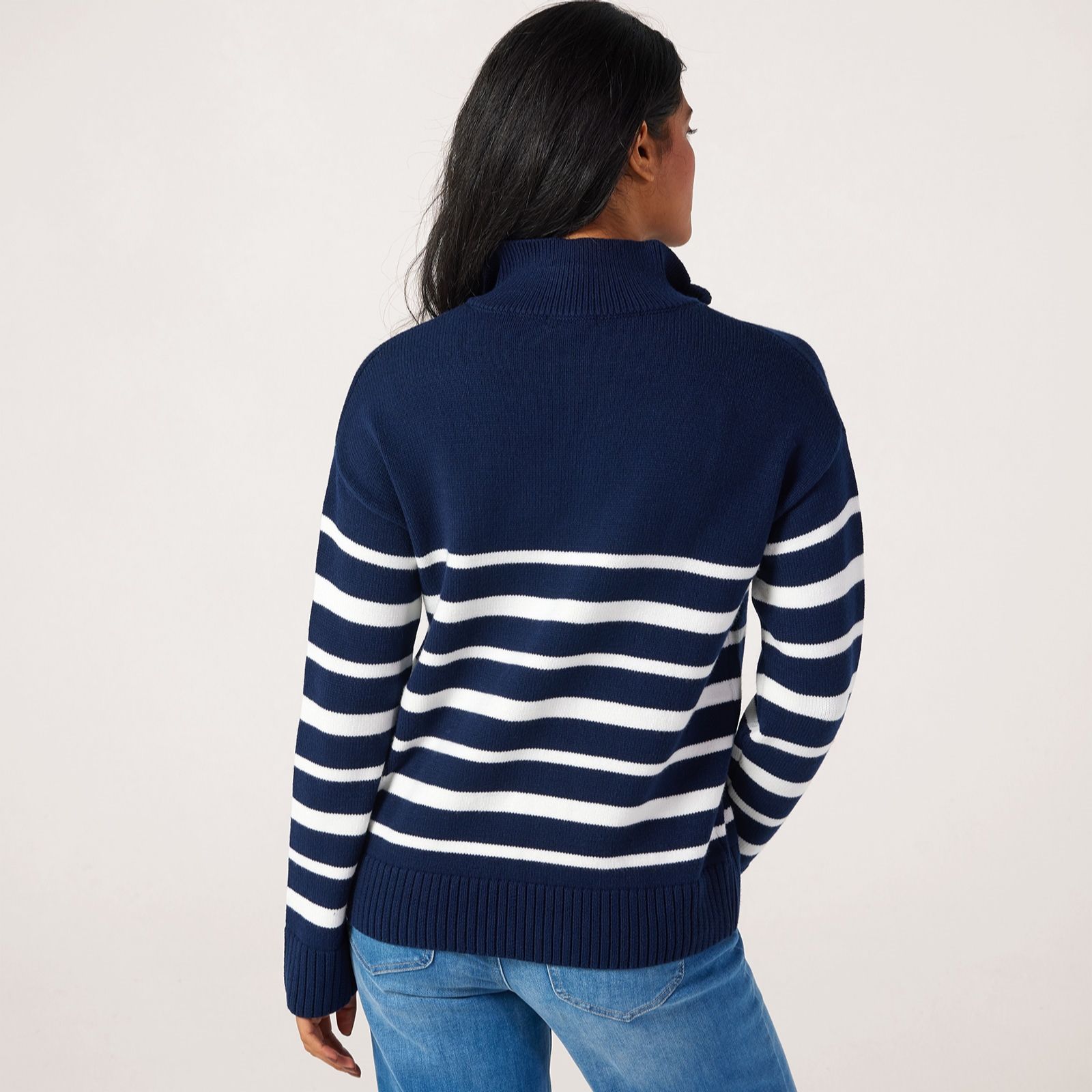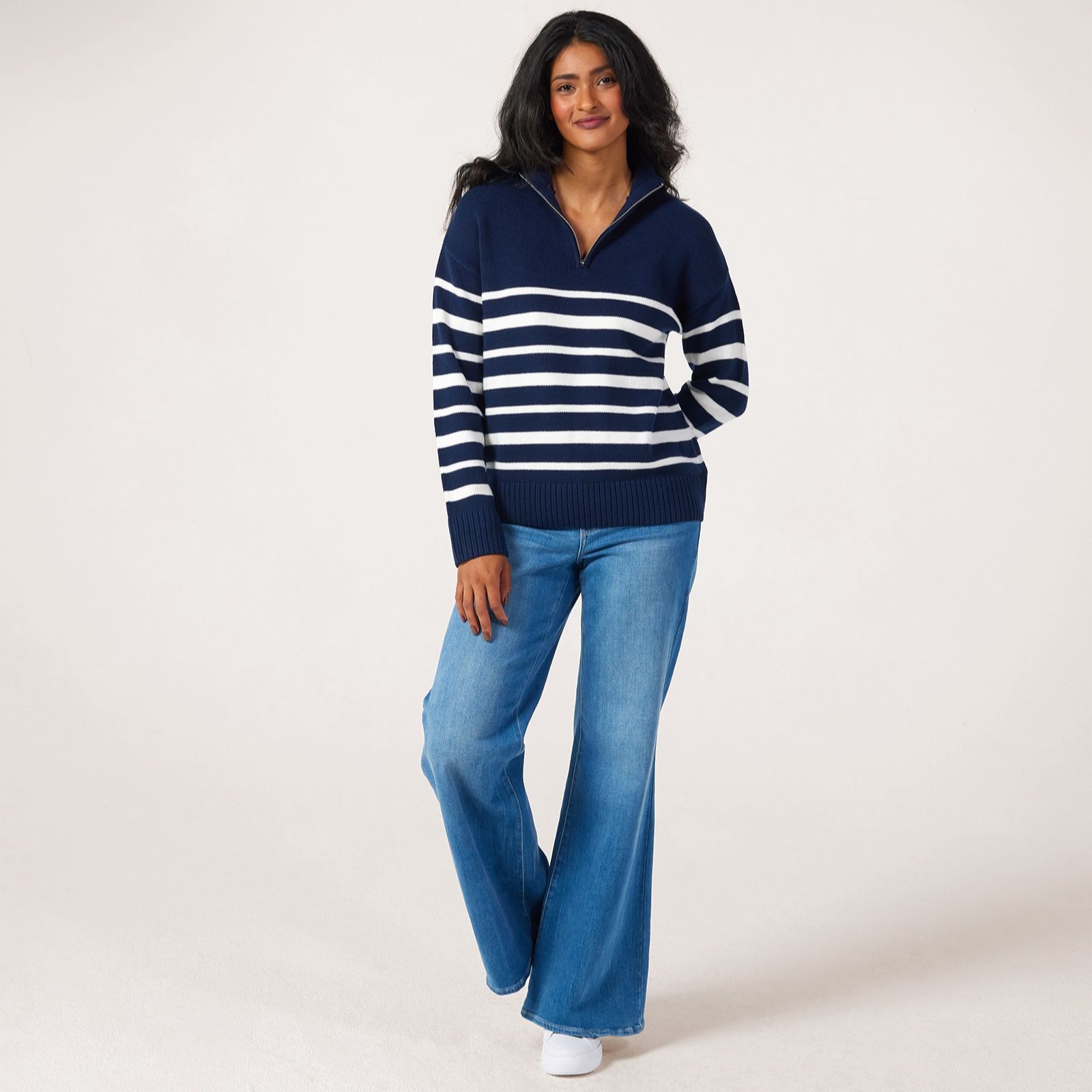 Bring a touch of nautical-inspired charm to your everyday wardrobe with this zip stripe jumper from Denim & Co. Effortlessly combining a classic stripe pattern with a practical zip detail, this jumper offers a modern twist on a timeless favourite. Perfect for casual outings or layering on cooler days, its an easy choice for both relaxed weekends and busy weekdays. Try styling it with your favourite jeans and trainers for an easy, put-together look.