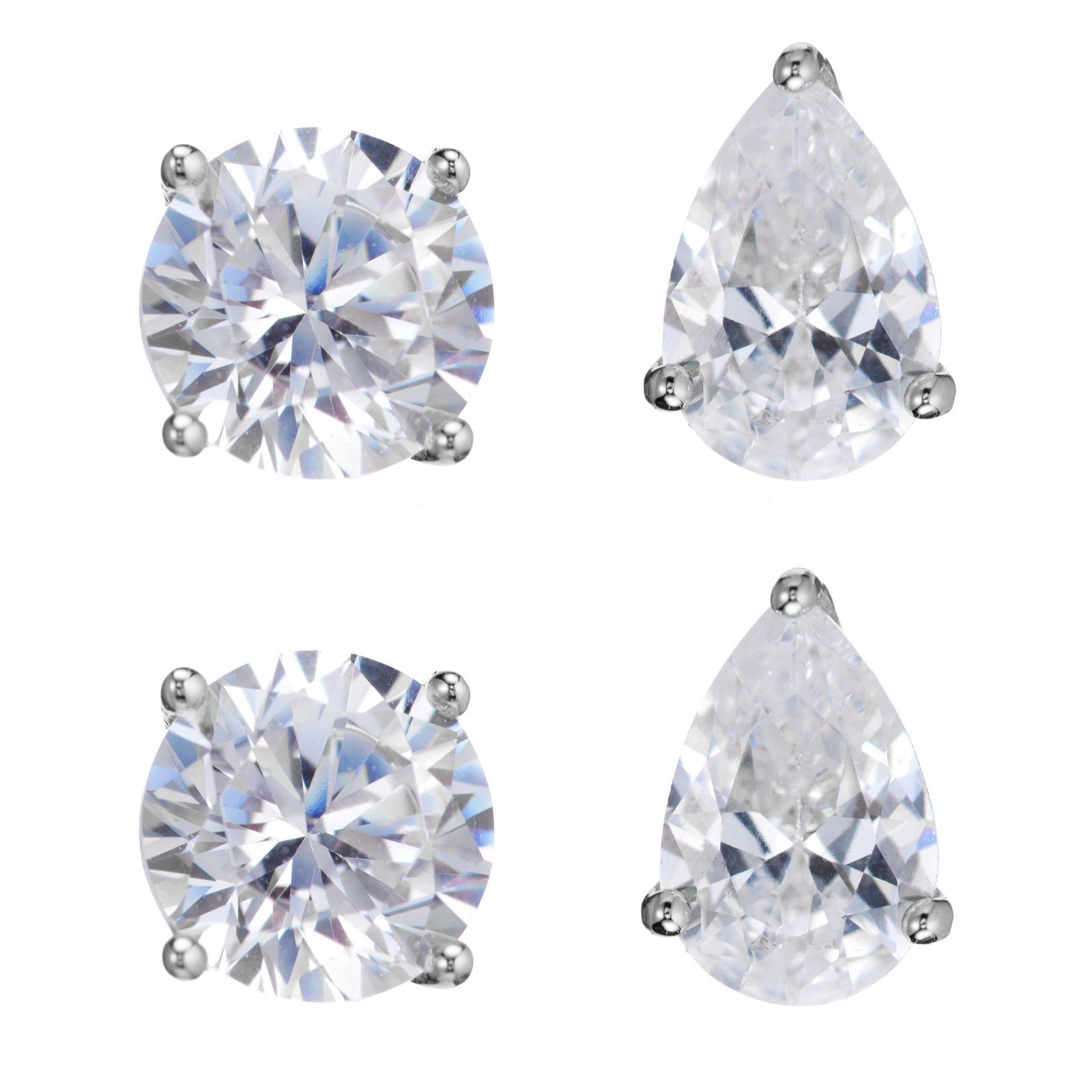 Epitomise everyday glamour with the Diamonique set of two sterling silver stud earrings, beautifully presented in a sparkling case. Featuring one pair of round-cut Diamonique stone studs and one pair of pear-cut Diamonique stone studs, these versatile pieces bring timeless elegance to any look. The chic case, complete with a mirror and organisational compartments, keeps your treasures safe and stylish at home or on the go.