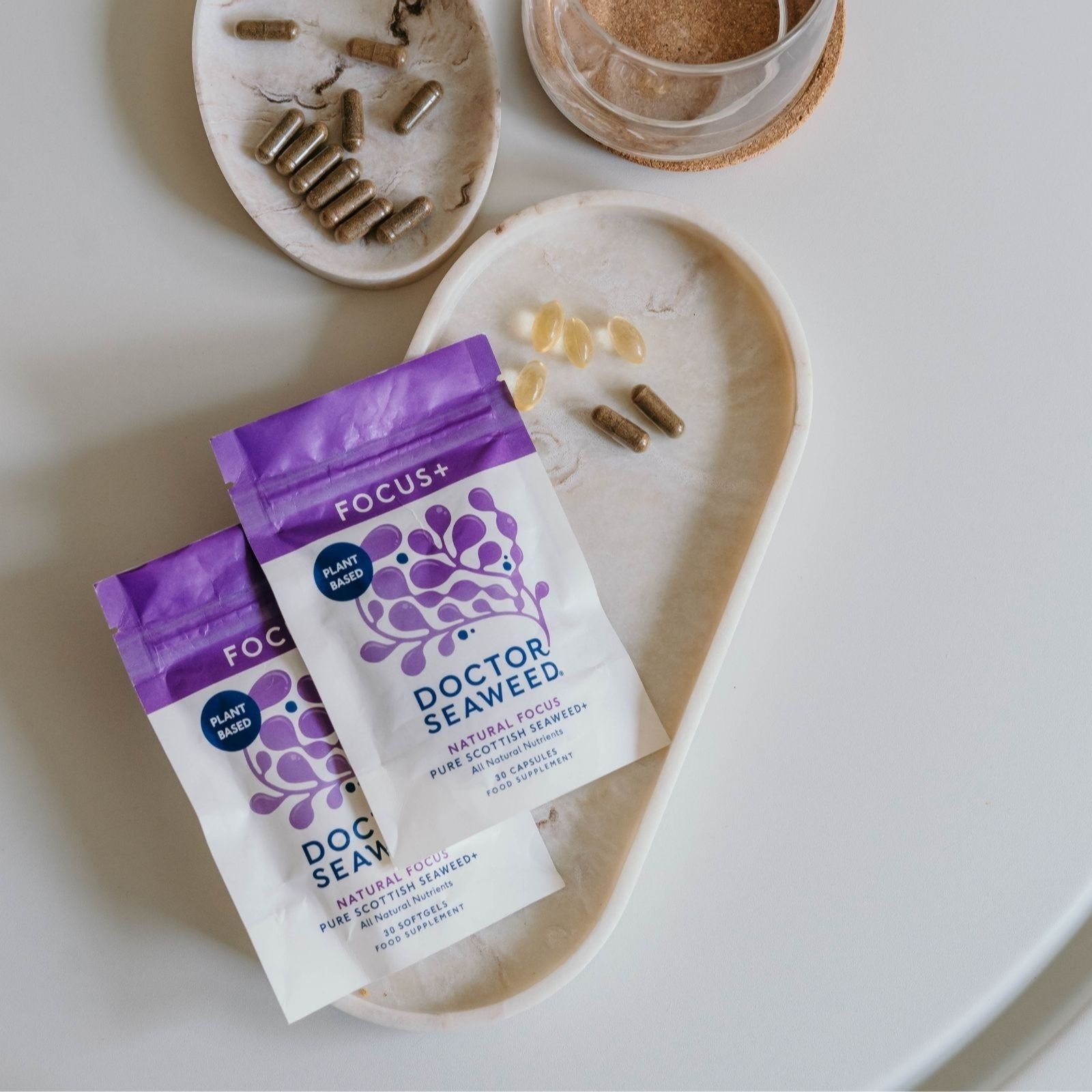 Power up your routine with Focus+ supplements from Doctor Seaweed, combining organic Scottish seaweed with other natural ingredients. Designed as a convenient daily duo of capsules and soft-gels, they make a great addition to your routine whether youre working, studying, or staying active.