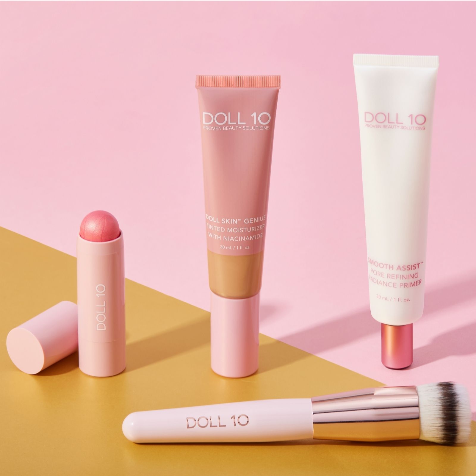 - this superb Doll Skin collection doubles up as skincare too, working to hydrate your skin and let its natural radiance shine. It features products formulated with Doll 10's iconic recipe of ingredients including marshmallow extract, collagen and probiotics.