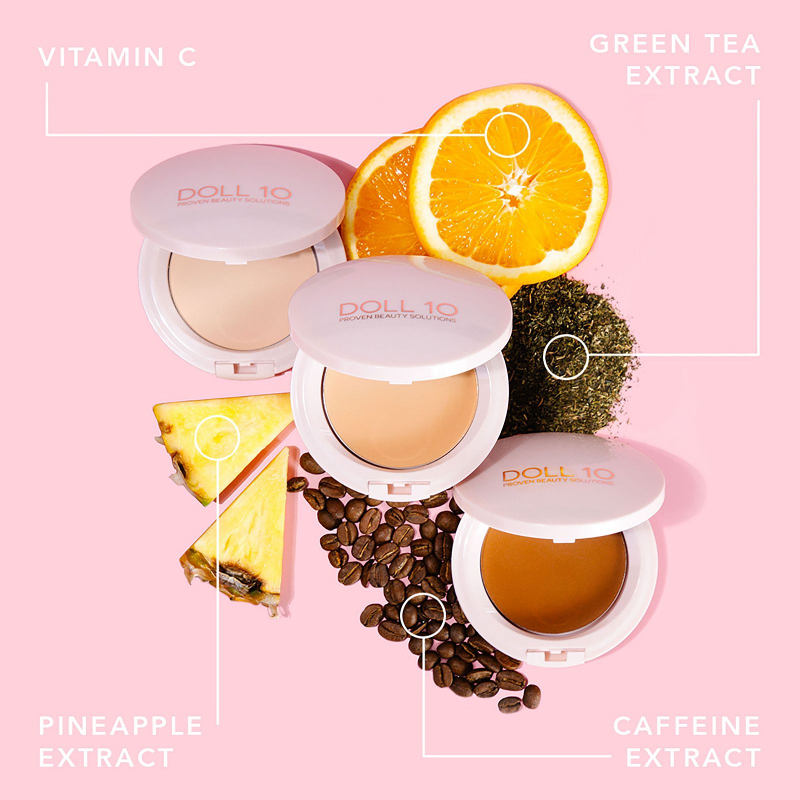 Create the perfect base with the TCE Super Coverage Serum Powder Foundation from Doll10. This medium-to-full coverage powder works to soothe, hydrate, and smooth your skin while providing a gorgeous, buildable finish, perfect for your other face make-up products. With a semi-matte, cake-free finish, this foundation is sure to become a staple in your collection.