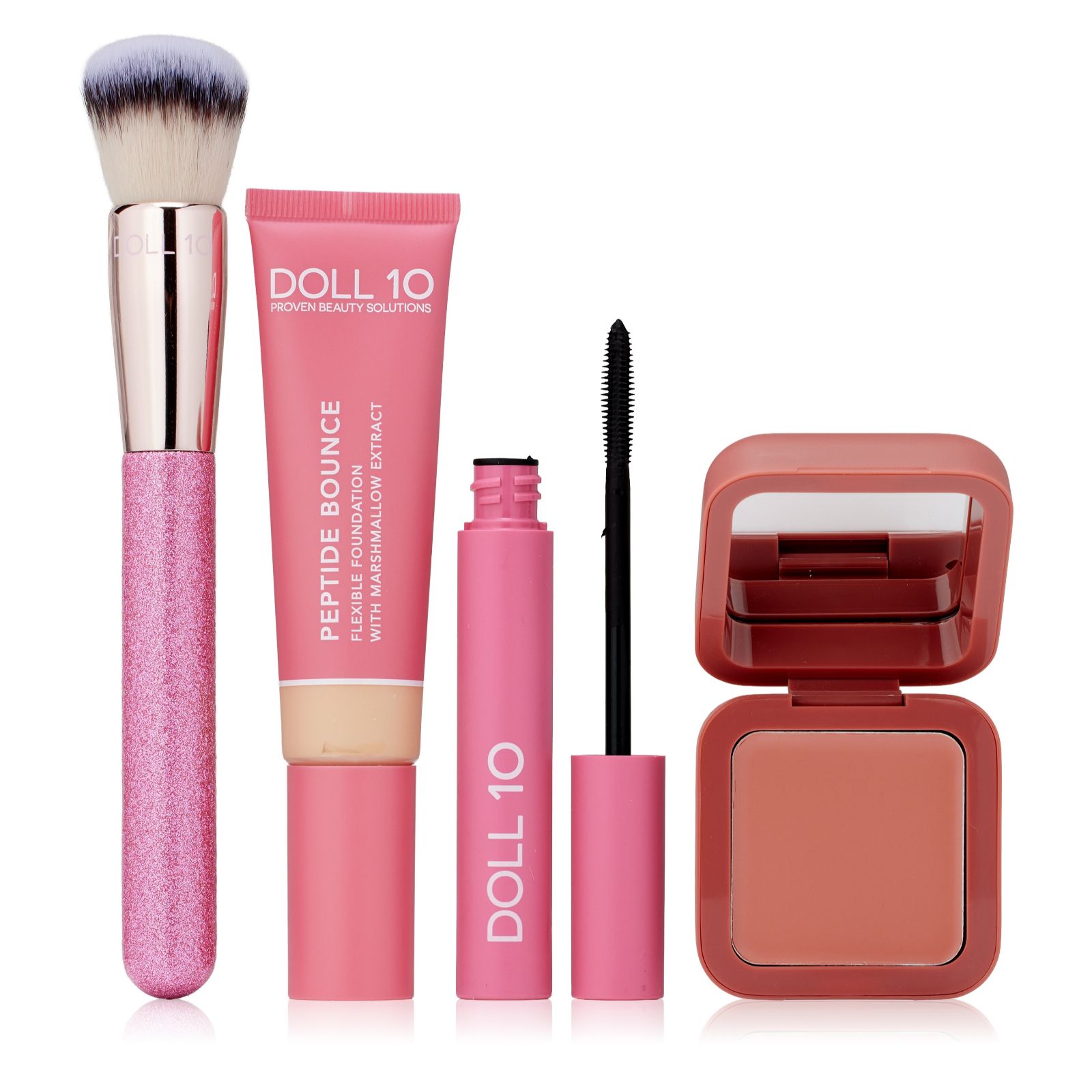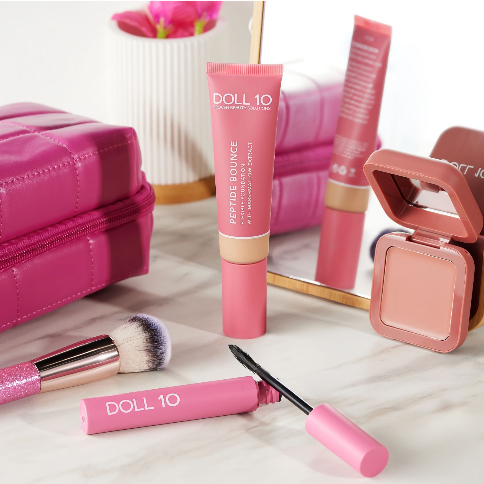 Give your complexion a naturally-lifted, radiant look with this four-piece Your Skin But Younger Peptide Foundation Collection from Doll 10. You'll receive the new Peptide Bounce Flex Foundation and She's An Icon Mascara, plus a limited-edition Peptide Foundation Brush and a gorgeous Peptide Bounce Blush. Together, these make-up essentials work to smooth, plump and brighten the look of your complexion, so your skin looks like your skin, only better.
