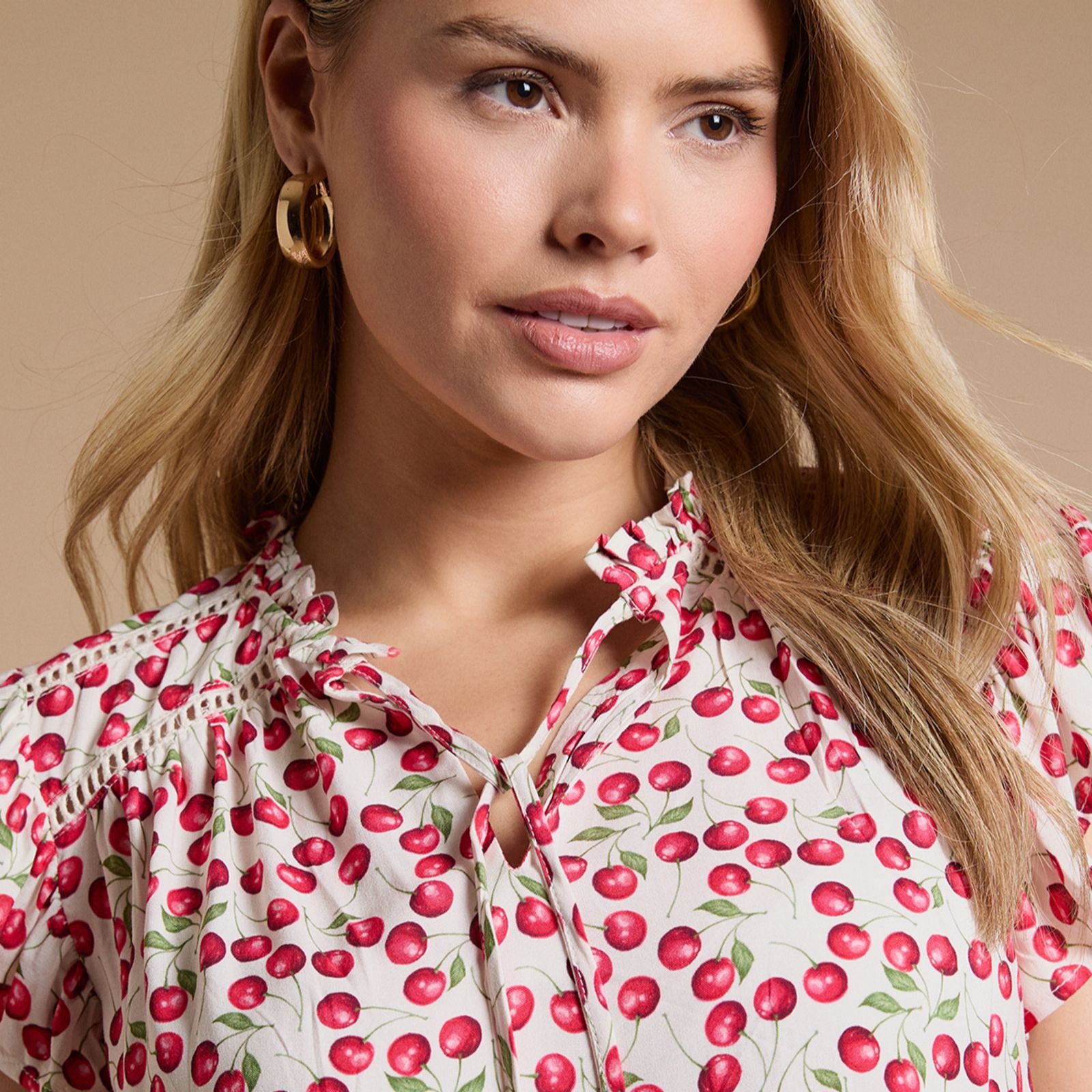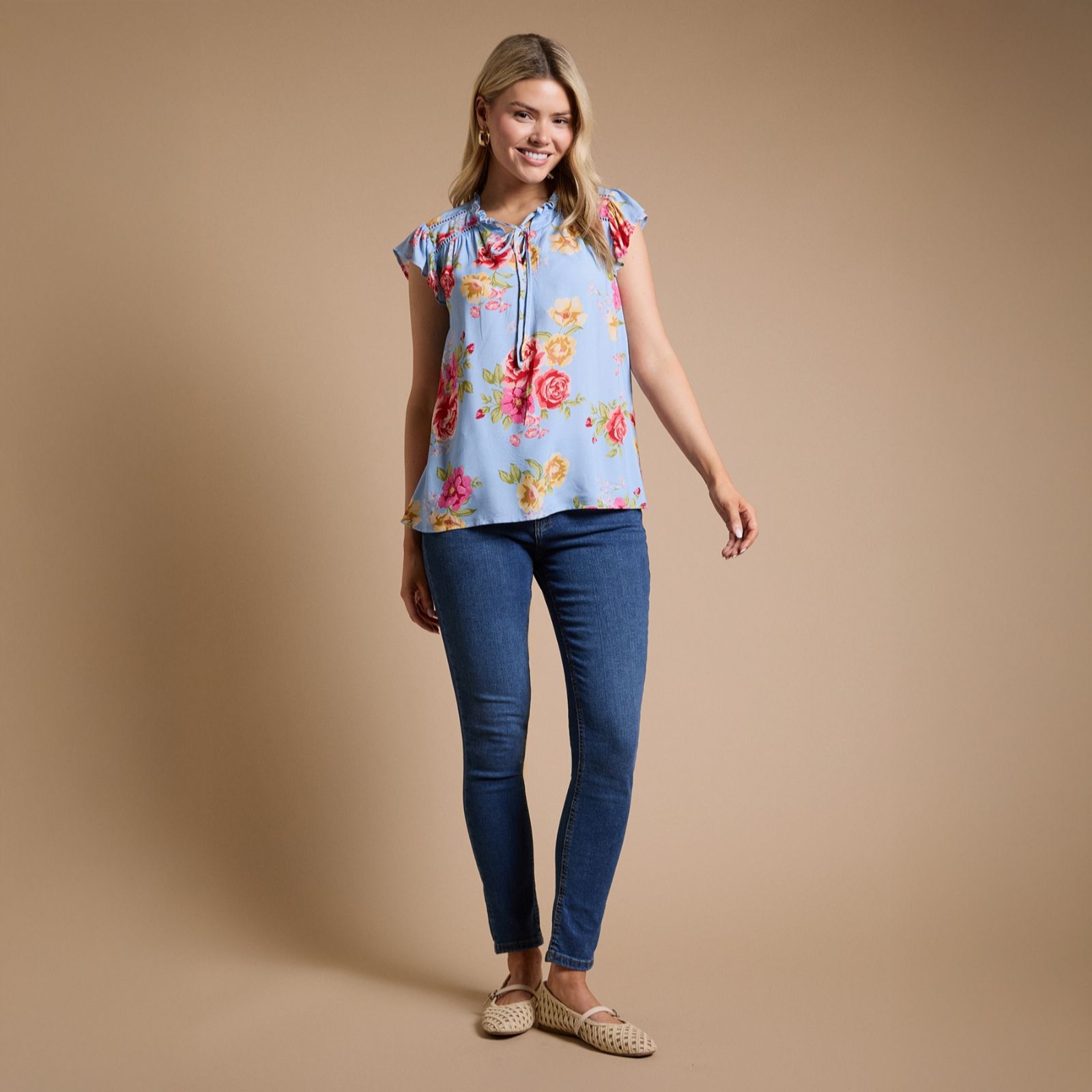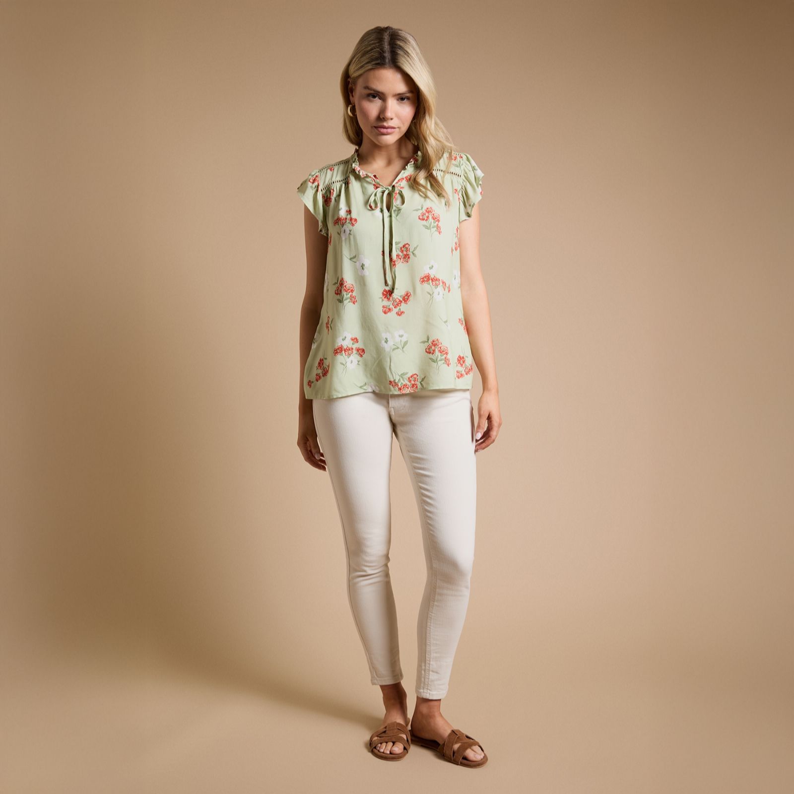 Brimming with feminine charm, this printed lace trim blouse from Dorothy Perkins brings a graceful touch to your everyday style. The ruffled neckline with a tie detail and flutter sleeves create a soft, romantic silhouette that moves beautifully as you do. Whether you're heading to brunch or the office, pair it with tailored trousers or jeans for a look that's effortlessly polished yet relaxed.