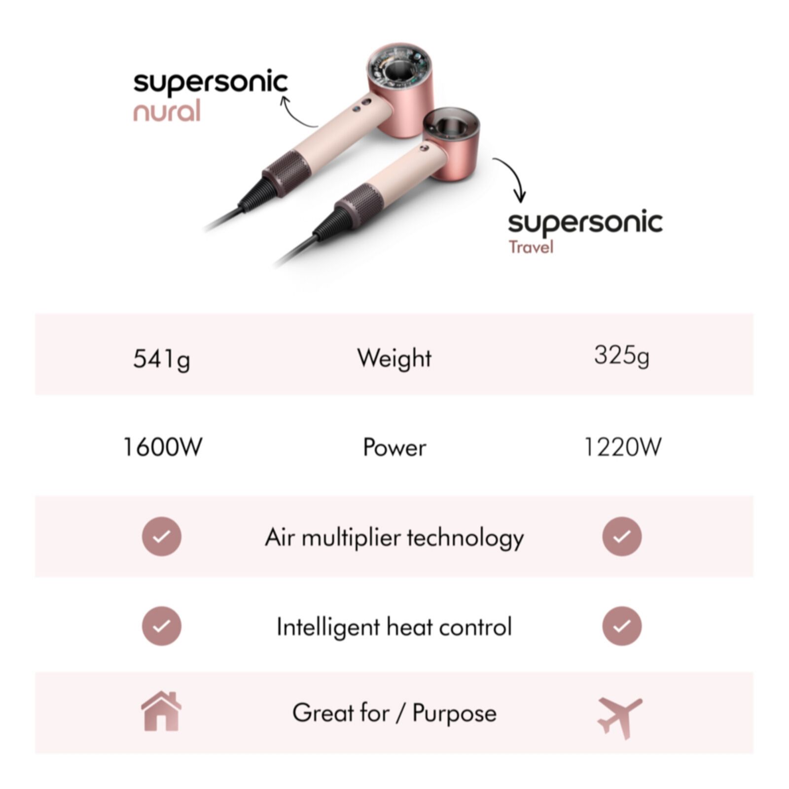 - 94% of consumers agree that the Supersonic Travel dryer is more powerful than a hotel dryer.* (*Consumer test of 54 participants who used a hotel dryer within 3 months. Conducted in January 2026)