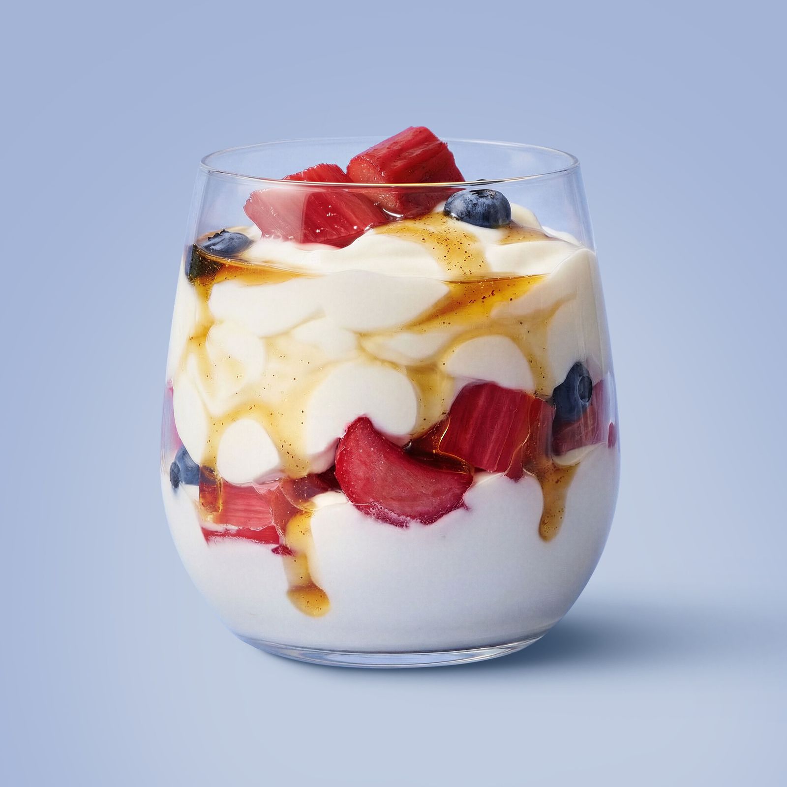 - 2 x Greek Style Vanilla & Rhubarb Yoghurt Base (220g)