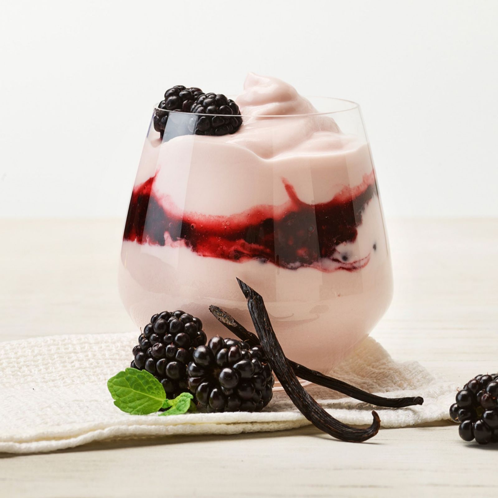 - 2 x sachets Greek Style Vanilla & Blackberry Yoghurt Base (230g)
