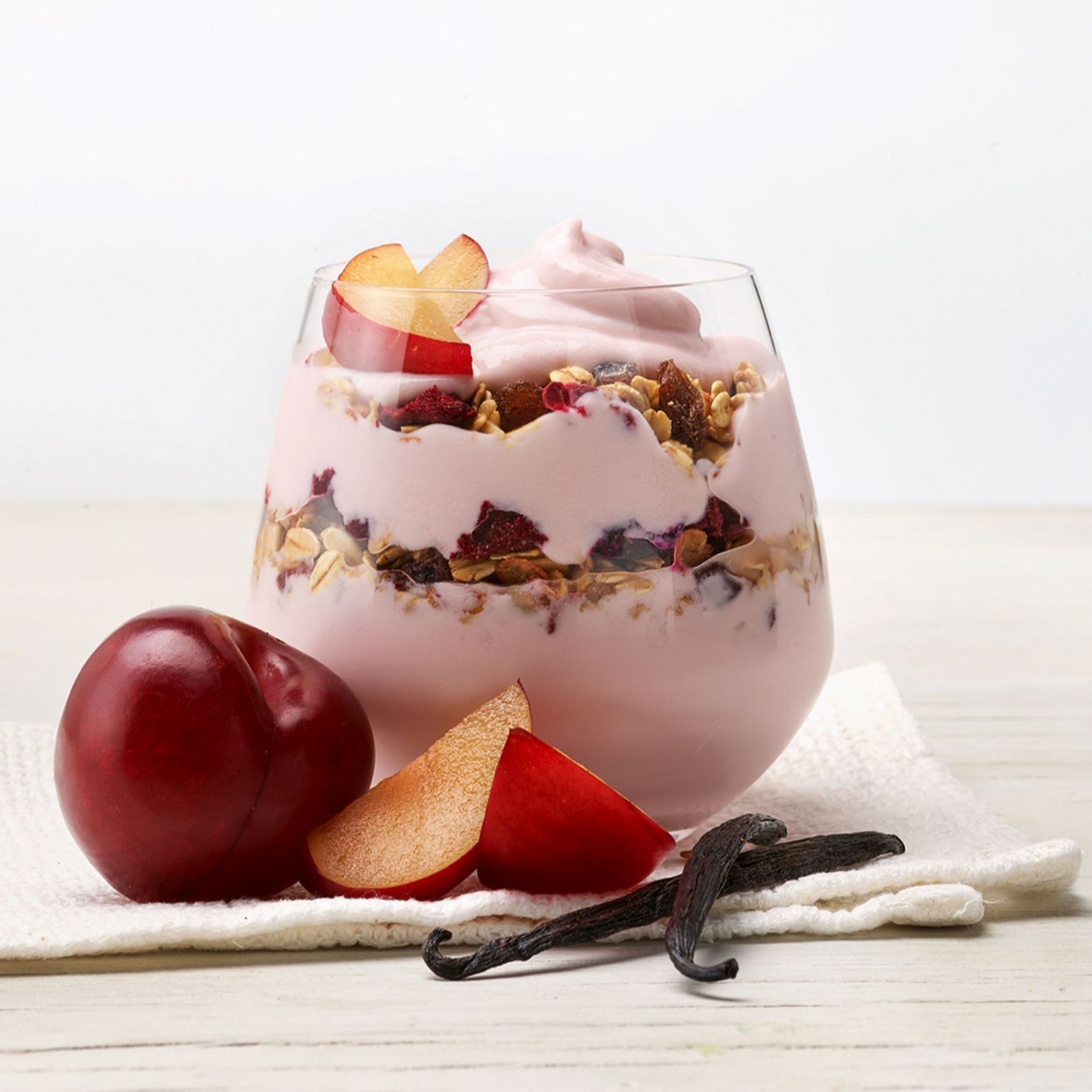 - 2 x sachets Greek Style Vanilla & Plum Yoghurt Base (230g)