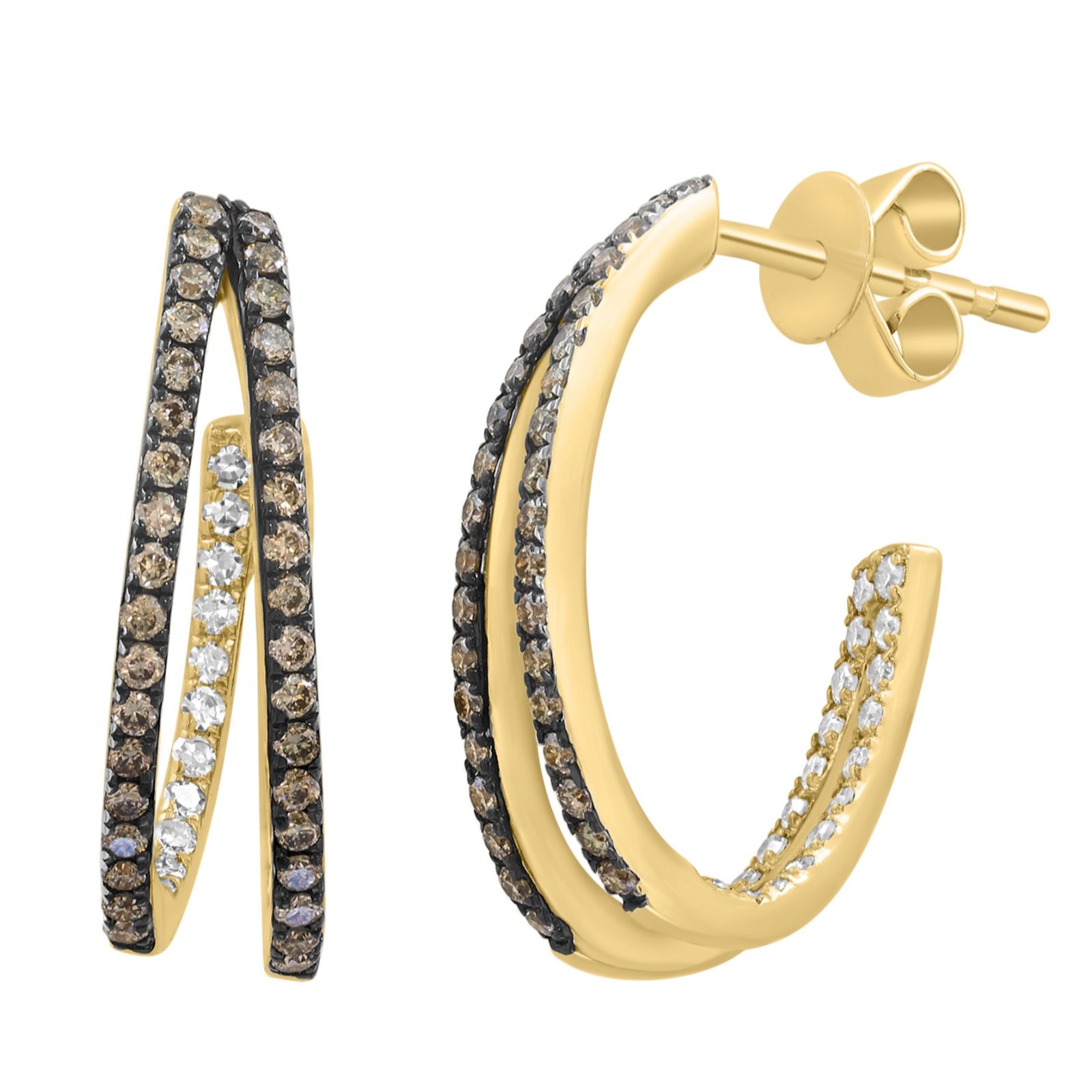Indulge in the rich allure of the Effy Espresso Diamond Two Row Hoop Earrings, crafted from 14ct yellow gold. Each hoop glimmers with a blend of espresso and blue single-cut diamonds, creating a captivating contrast that radiates warmth and sophistication. Designed in a comfortable huggie style, these earrings bring everyday elegance to your jewellery collection, offering a modern twist on classic diamond luxury.