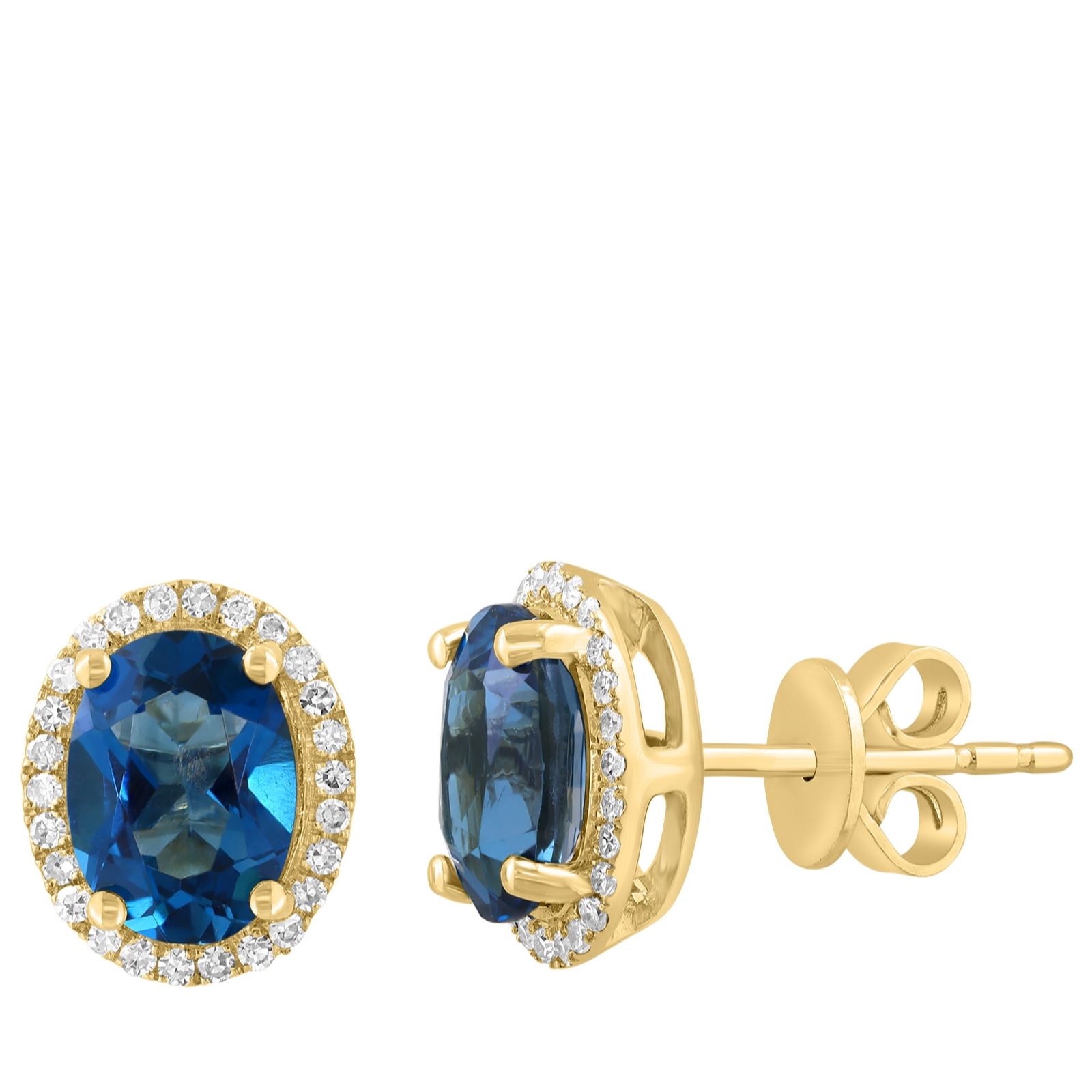 Find your deep sea sparkle with the stunning Effy oval stud earrings from the Pacifica Collection, inspired by the mesmerising hues of ocean depths. Crafted in luxurious 14ct yellow gold, each earring features a captivating London Blue topaz centre stone, framed by a halo of glittering white diamonds. Elegant yet impactful, they're perfect for elevating everyday looks or adding a dazzling touch to special occasions.