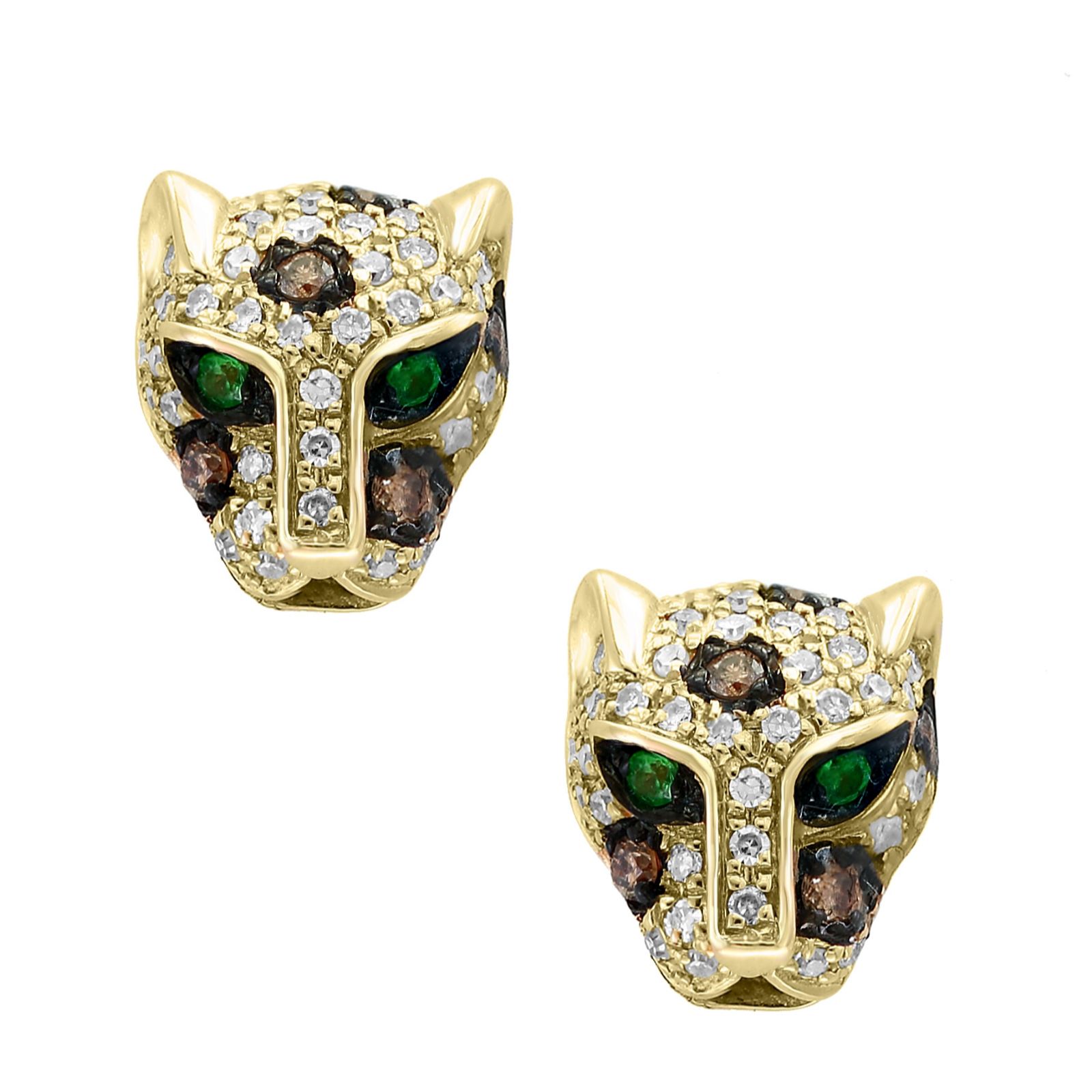 Stand out with the Effy Signature panther stud earrings, a bold fusion of luxury and artistry. Crafted from gleaming gold, these captivating studs feature rich espresso-brown diamonds and vivid tsavorite eyes, creating a striking contrast that exudes sophistication. Perfect for day-to-night wear, they add a fierce, fashion-forward edge to any outfit, making them a treasured statement piece you'll reach for time and again.