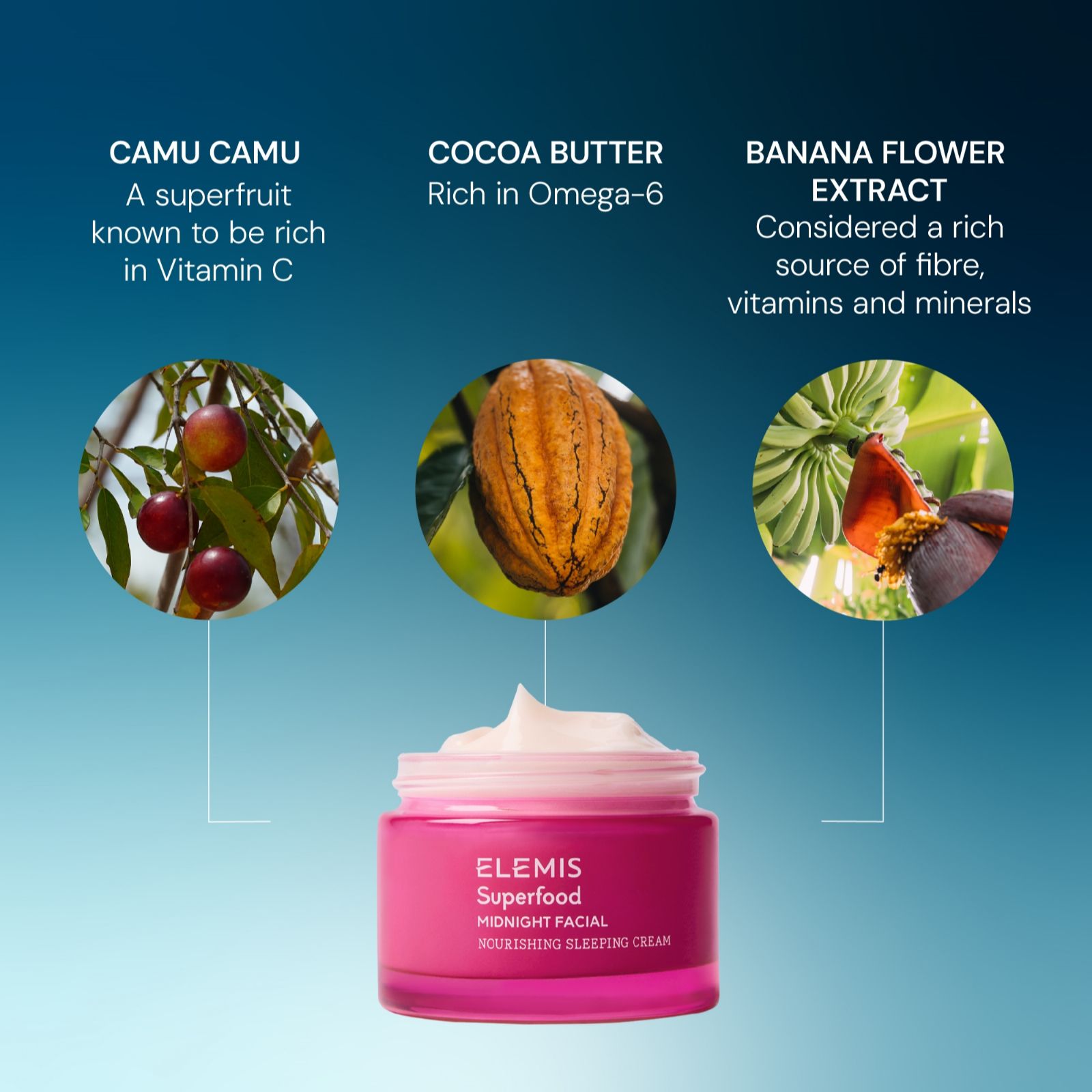 - 1 x Superfood Midnight Facial (50ml) - powered by camu camu, cocoa butter, and banana flower extract