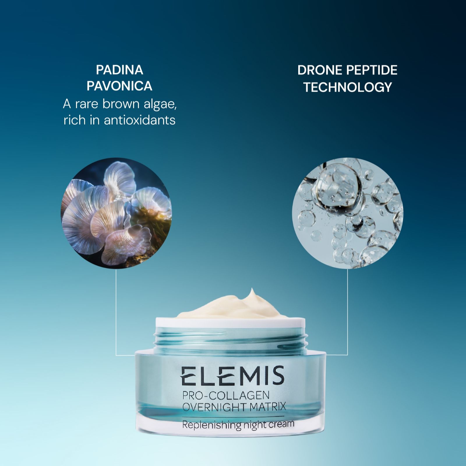 - 1 x Pro-Collagen Overnight Matrix (30ml) - an overnight treatment that targets areas of your skin where everyday stress shows most, for a visibly smoother, younger-looking complexion by morning. Enriched with padina pavonica (a marine algae), plus Drone Peptide Technology and microalgae and wild indigo oligosaccharide