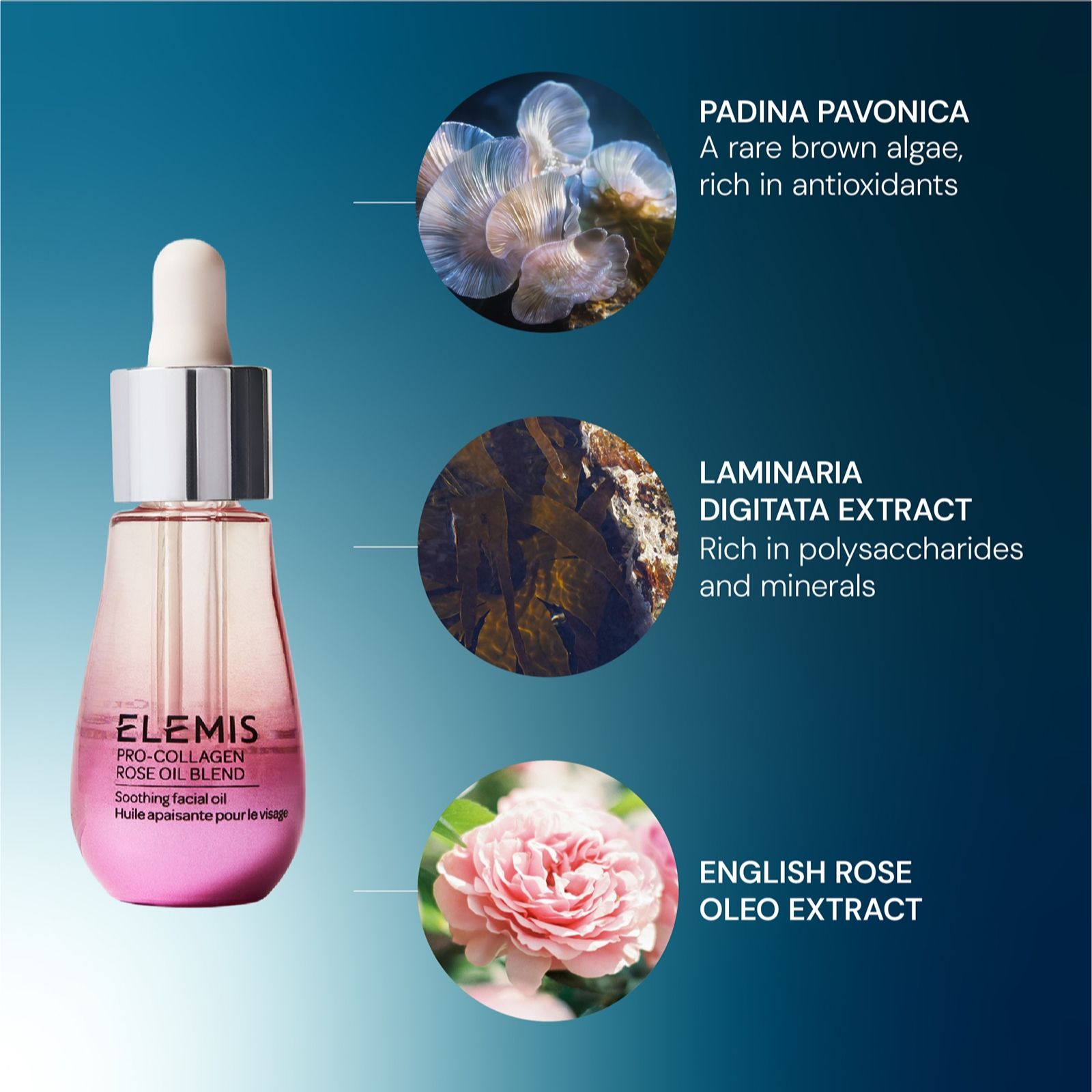 - 1 x Pro-Collagen Rose Facial Oil Blend (15ml) - enriched with up to 17 varieties of organic roses that go into the making of this English rose oleo extract, plus rosa damascena and rosehip seed oil, as well as safflower oil, padina pavonica (a marine algae), roaring water kelp , coastal extract, plus the oils of sweet almond, jojoba and coconut. Ideal for all skin types, including sensitive skin
