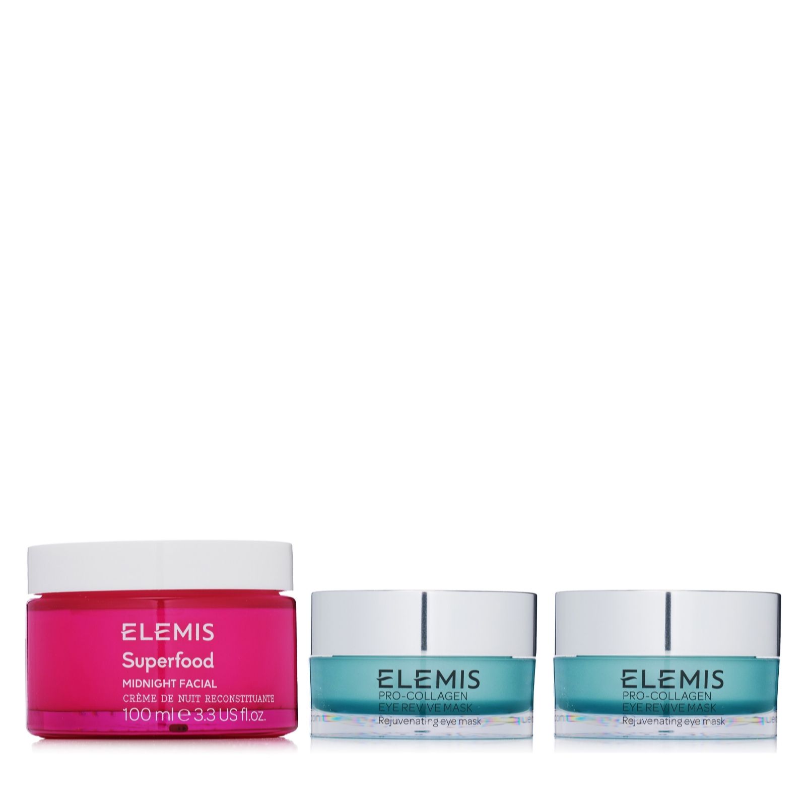 Indulge in the ultimate night-time skincare routine with Elemis three-piece Overnight Skincare Essentials. This luxurious set includes the Superfood Midnight Facial and two Pro-Collagen Eye Revive Masks, designed to help your skin feel refreshed and revitalised. The Pro-Collagen Eye Revive Mask offers an instant plumping effect, helping to reduce the appearance of dark circles and puffiness. Follow with the Superfood Midnight Facial, a gel-cream that works overnight to help improve skin tone and leave your complexion looking radiant and hydrated.