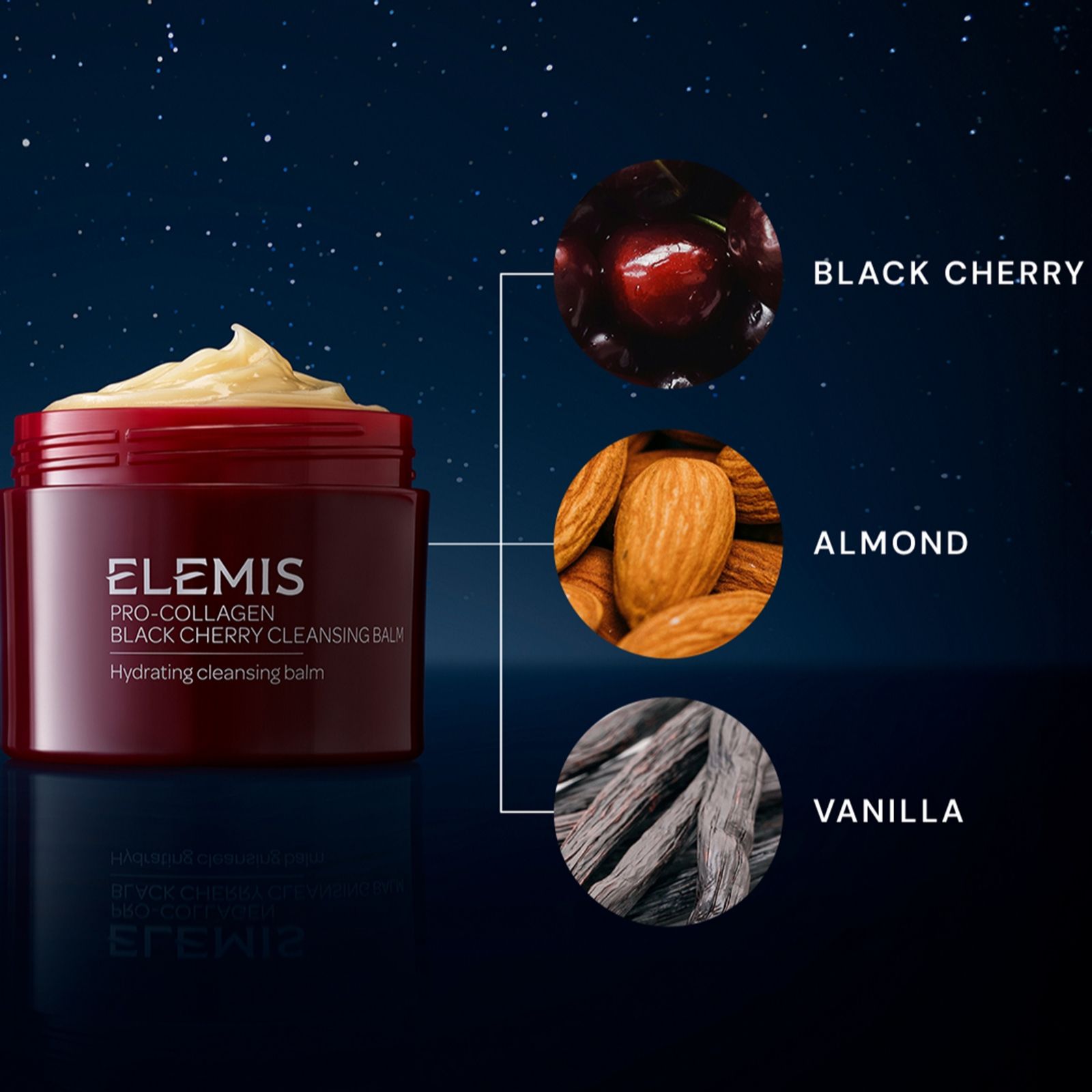 - 1 x Pro-Collagen Black Cherry Cleansing Balm (200g) - formulated with starflower oil, elderberry and optimega, plus padina pavonica (a marine extract), rose and mimosa waxes. Fragranced with juicy black cherry and comforting almond and vanilla