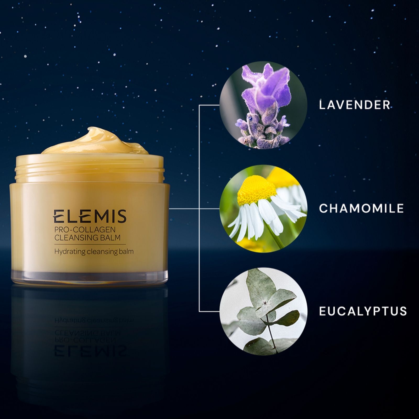 - 1 x Pro-Collagen Cleansing Balm Original (200g) - features a signature blend of essential oils including geranium, lavender, chamomile and eucalyptus, plus ho wood, orange, mint leaf, clove, starflower and elderberry oils, fused with mimosa flower wax, rose wax, vitamin E and padina pavonica (a marine algae)
