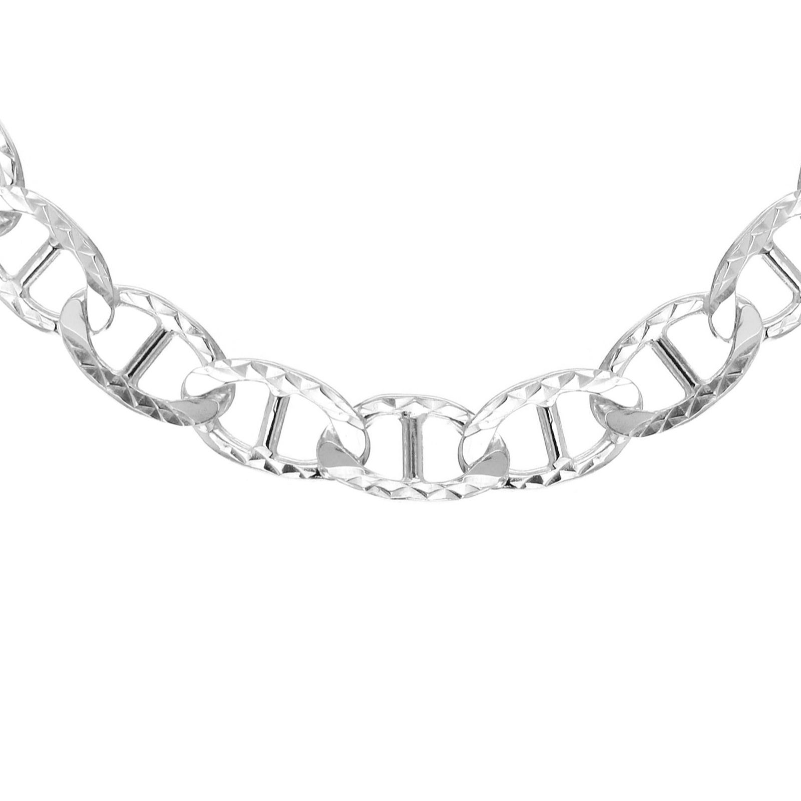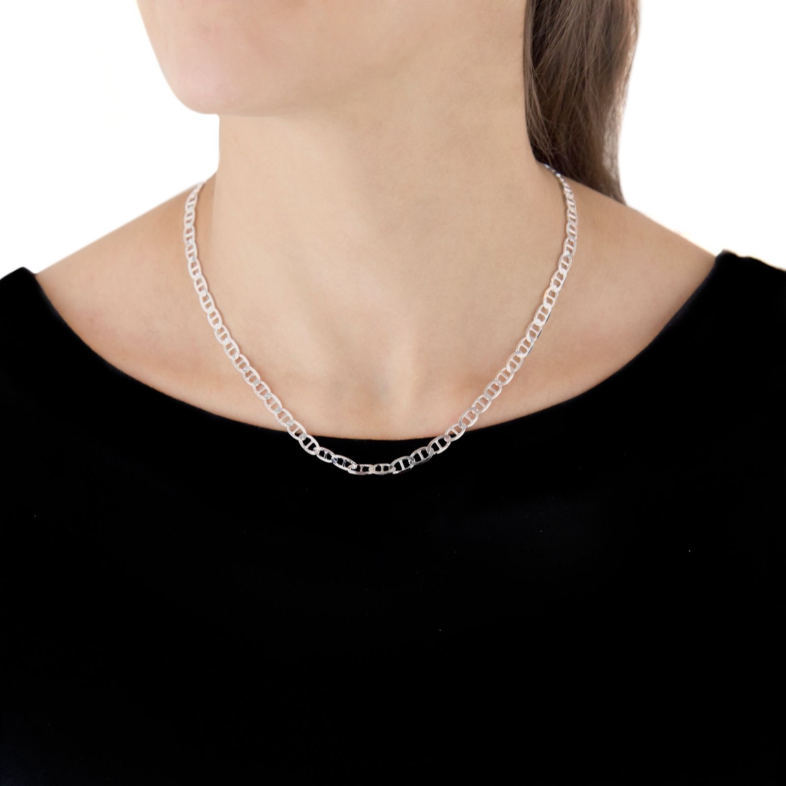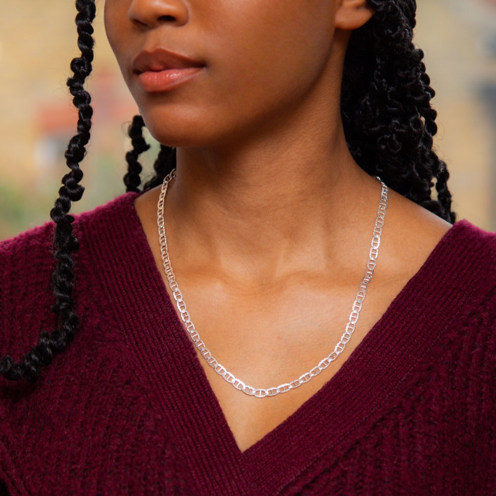 Refined and radiant, this Italian-crafted mariner necklace from Faith & Brown brings timeless sophistication to any look. Expertly made from sterling silver, its two-sided design combines smooth links with diamond-cut detailing, catching the light beautifully for a subtle shimmer. Whether worn alone or layered with other favourites, this elegant piece adds polished charm to everyday outfits and special occasions alike.