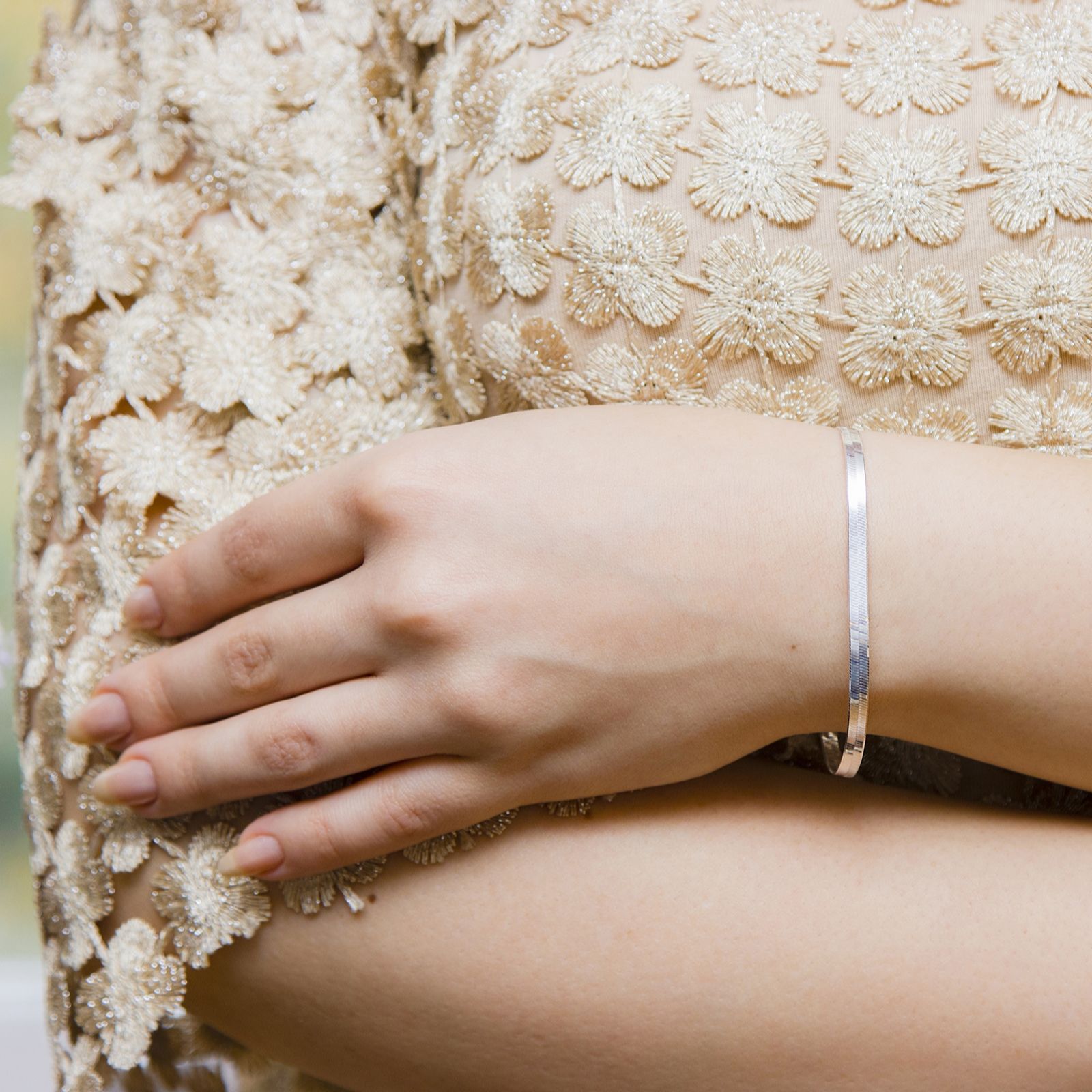 Be inspired by the effortless glamour of Italian design with this Faith & Brown triple herringbone bracelet, bringing a touch of luxury to your wrist. Expertly crafted in sterling silver and finished with your choice of rhodium or 18k gold plating, the fluid three-row weave drapes beautifully, making this bracelet a standout piece for everyday wear or special occasions.