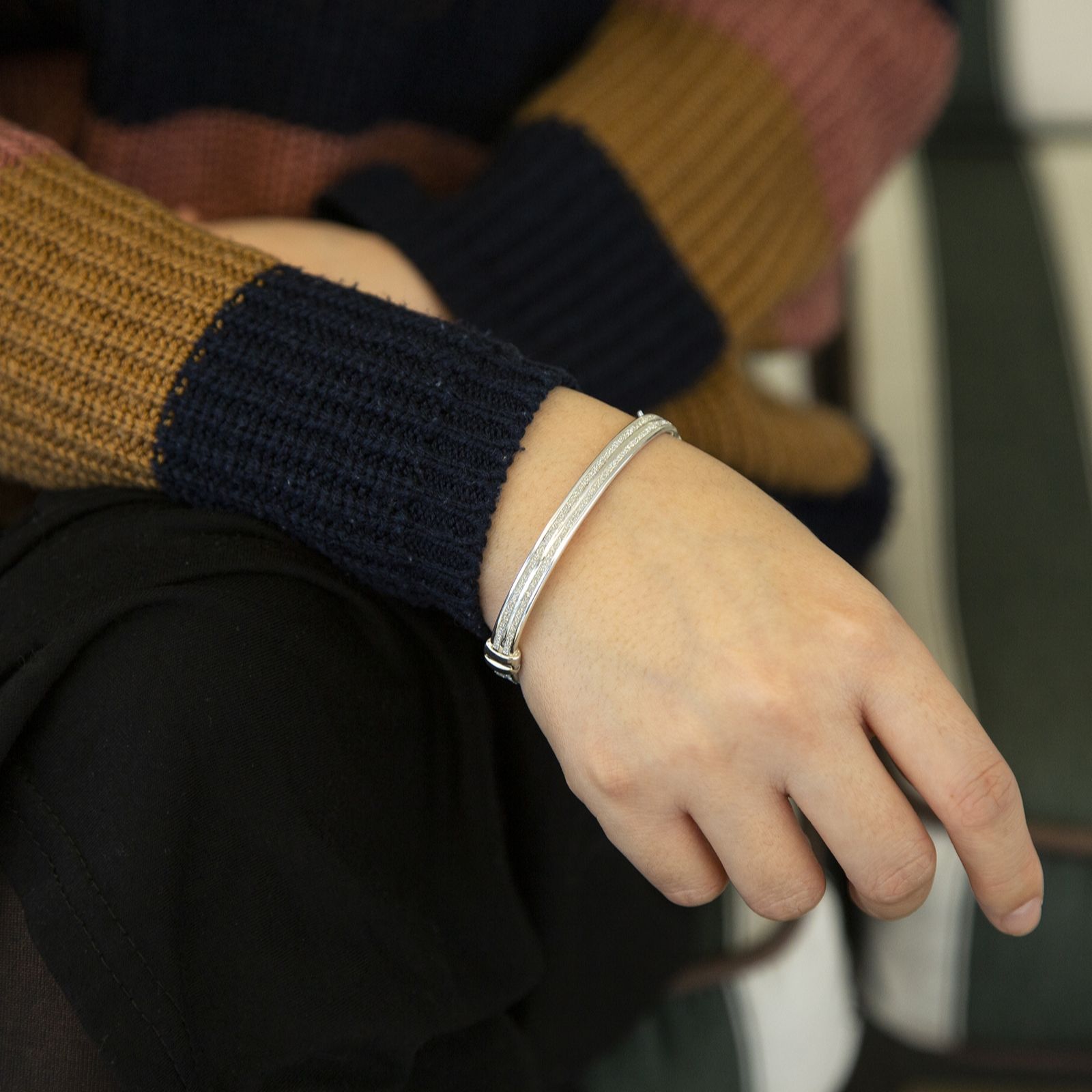 Faith & Brown Stardust Double Strip Hinged Bangle Sterling Silver