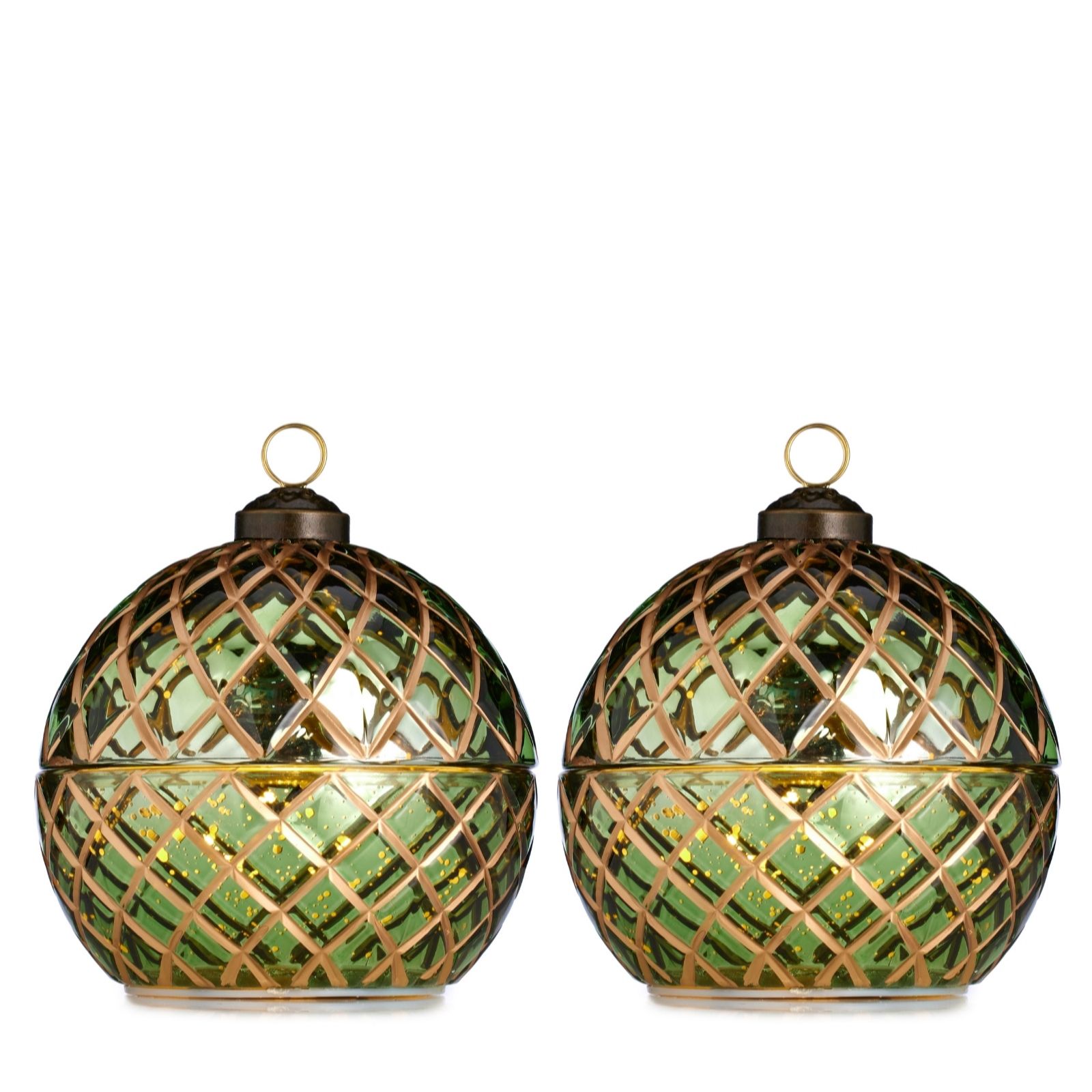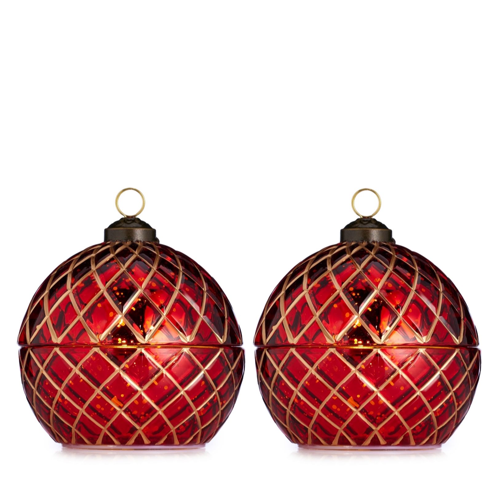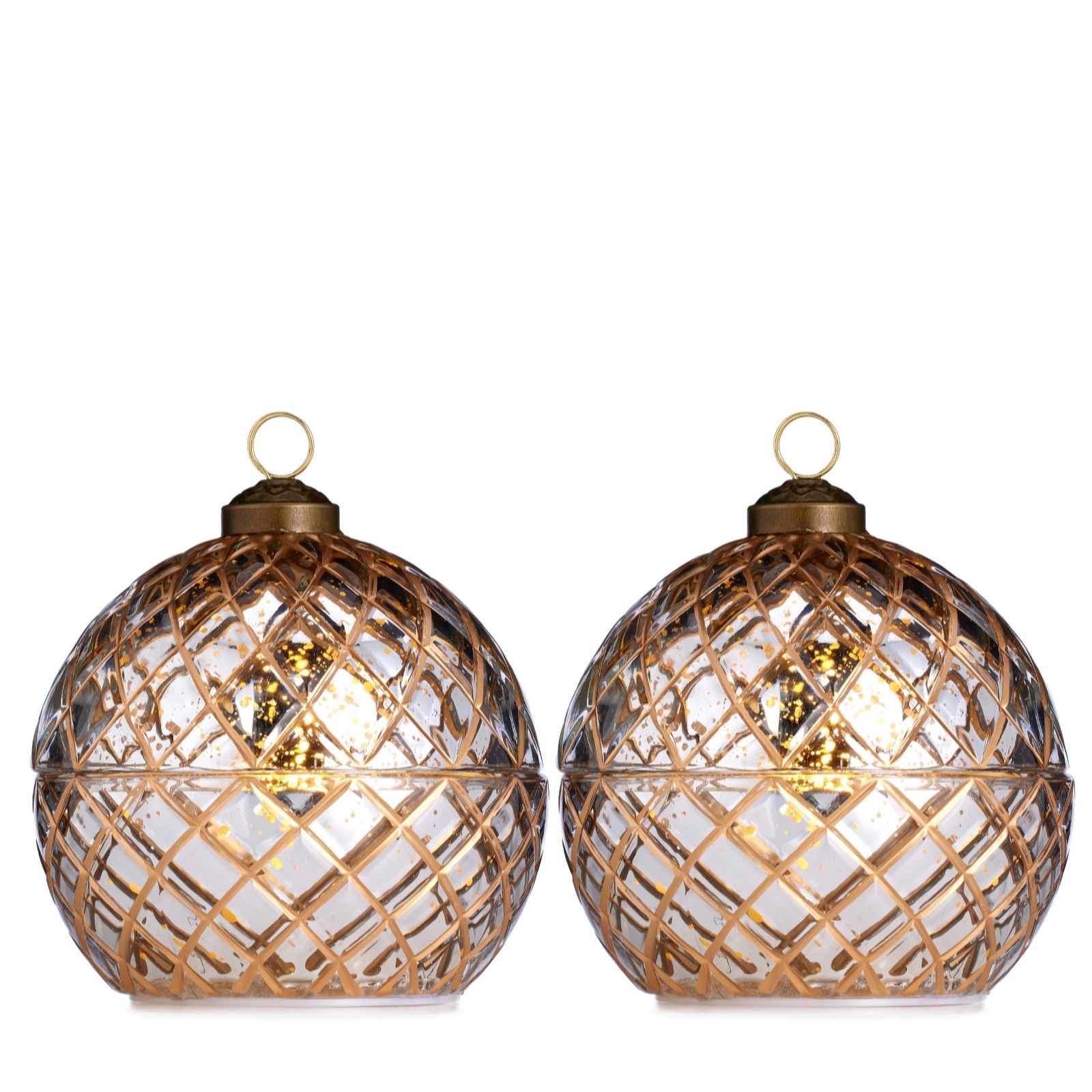 - 2 x wax LED candle in glass decorative ball