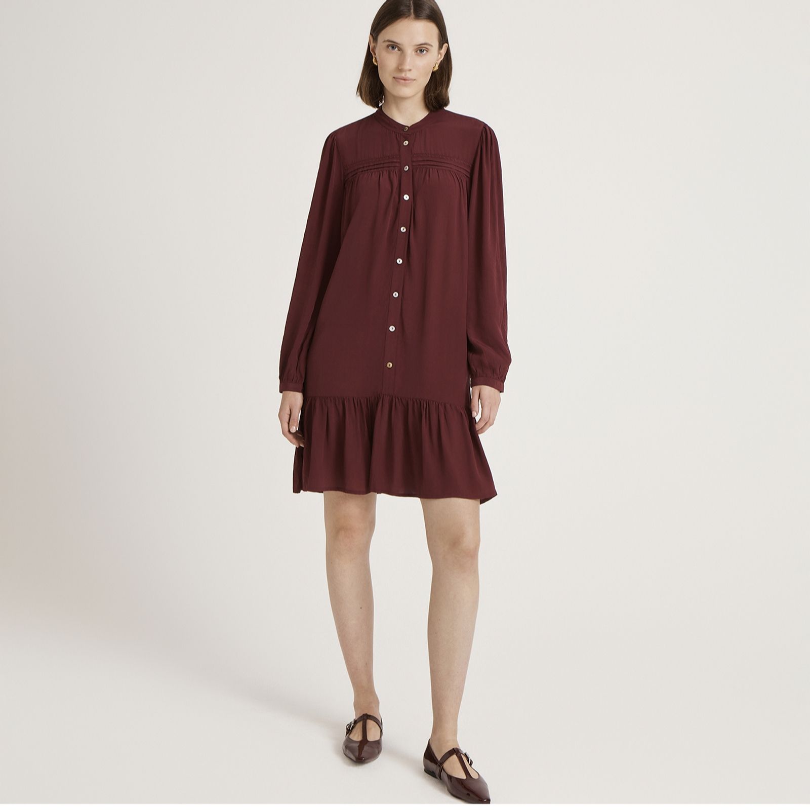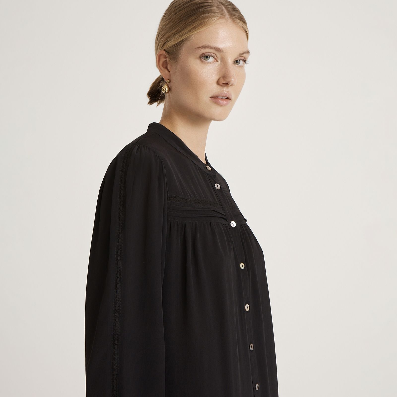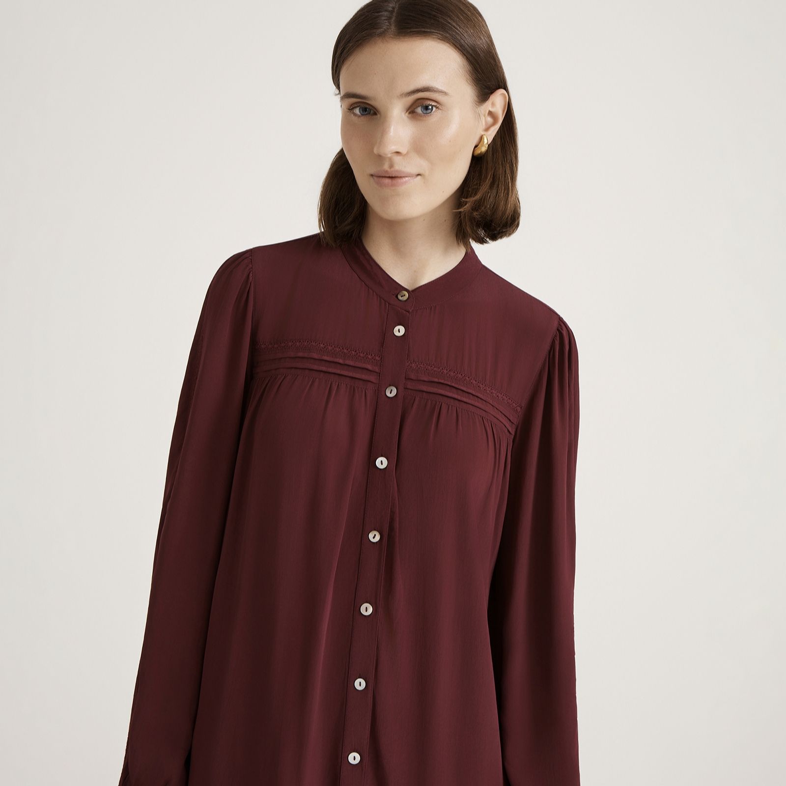 Indulge in the timeless romance of the Beccy mini dress from Finery London, a vintage-inspired piece adorned with delicate pintuck and lace trim detailing. Its mandarin collar and faux mother-of-pearl buttons add refined charm, while the long puff sleeves and tiered skirt create a soft, flowing silhouette. Perfect for both casual days and special evenings, style it with ankle boots for daytime chic or heels for an elegant night out.