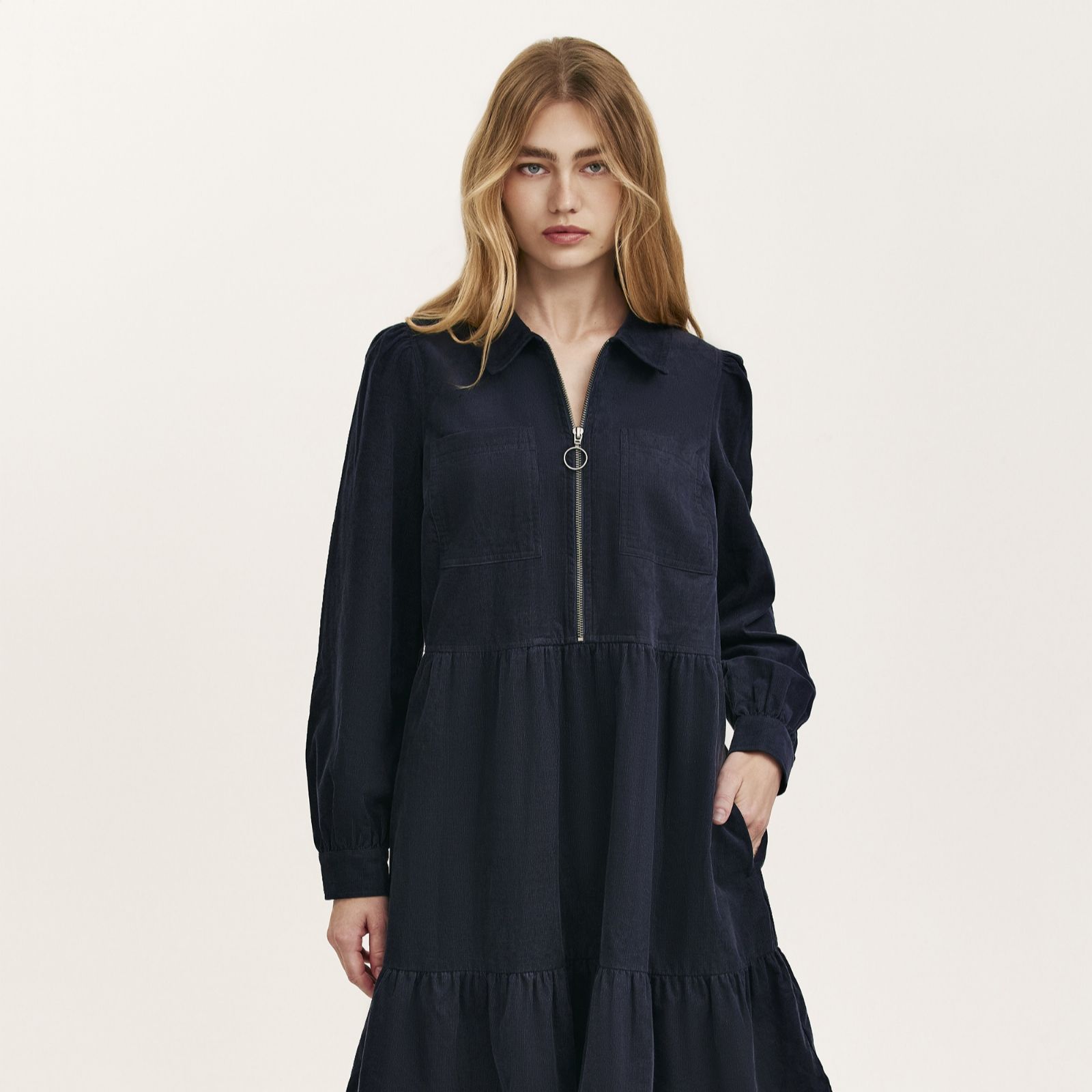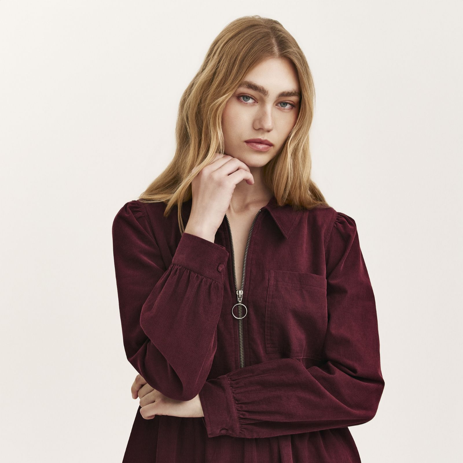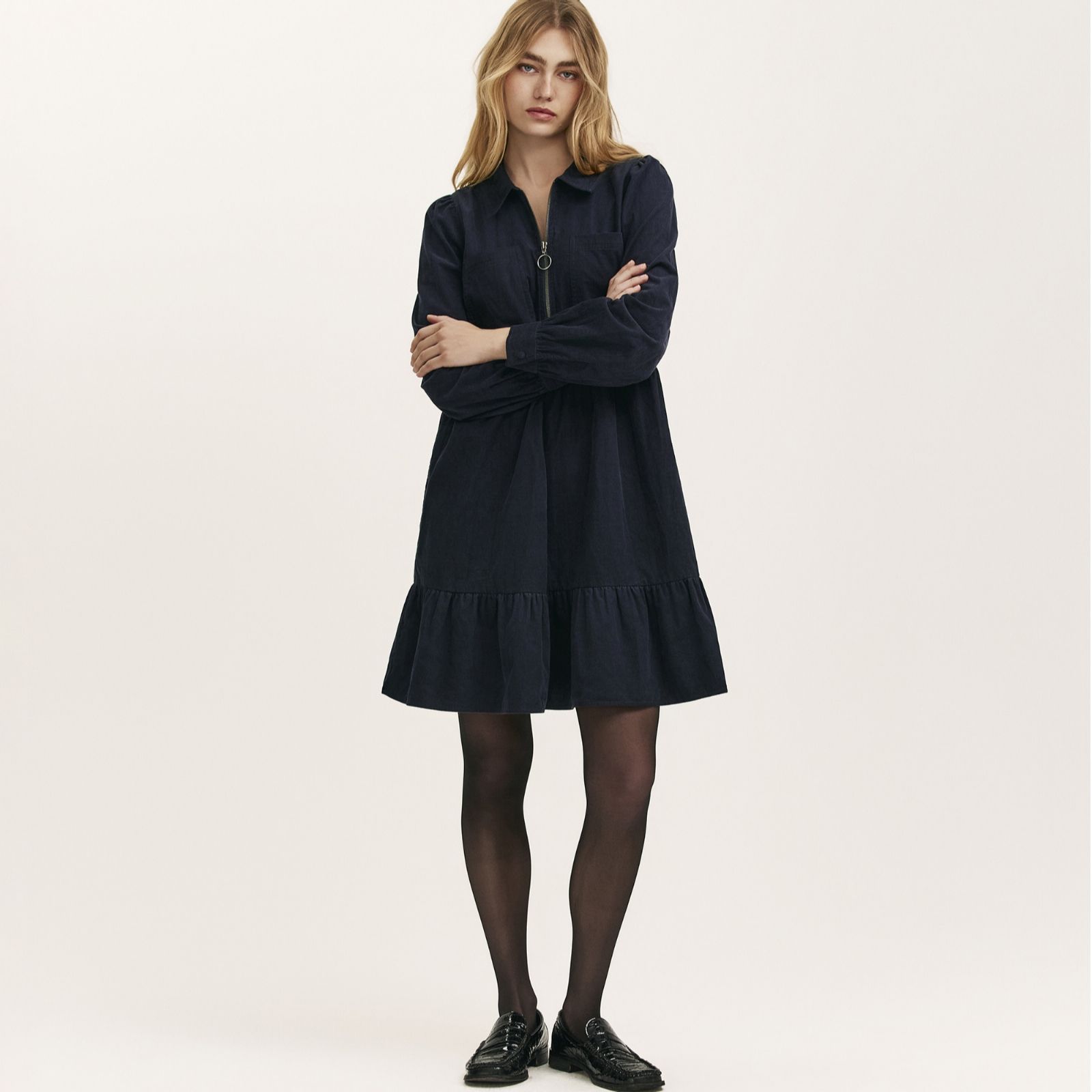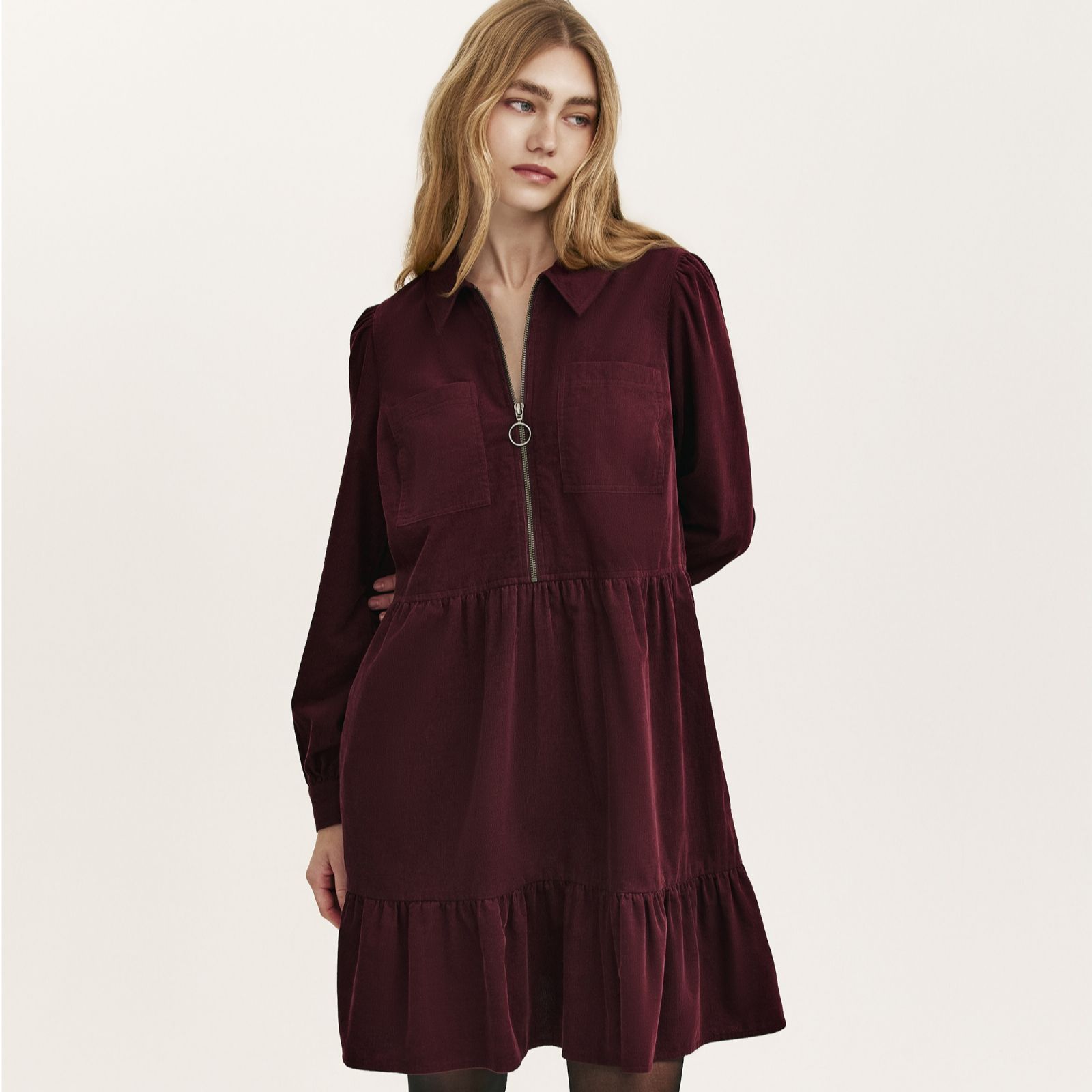 Slip into effortless style with the Erin corduroy mini dress from Finery London, where relaxed tiers and a collared neckline meet the soft texture of corduroy for a look that feels both casual and refined. Perfect for everything from brunch with friends to relaxed evenings out, its easy silhouette and practical pockets make it a wardrobe staple. Try teaming it with ankle boots and a chunky knit for a chic autumnal vibe.