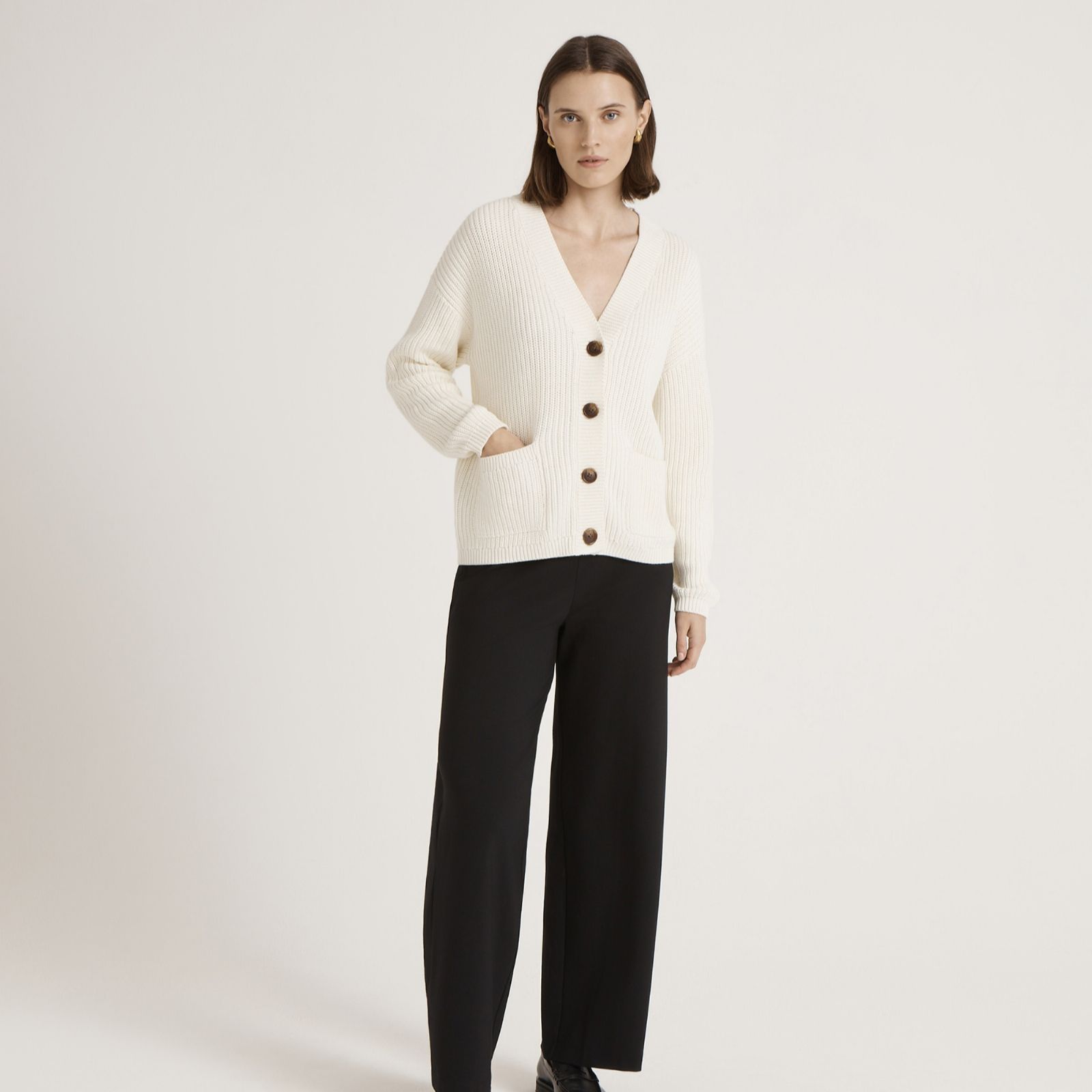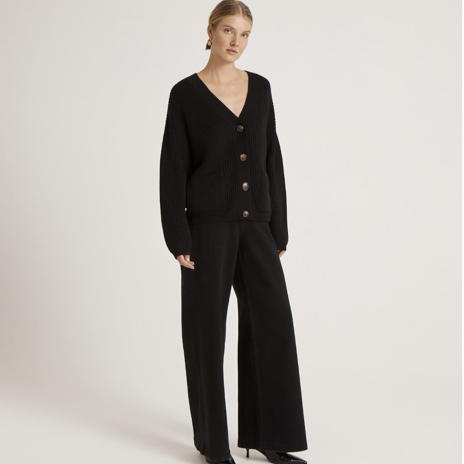 Meet your new everyday layer - the Estella knitted cardigan from Finery London. Blending timeless style with reliable practicality, it features a classic V-neckline, long sleeves, front pockets and elegant mock horn buttons, all finished with ribbed hemline and cuffs. Ideal for work, weekends or relaxed evenings, it's a versatile piece you can throw over shirts, tops or dresses. Try pairing it with tailored trousers for a smart-casual look or jeans for an effortless off-duty style.