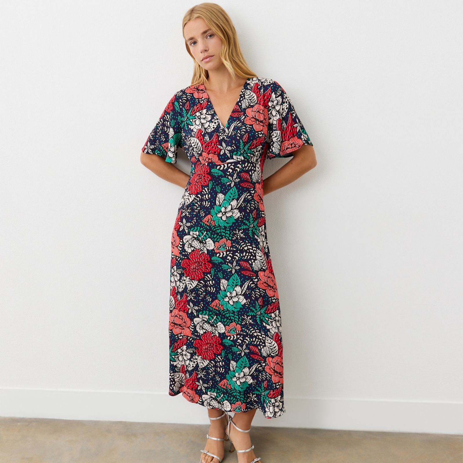 Welcome timeless elegance with the Josie Winter Crepe Floral Dress from Finery London. This midi dress, crafted from signature crepe fabric, features a feminine v-neckline and delicate angel sleeves, making it perfect for a range of occasions from casual gatherings to formal events. The front wrap design adds a touch of sophistication and ensures you can reach for this dress season after season. Pair it with your favourite heels and a clutch for an effortlessly chic look.