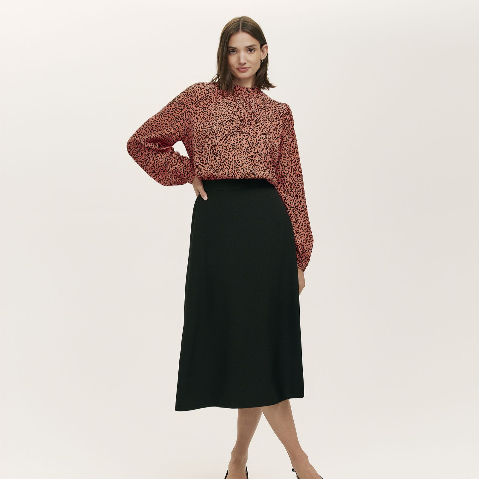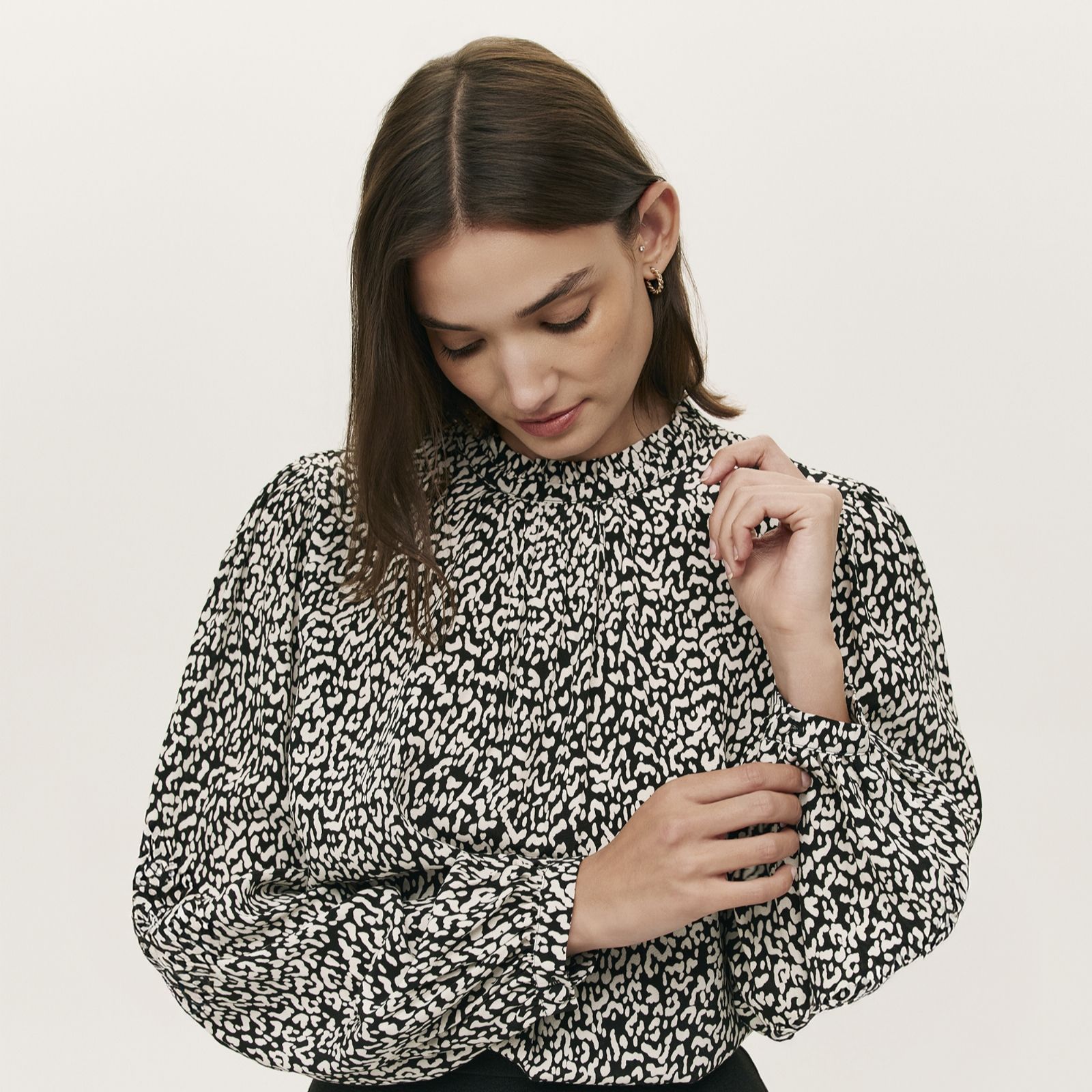 Step into everyday elegance with the Kiera top from Finery London, where a striking leopard print meets soft, romantic detailing. A frilled collar and gentle front gathering lend feminine charm, while the relaxed fit and tailored cuffs ensure this piece feels as good as it looks. Effortlessly chic for work or weekends, simply tuck into high-waisted jeans for a polished yet easy-going ensemble.