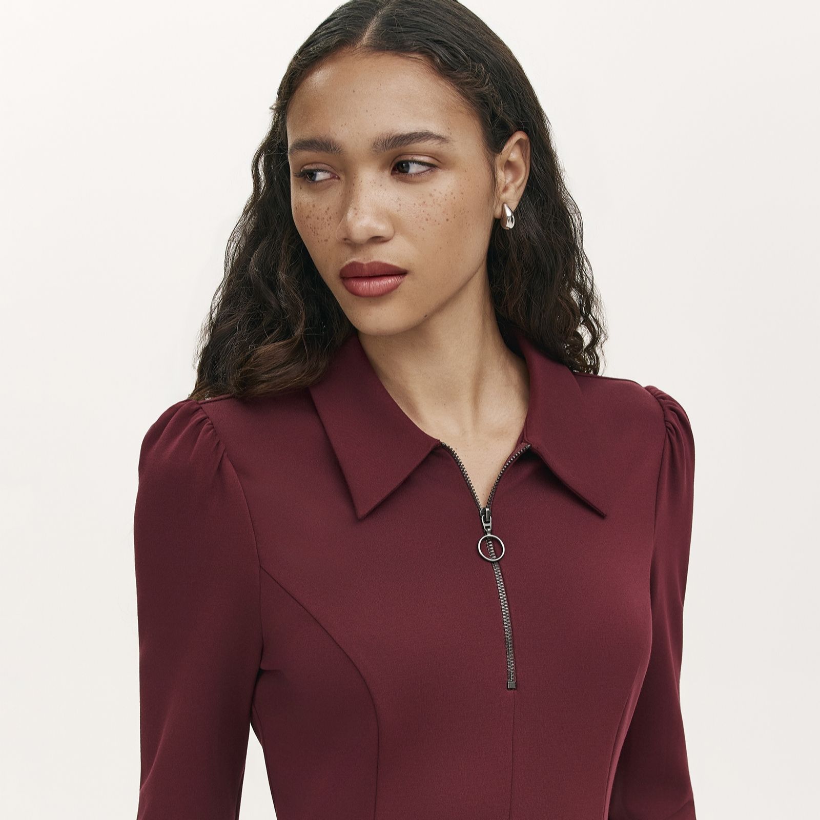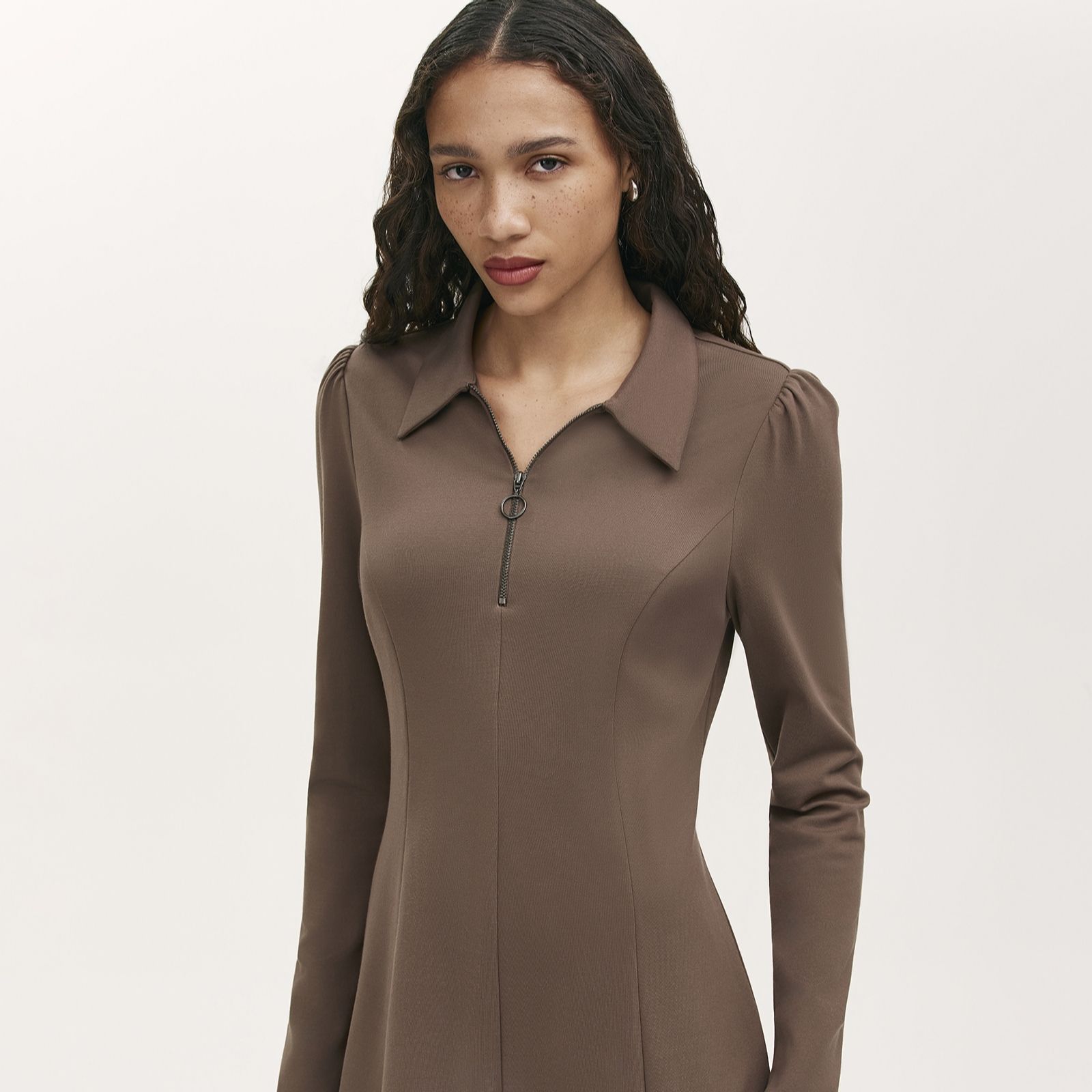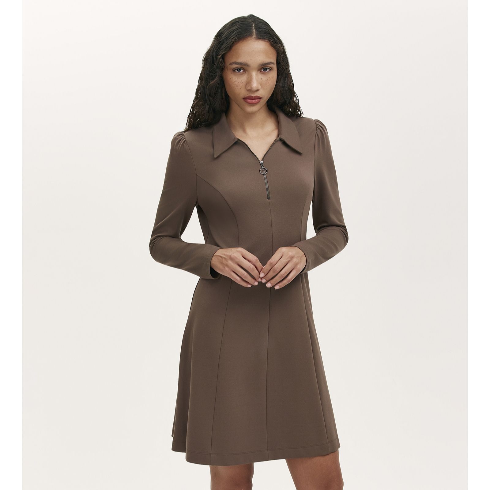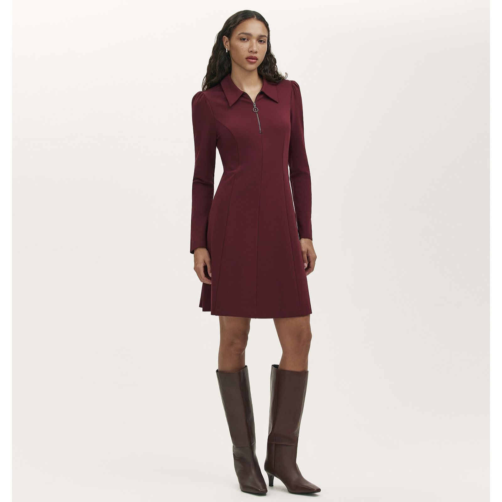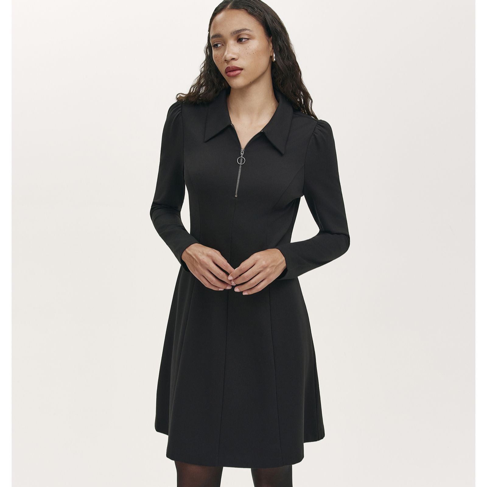 Step out in effortless style with the Lea ponte shirt dress from Finery London, where a modern zip-collar detail and elegant long sleeves meet a classic silhouette for a refined look. Designed to flatter with its regular fit and softly draping skirt, this dress transitions seamlessly from work meetings to weekend brunches, making it a true wardrobe staple. Pair with ankle boots and a statement bag to complete your chic ensemble.