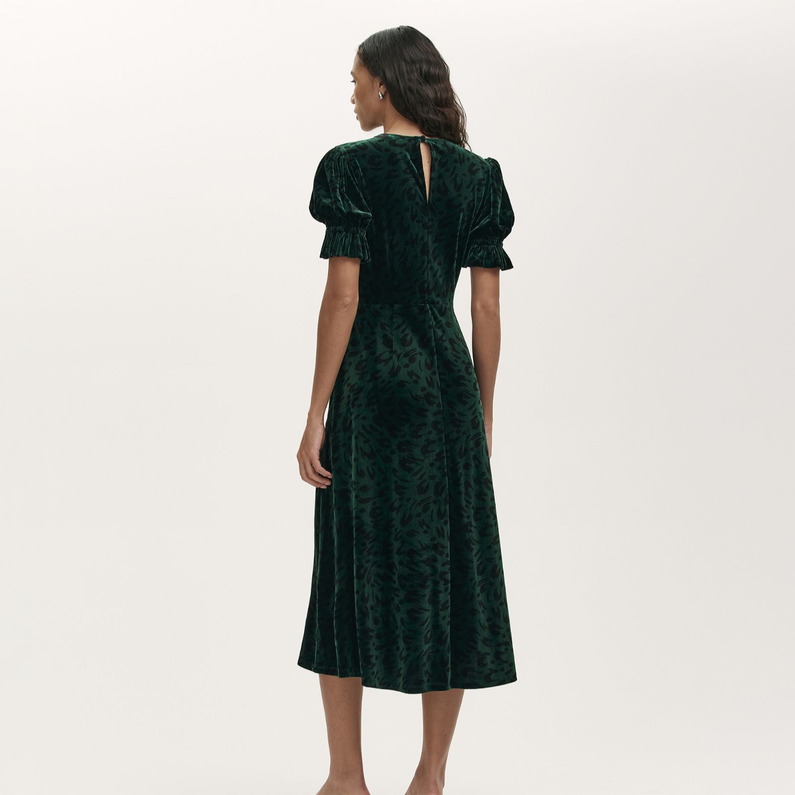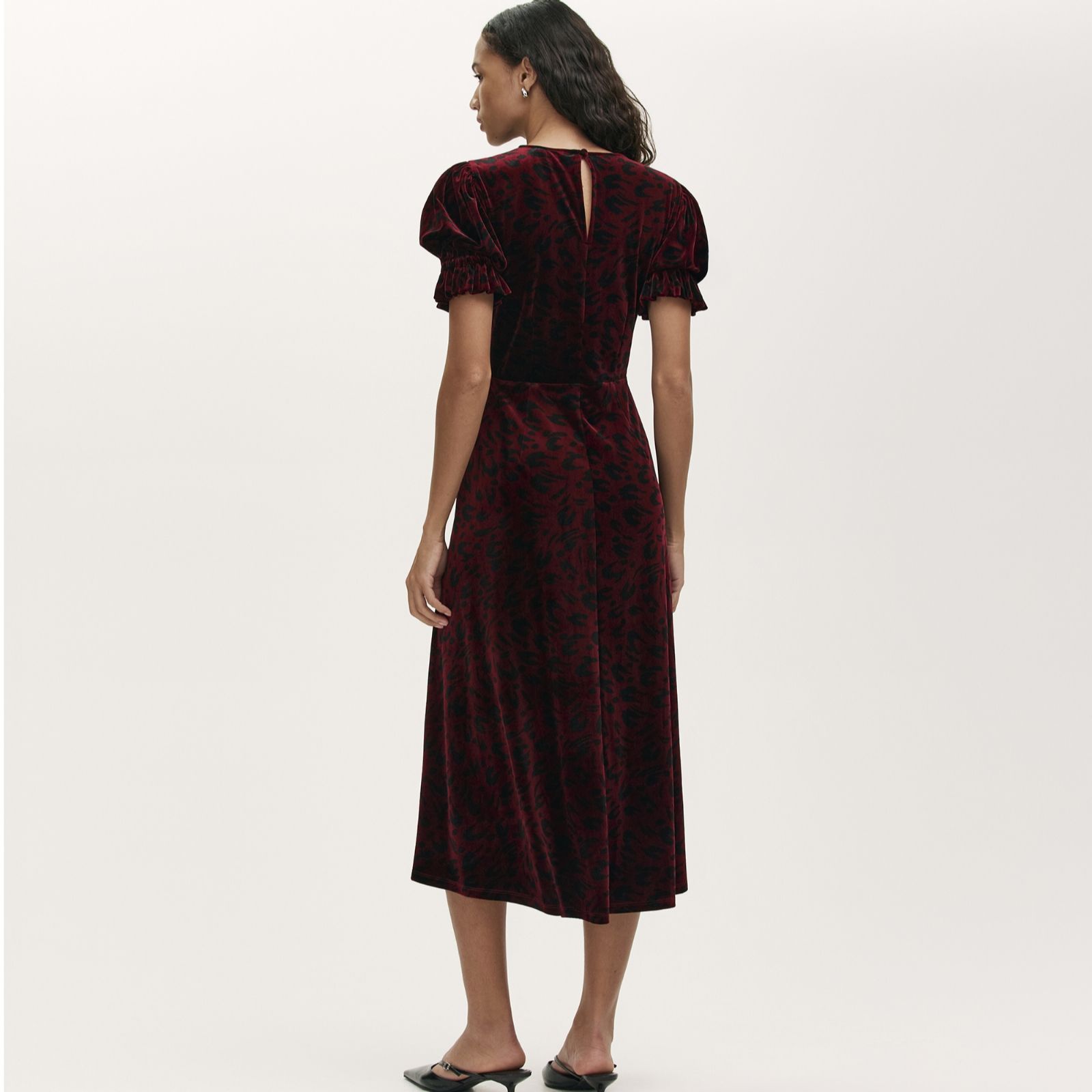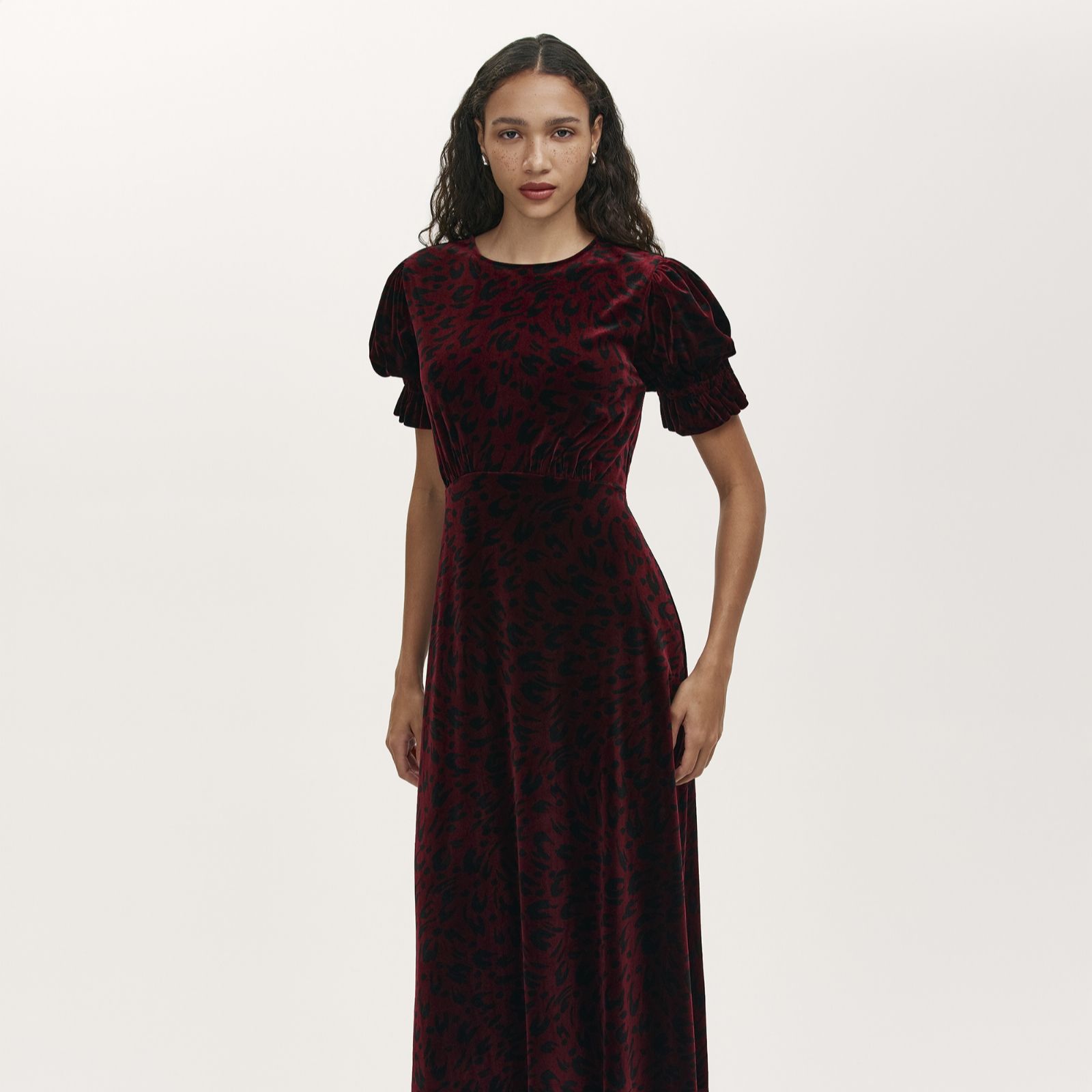 Make an unforgettable entrance with the Mela velvet animal print midi dress from Finery London, where plush velvet jersey meets a bold animal motif for a look that's both fierce and refined. Perfect for autumn and winter parties, festive gatherings or a special evening out, this waisted silhouette with puff sleeves and ruffle cuffs is designed to turn heads. Style it with ankle boots and a sleek clutch to amplify its statement appeal.