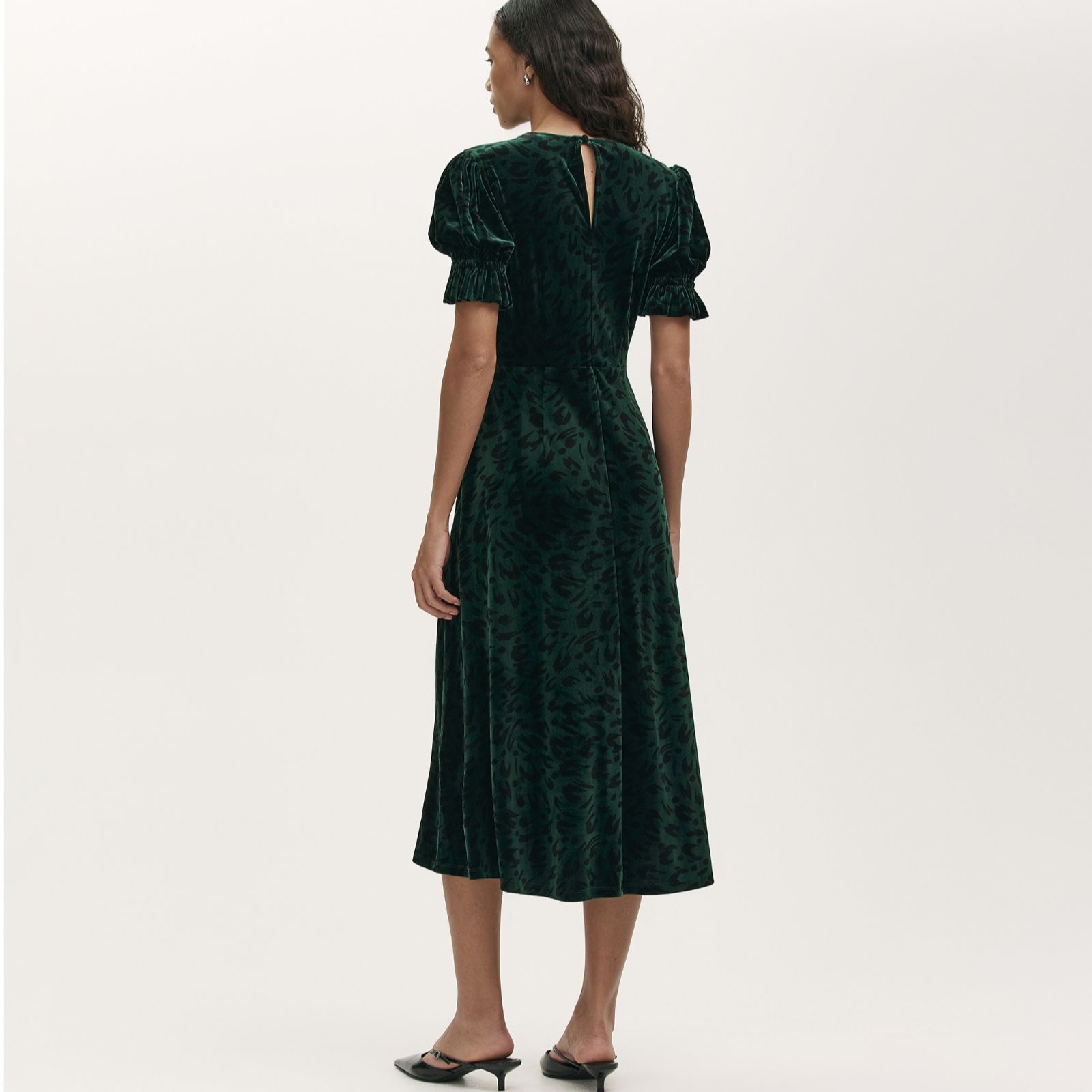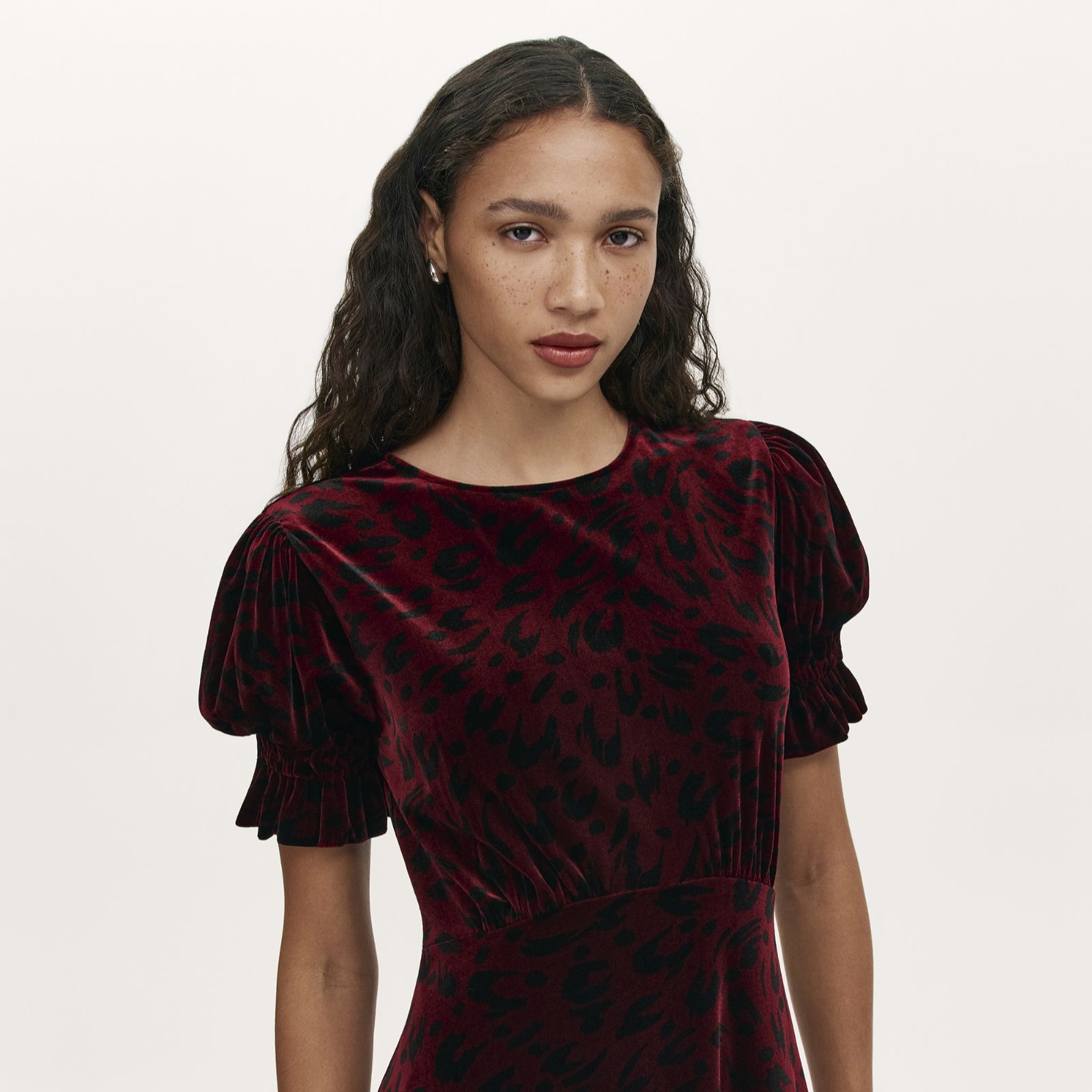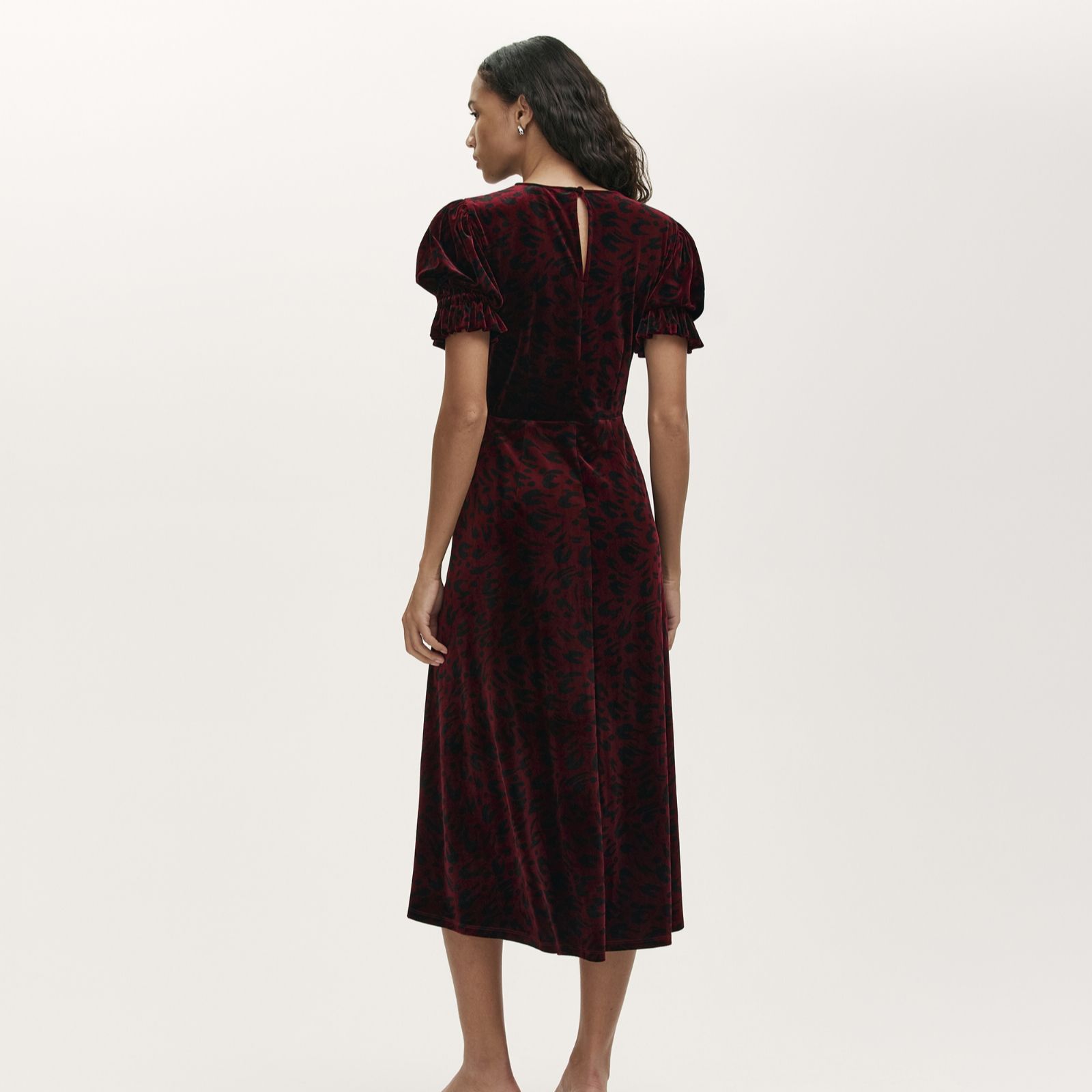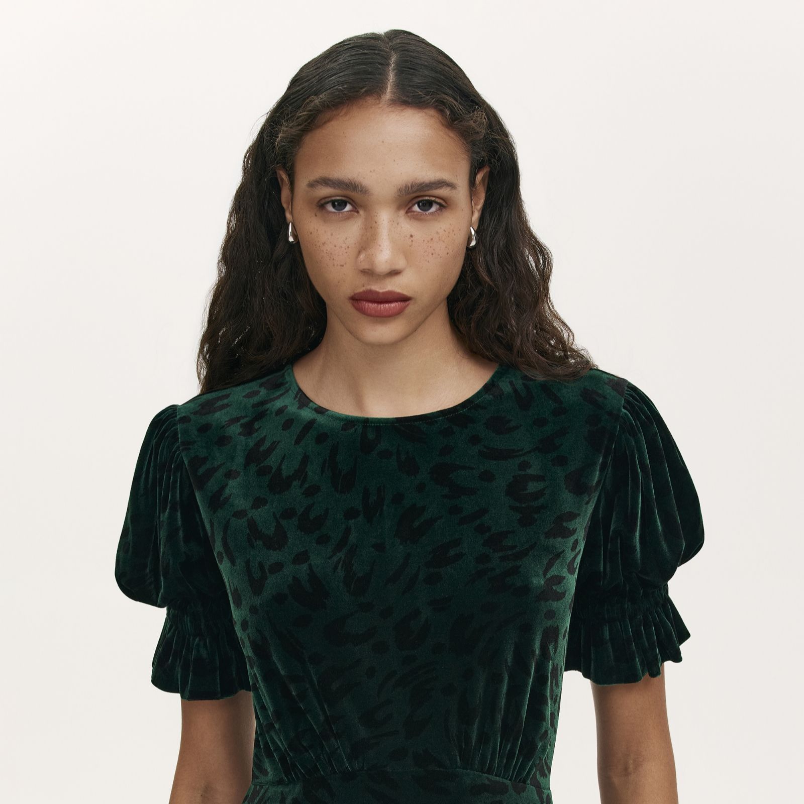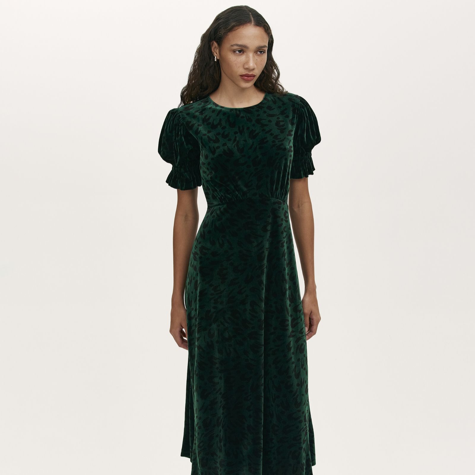 Make an unforgettable entrance with the Mela velvet animal print midi dress from Finery London, where plush velvet jersey meets a bold animal motif for a look that's both fierce and refined. Perfect for autumn and winter parties, festive gatherings or a special evening out, this waisted silhouette with puff sleeves and ruffle cuffs is designed to turn heads. Style it with ankle boots and a sleek clutch to amplify its statement appeal.