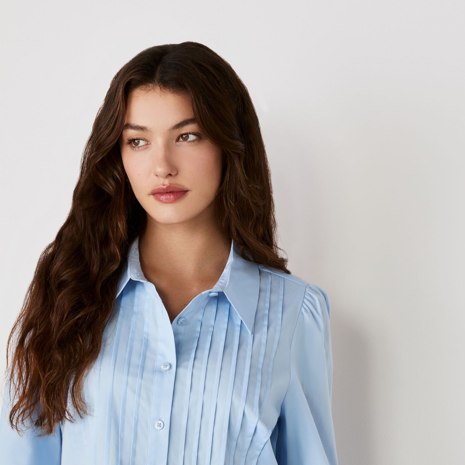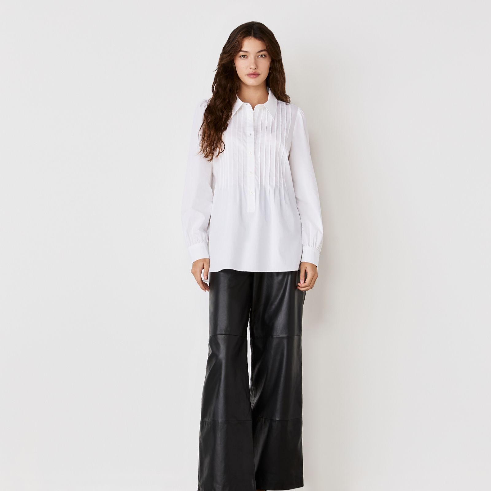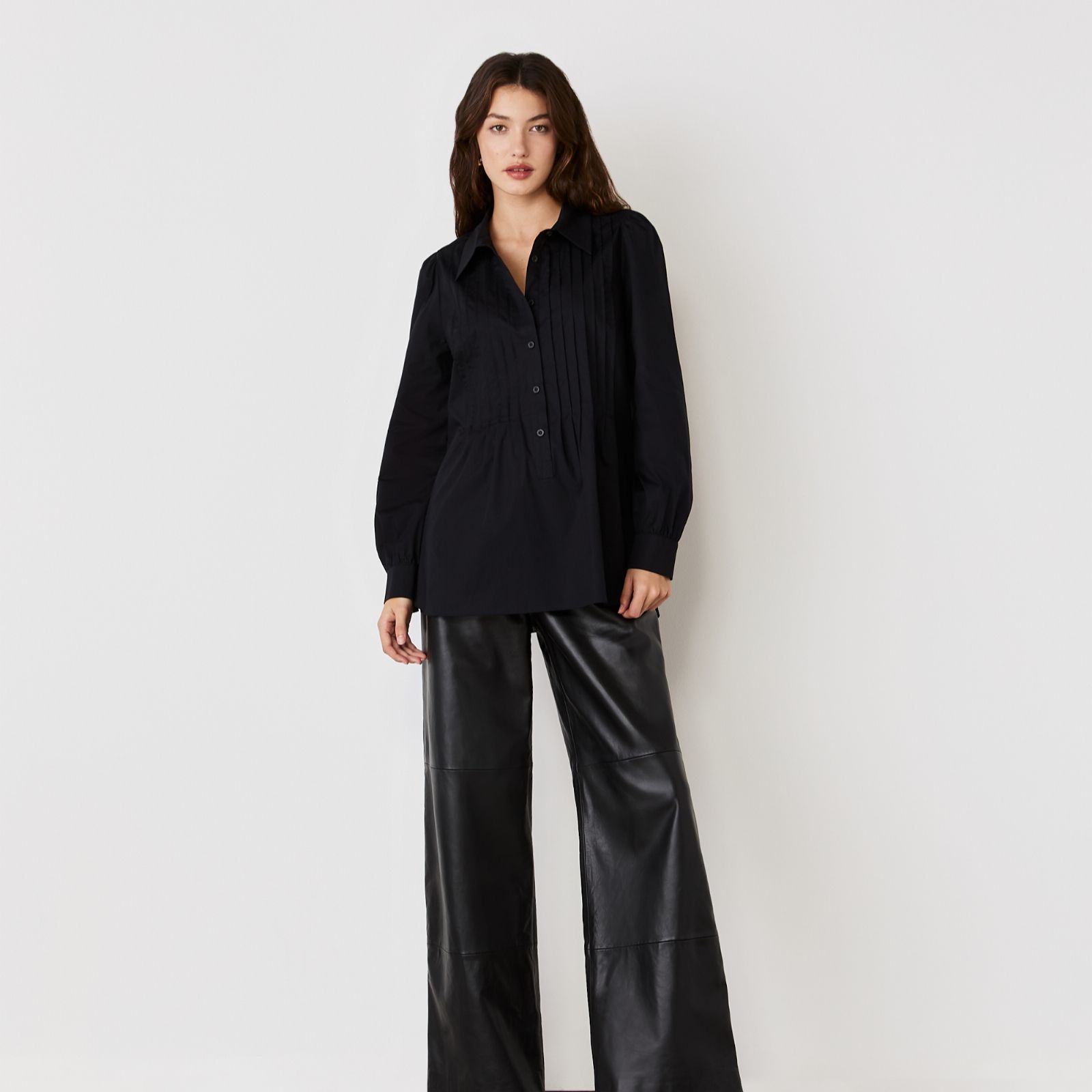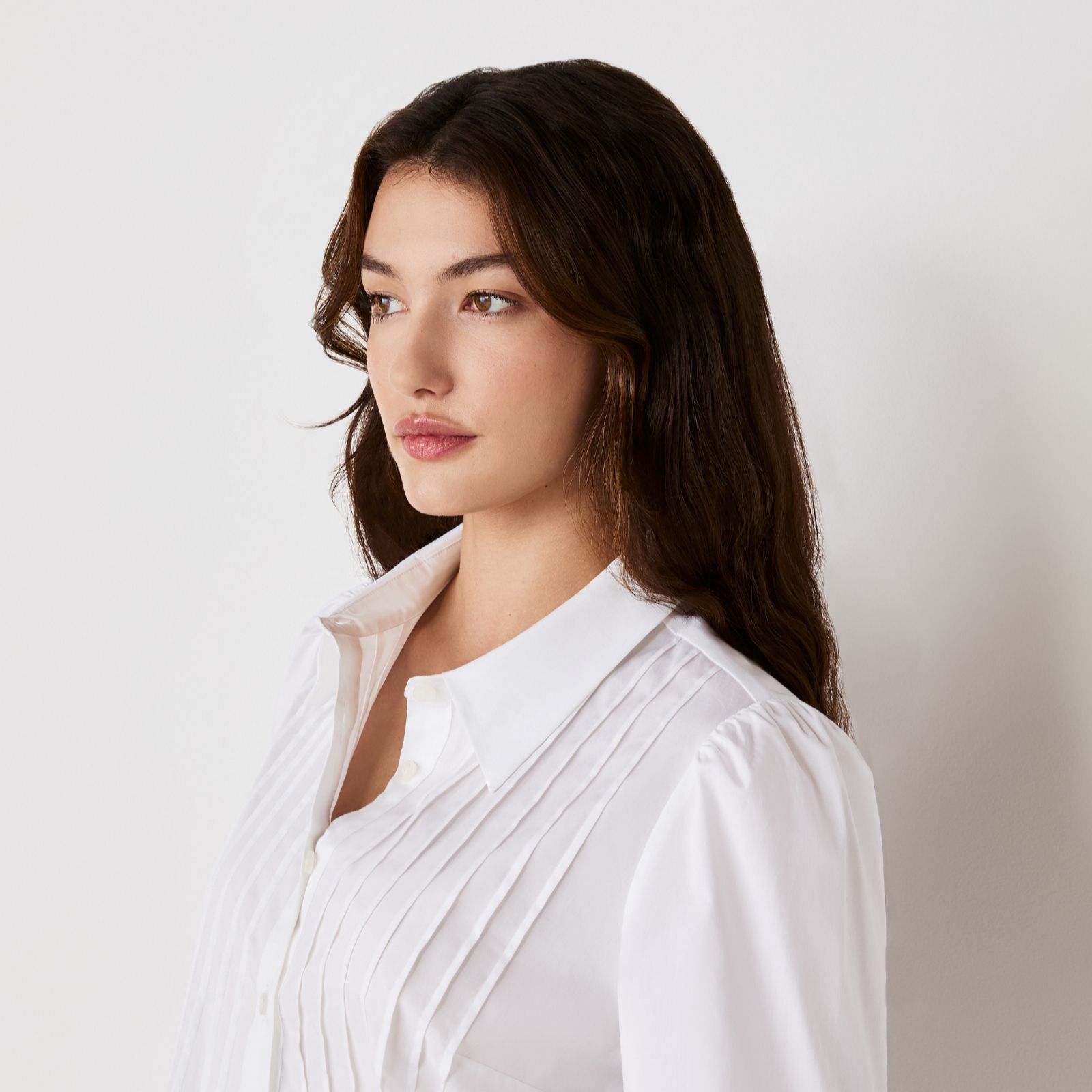 - Pintuck pleat detail on front placket