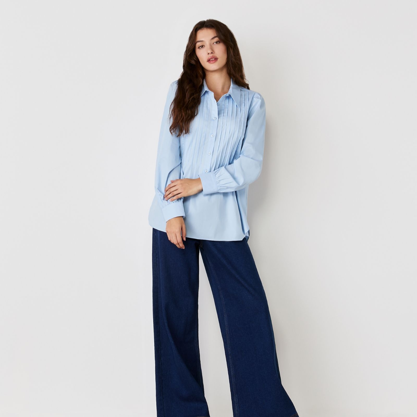 Embody sophisticated style in the Mimi cotton stretch shirt from Finery London, where timeless tailoring meets a modern twist with delicate pintuck pleats framing the button placket. This refined staple transitions seamlessly from workdays to weekends, offering versatility for everything from office meetings to relaxed catch-ups. For a polished finish, try styling it tucked into tailored trousers or layered beneath a blazer.