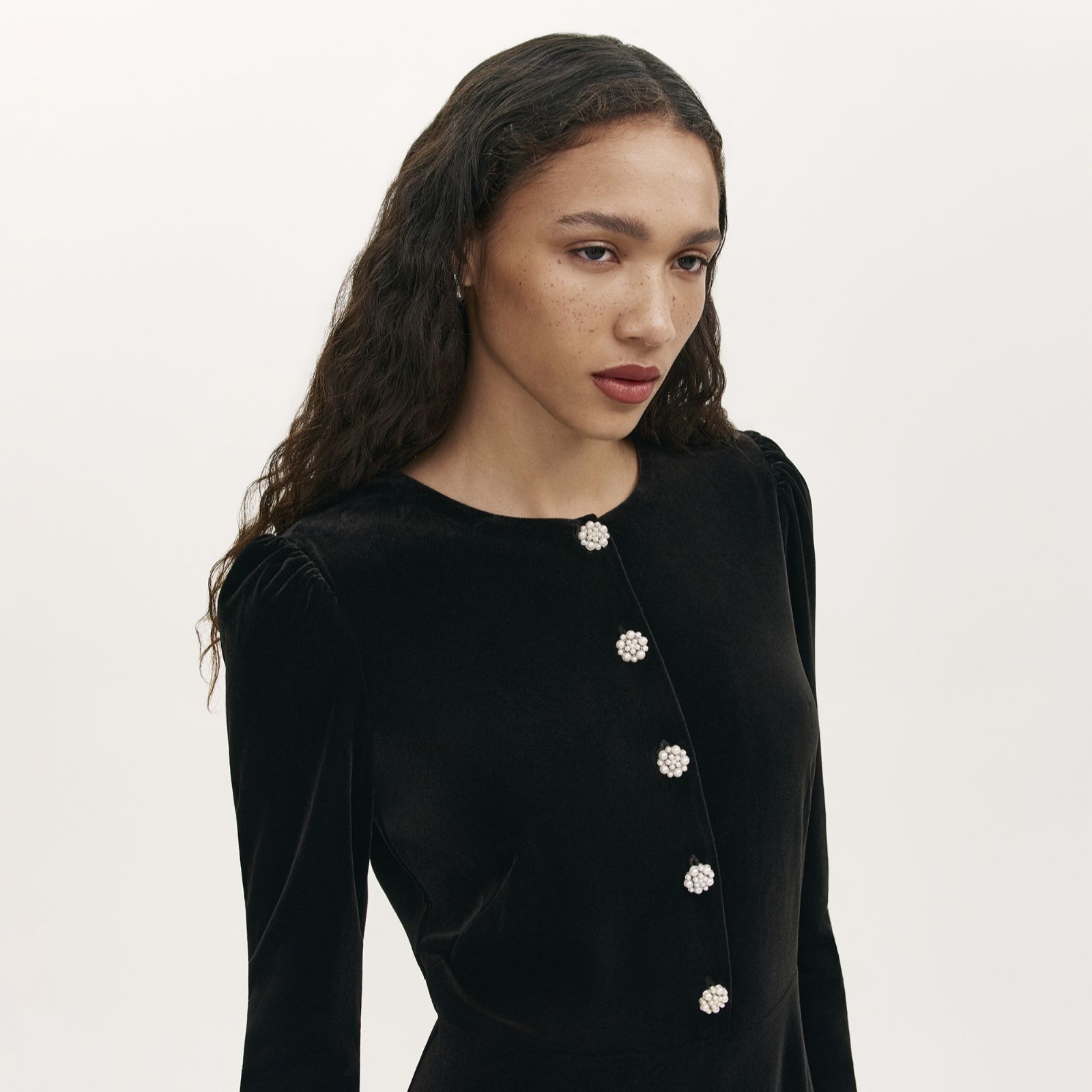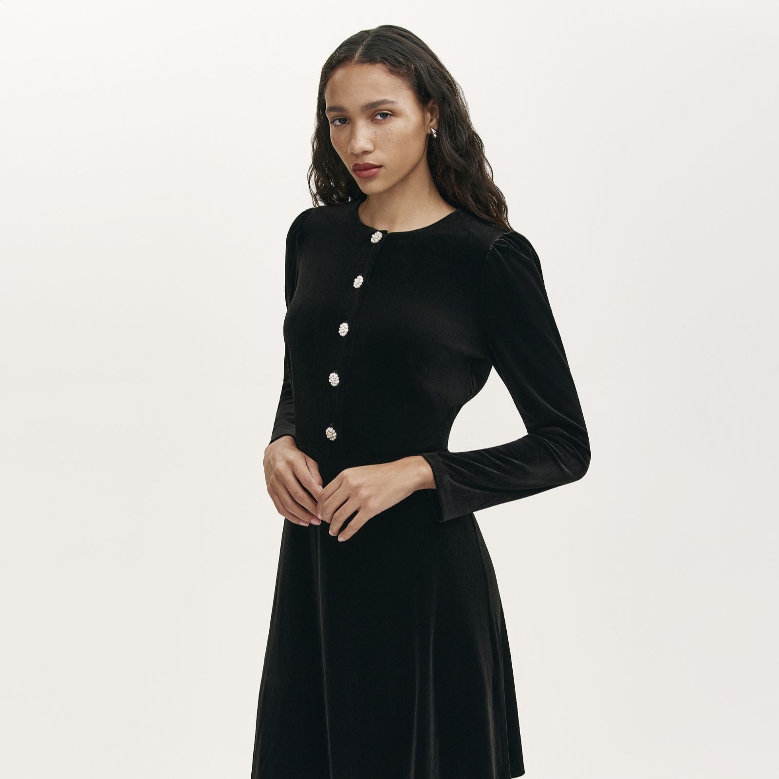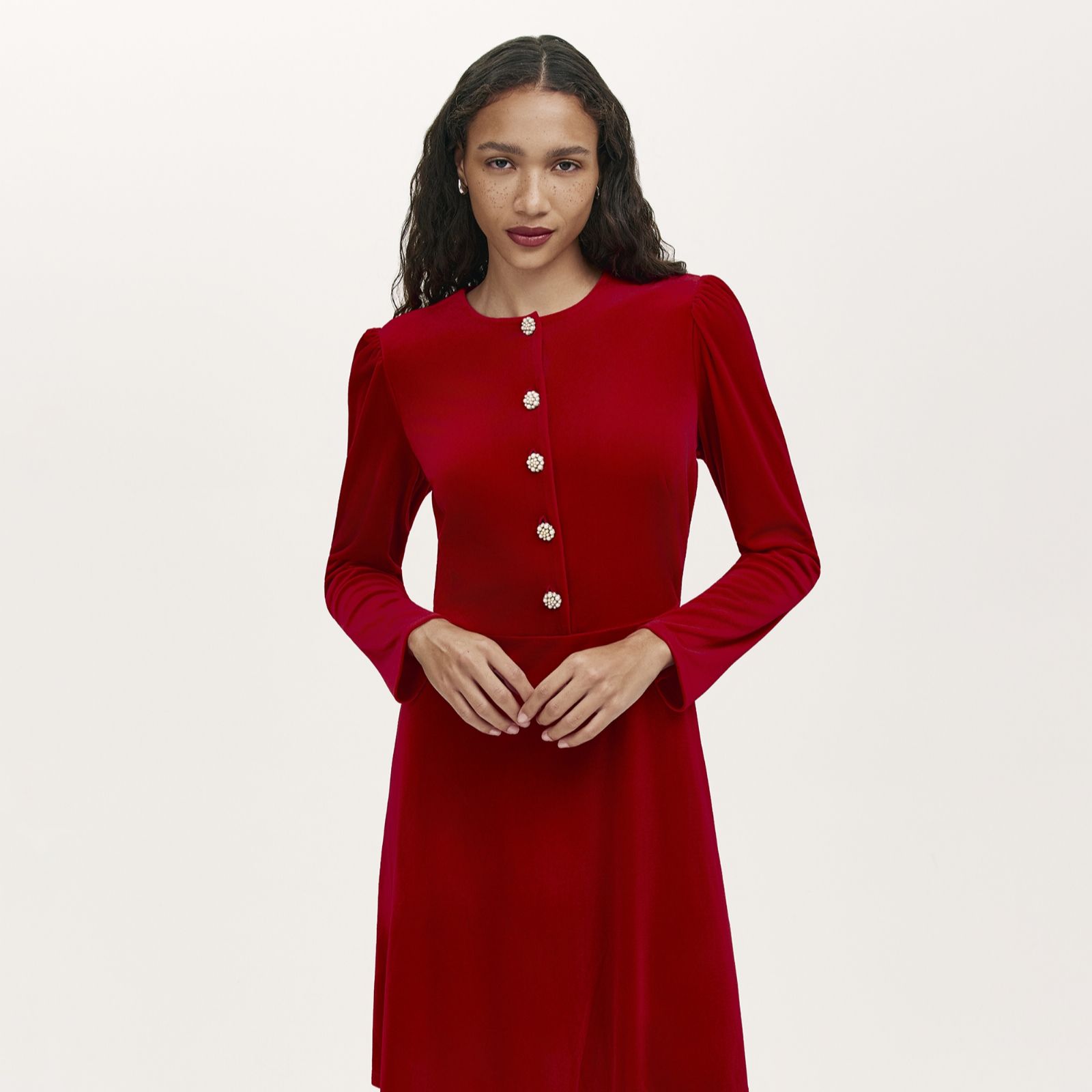 Slip into effortless sophistication with the Rae mini dress from Finery London, where a sleek silhouette meets everyday comfort thanks to its ponte jersey fabric and gold button detailing. Perfect for everything from office days to evening drinks, this dress brings polish to any occasion. Try styling it with ankle boots and a tailored blazer for a modern, versatile look.