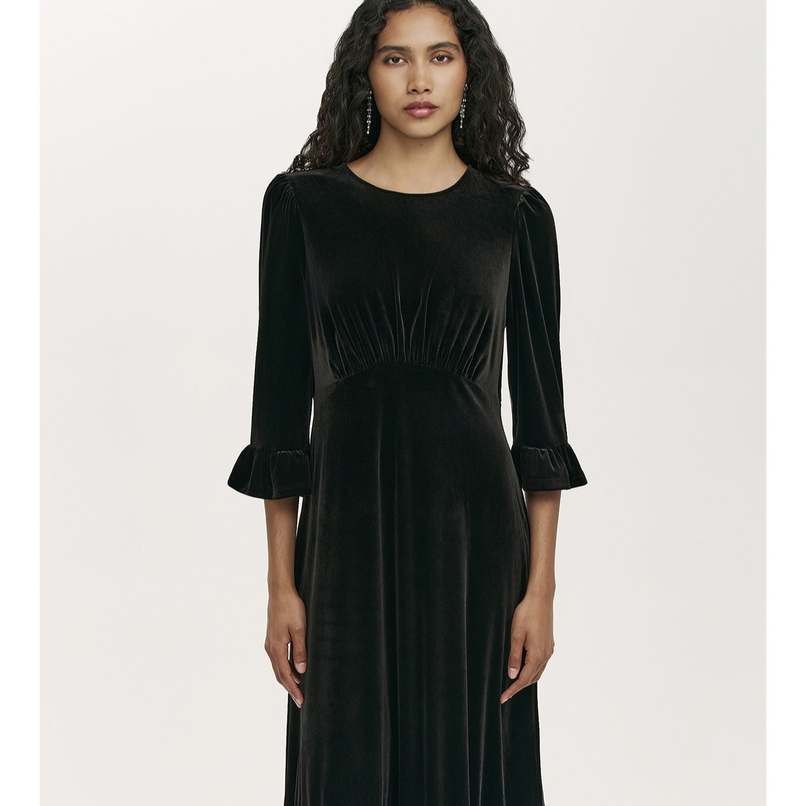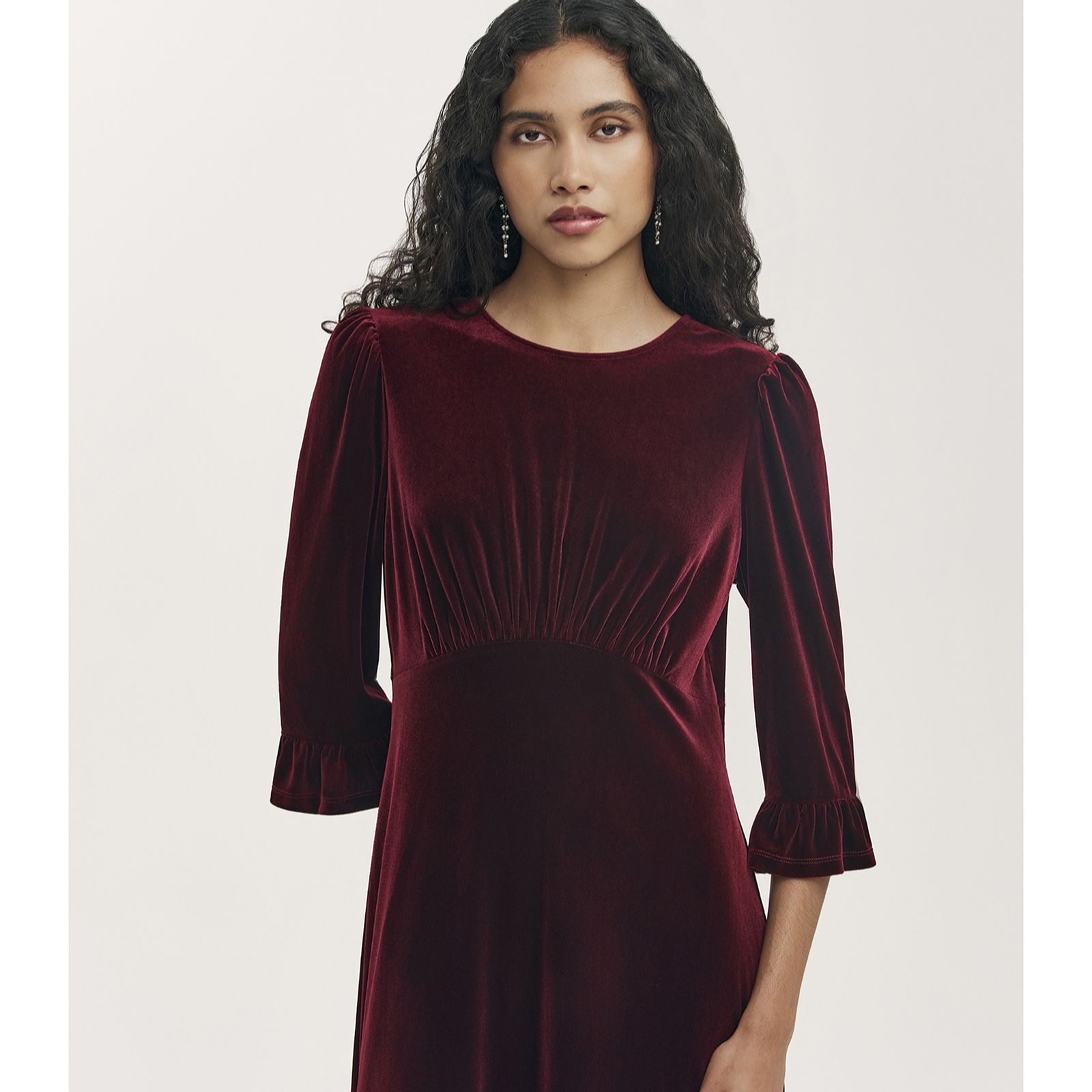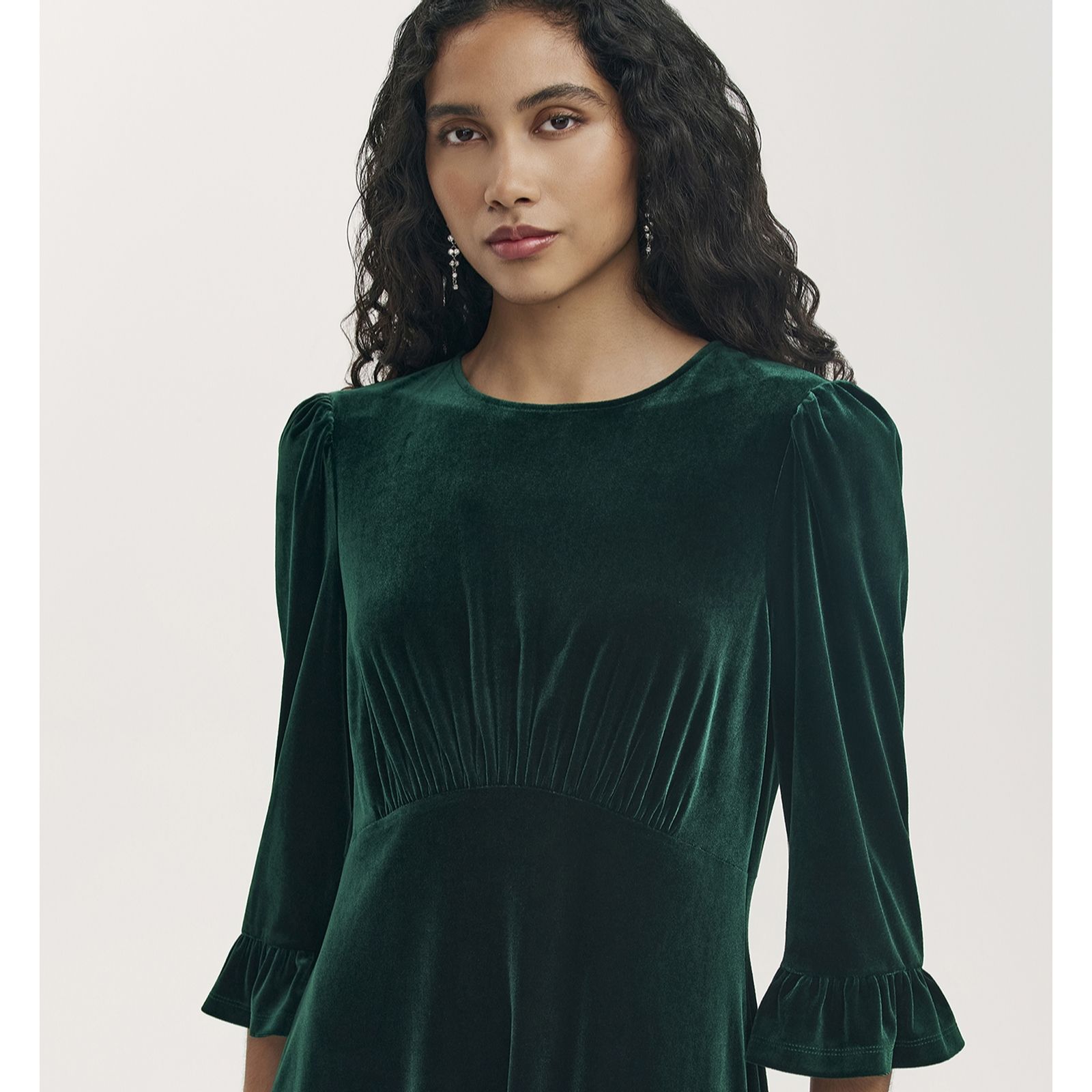 Exude elegance with the Scarlett stretch velvet midi dress petite from Finery London, a sophisticated choice for special occasions and memorable events. The empire waistband creates a refined silhouette, while the round neckline and ruffle cuff detail on the below-the-elbow sleeves add a touch of charm. Perfect for evening gatherings or formal celebrations, it pairs beautifully with statement jewellery and sleek heels for a polished finish.