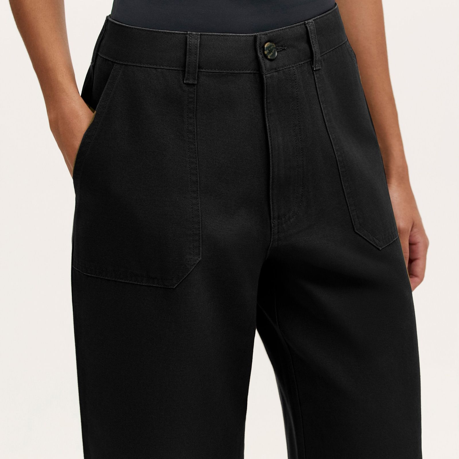 Slip into endless style with the Olive cotton canvas trousers short from Finery London. Blending a contemporary wide-leg cut with classic utility details, they offer a structured waistband, belt loops and practical pockets for everyday ease. Perfect for relaxed weekends, smart-casual office days or chic travel looks, they bring versatility to your wardrobe. Pair with a crisp shirt and trainers for a modern, laid-back ensemble.