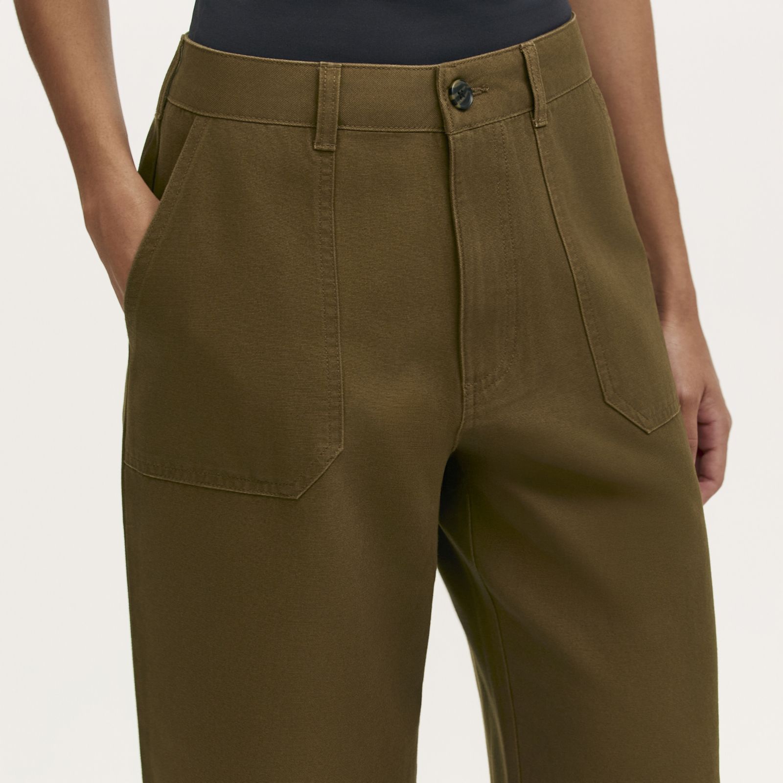 Slip into endless style with the Olive cotton canvas trousers standard from Finery London. Blending a contemporary wide-leg cut with classic utility details, they offer a structured waistband, belt loops and practical pockets for everyday ease. Perfect for relaxed weekends, smart-casual office days or chic travel looks, they bring versatility to your wardrobe. Pair with a crisp shirt and trainers for a modern, laid-back ensemble.