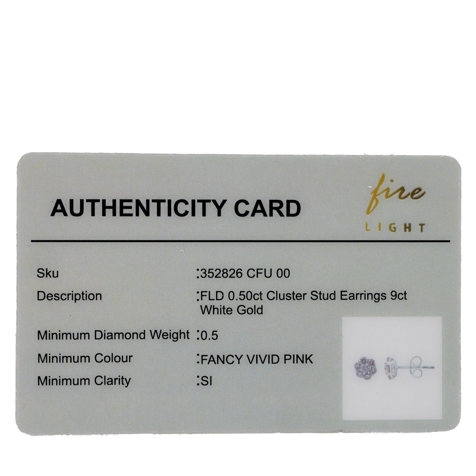 Add a romantic sparkle to your look with these Fire Light lab-grown pink diamond cluster stud earrings. Showcasing a 0.50ct total diamond weight, each earring features a central stone surrounded by a halo of shimmering pink diamonds, all with SI1 clarity. Elegant and timeless, these earrings are perfect for adding a touch of luxury to everyday wear or special occasions.
