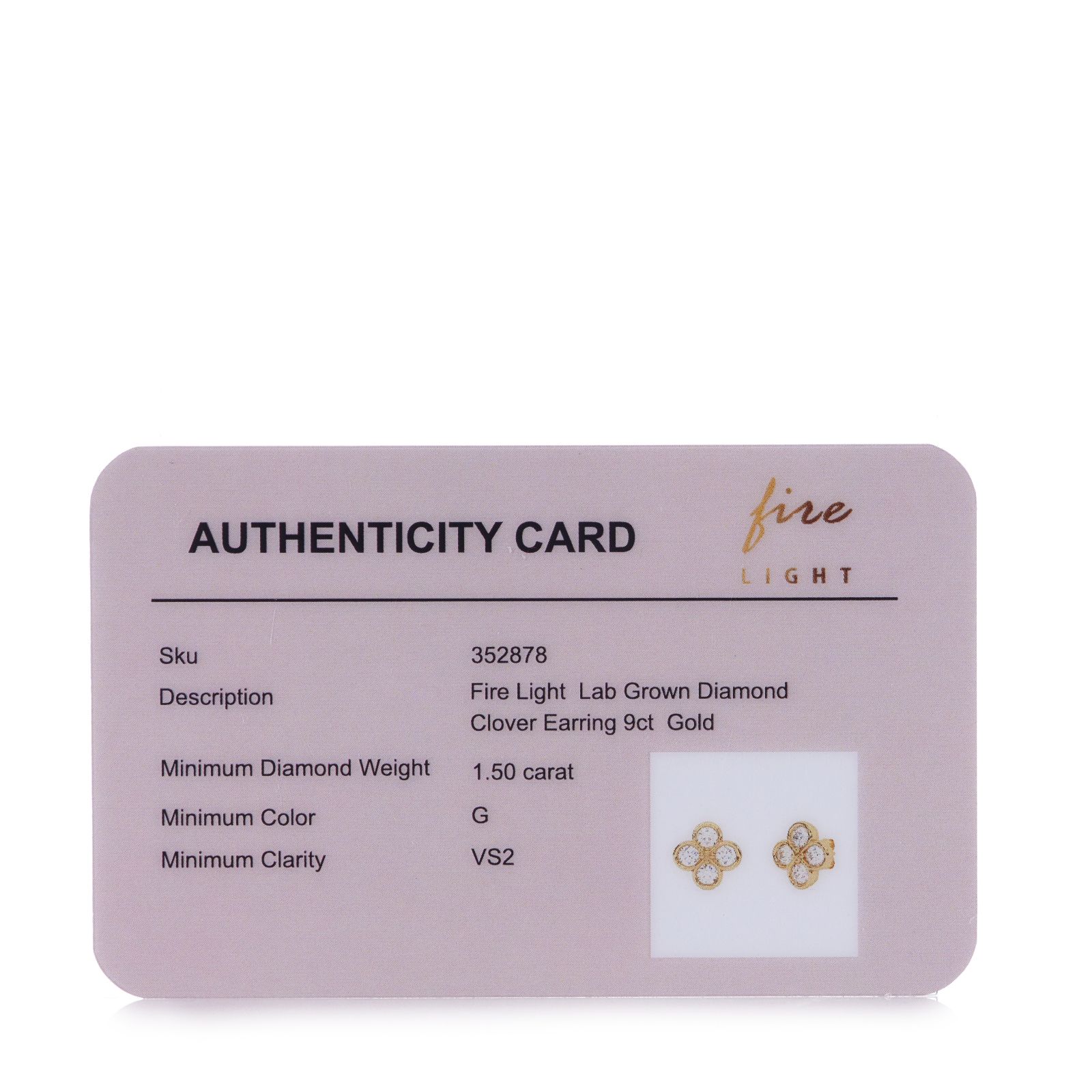 Seek out luminous charm with the Fire Light Clover earrings, adorned with lab-grown diamonds in a radiant clover design. Crafted from gold, each round brilliant-cut diamond boasts exceptional sparkle. Perfect for elevating both everyday looks and special occasion outfits, these timeless earrings come with a certificate of authenticity for added assurance.